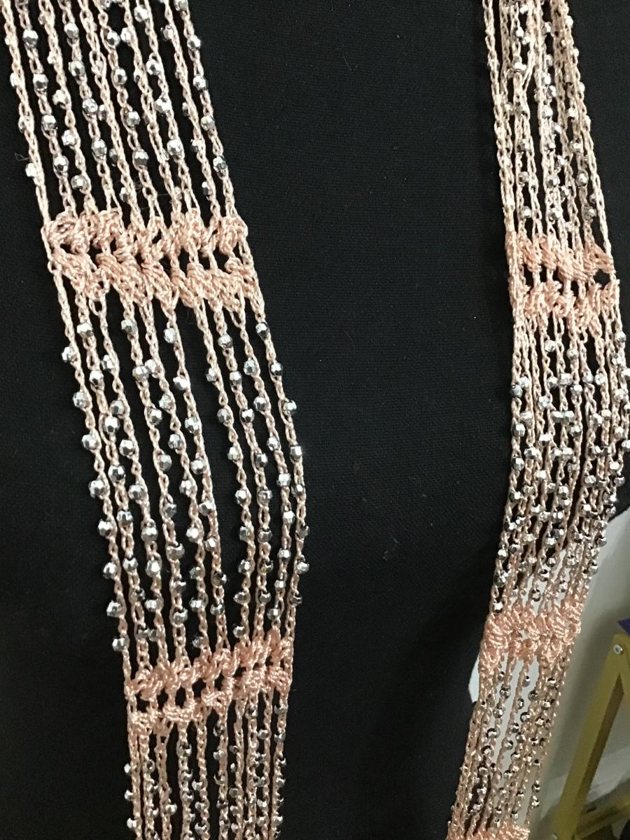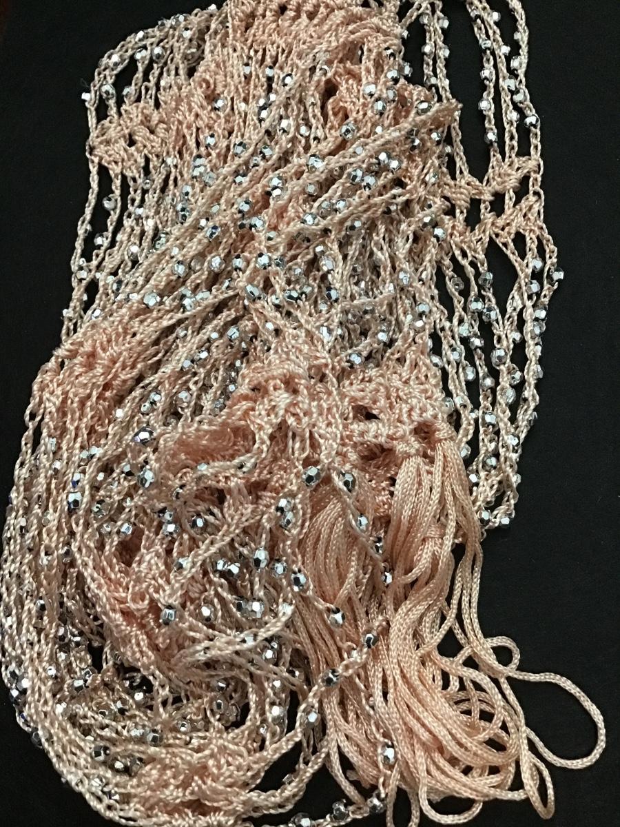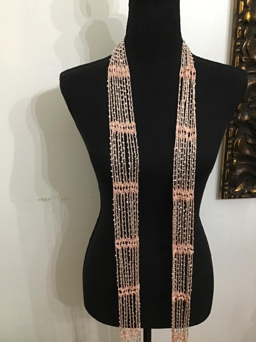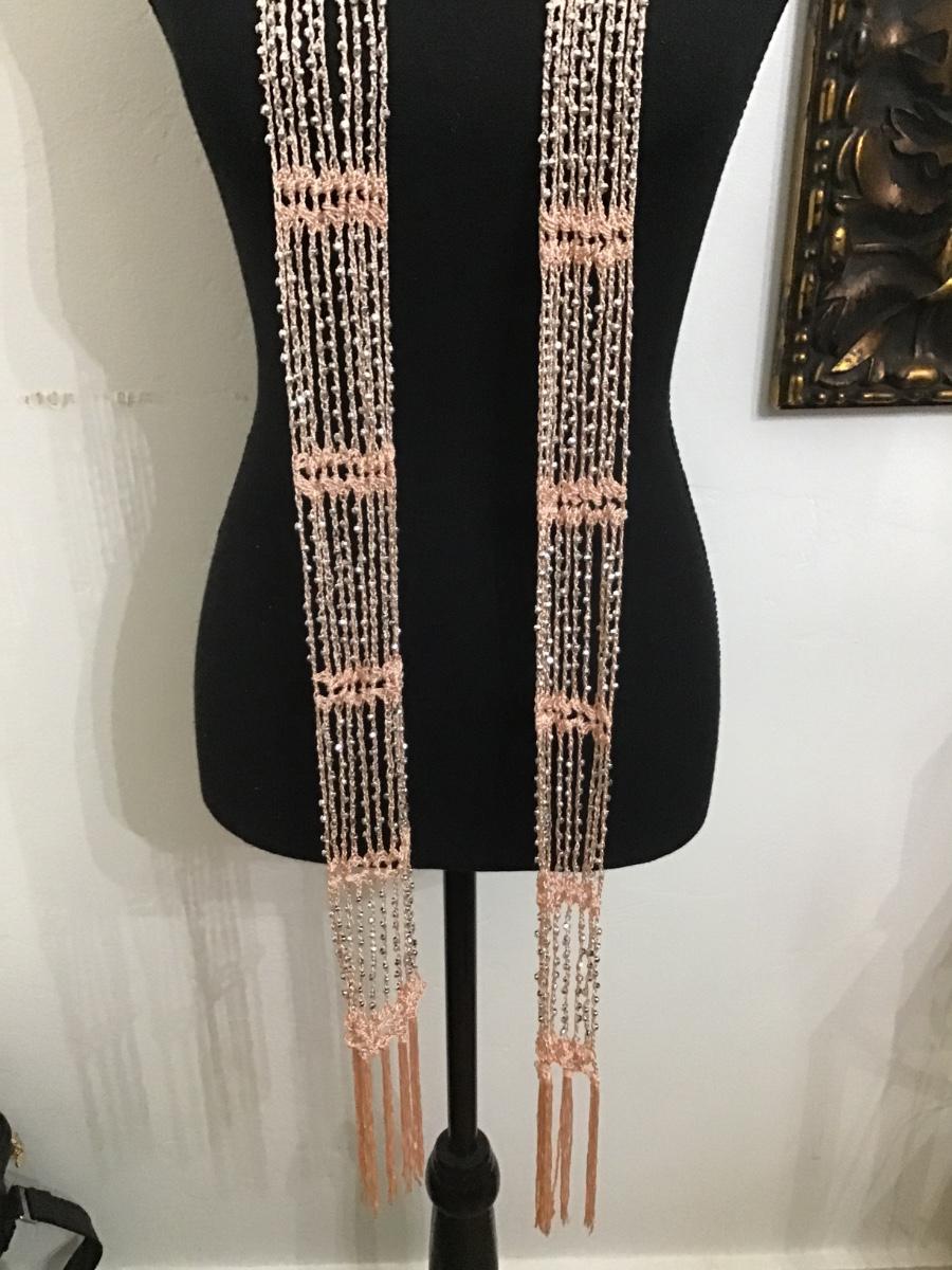 Peach Fabric Silver Bead Scarf /Wrap