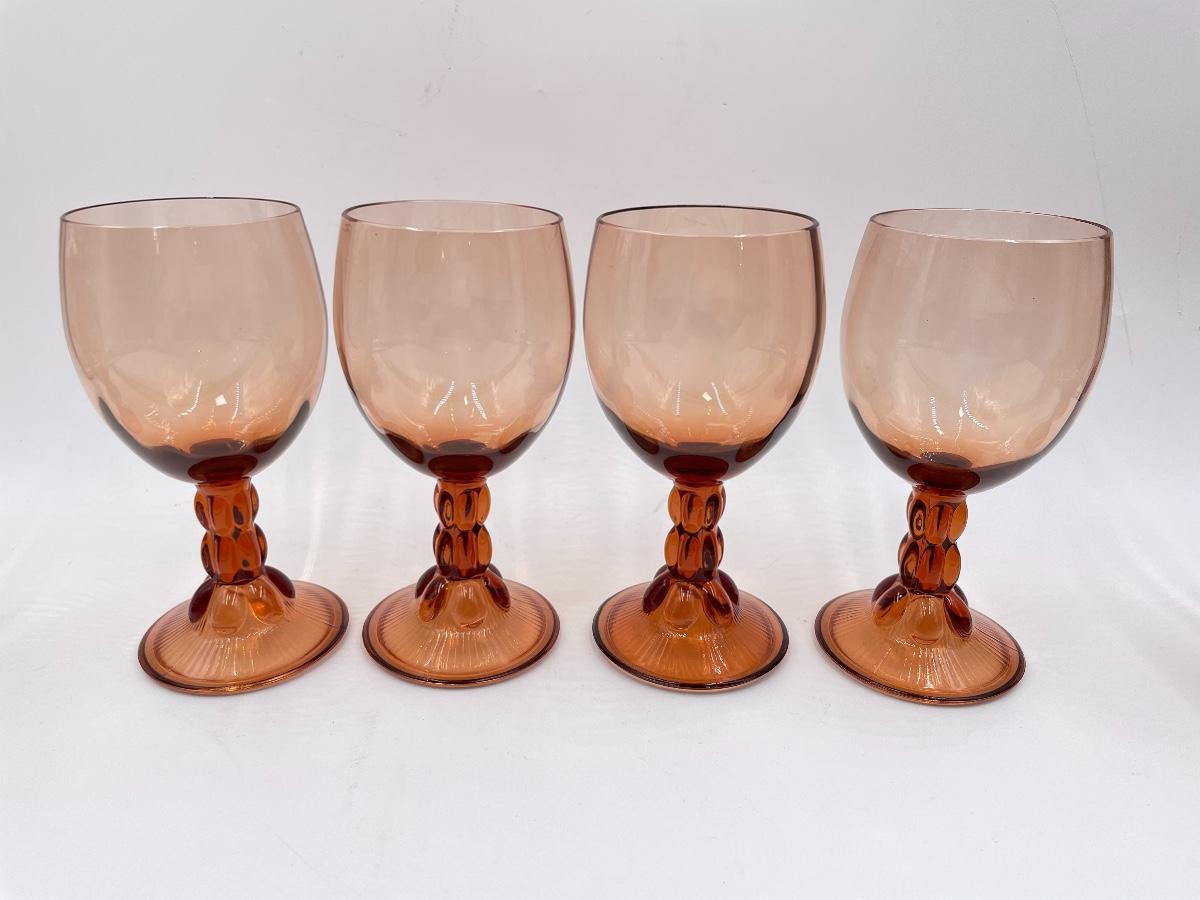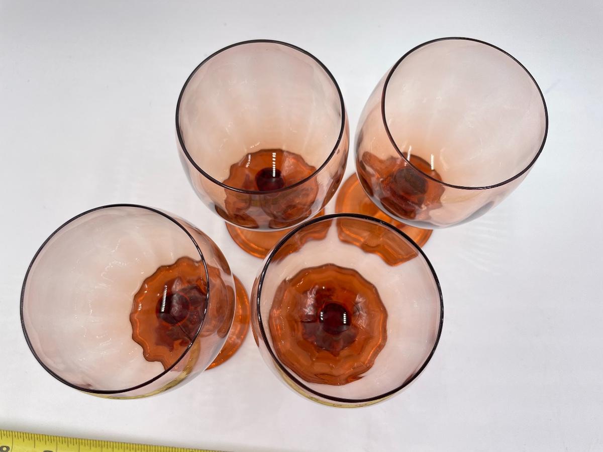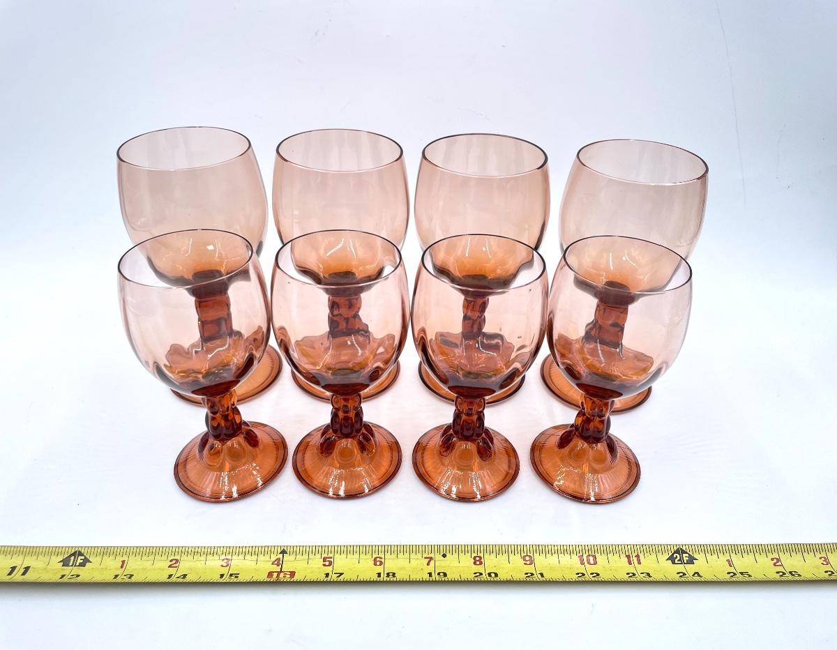 PEACH GLASS GOBLETS/STEMMED GLASSES SET OF 8