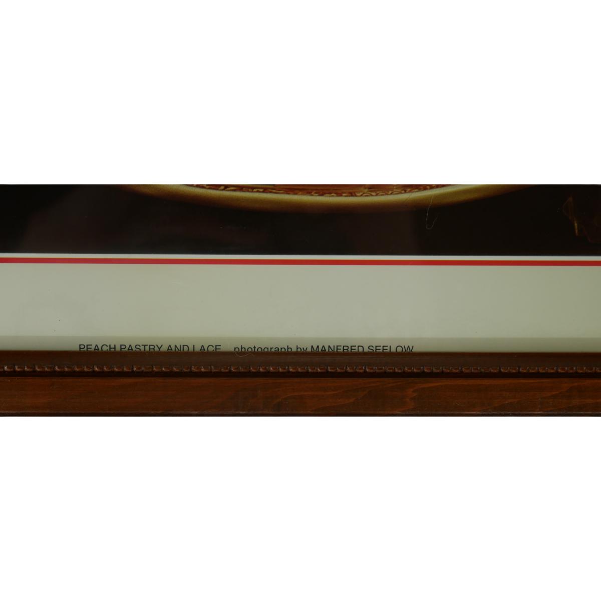 "Peach Pastry and Lace" lithograph, photograph by Manfred Seelow. Art measures 19.5" x 15", total frame measures 25.25" x 19.25". "Strawberry Crepes" lithograph, photograph by Fred Lyon. Art measures 15" x 19.5", total frame measures 26.5" x 20.5". Artwork is in excellent condition, frames have wear. (A31)