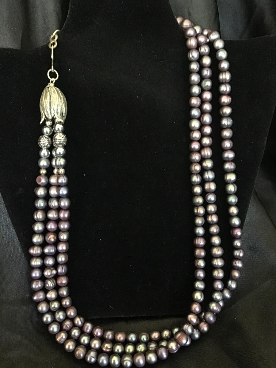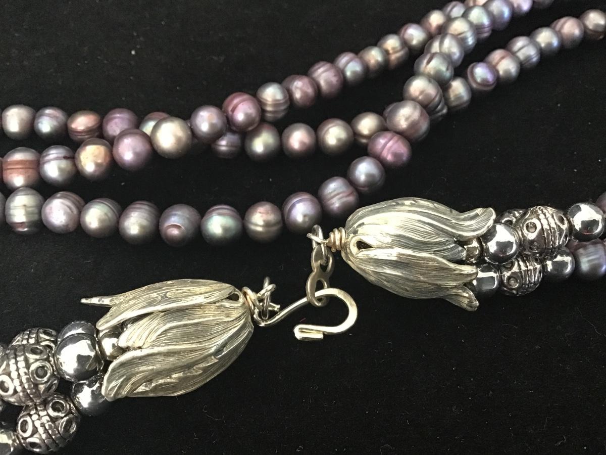 Peacock Black Pearl Beautiful Silver Floral Clasps