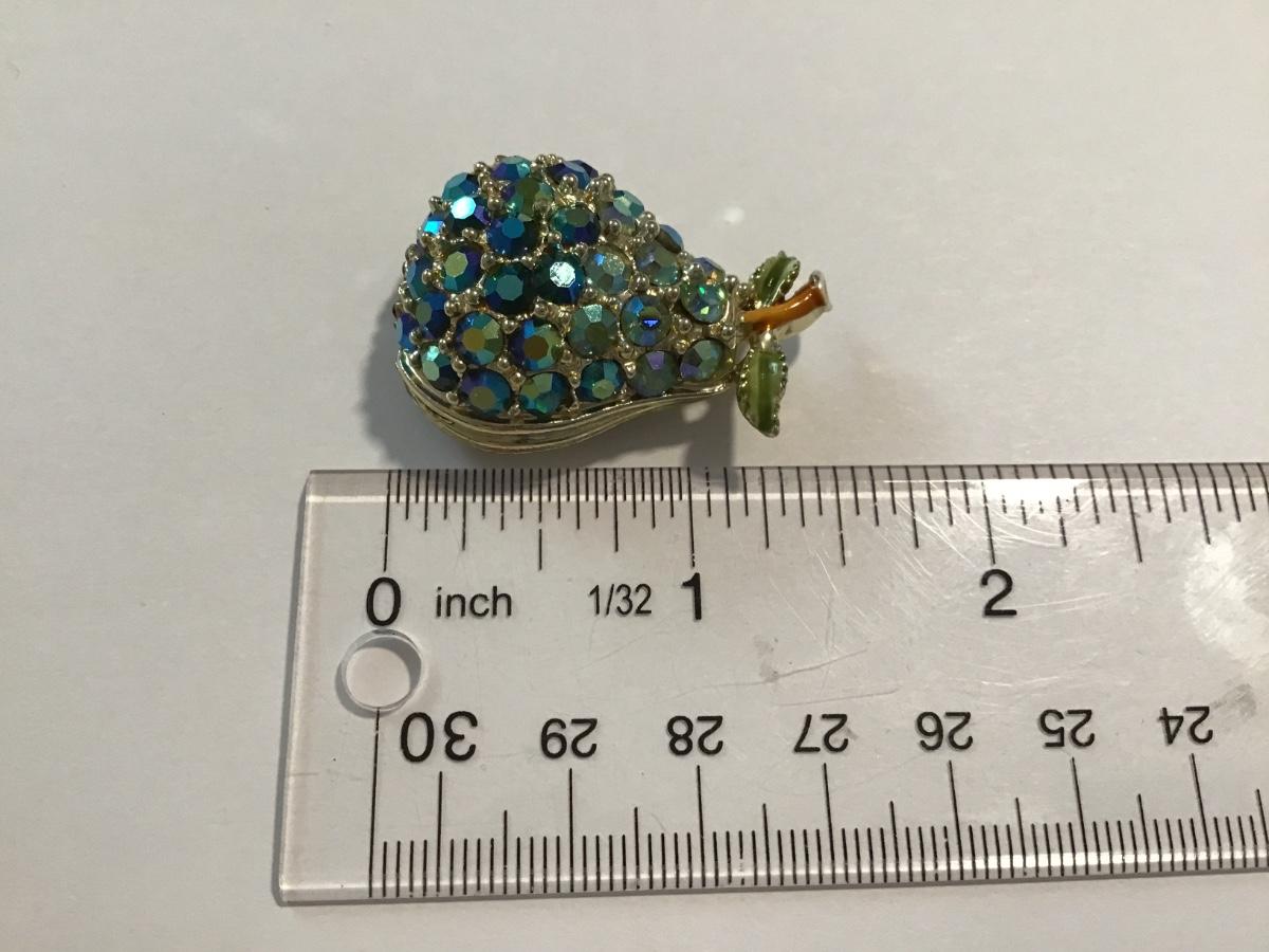 Peacock blue and green Rivoli Glass Pear Brooch