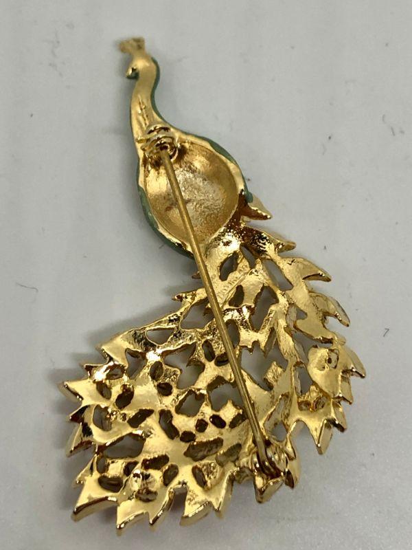 Beautiful rhinestone peacock brooch. Gold tone metal. No missing stones.