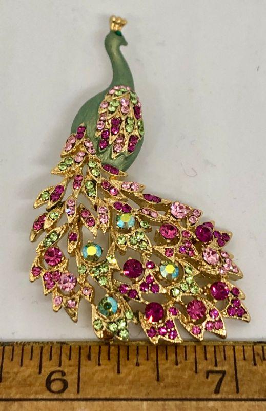 Jeweled Rhinestone Peacock Brooch Pin YD#020-1220-05083