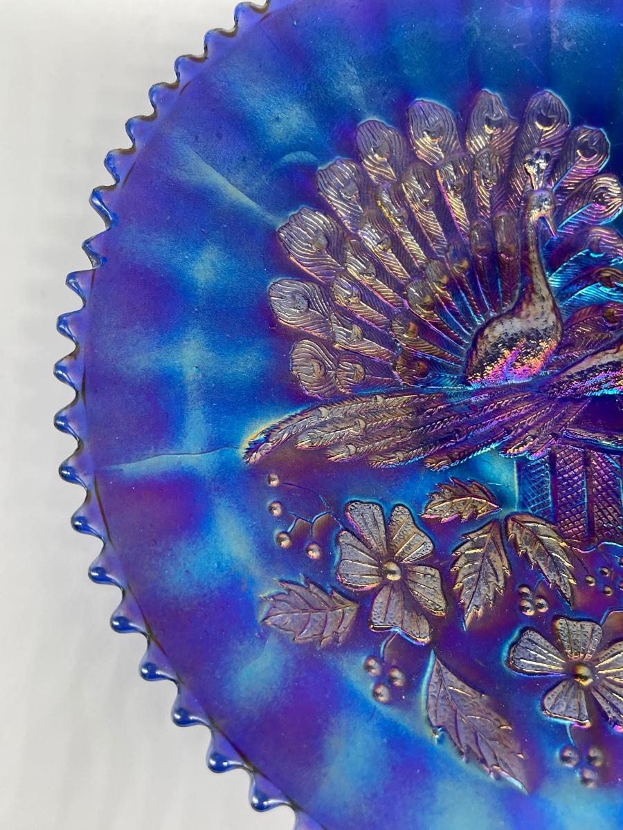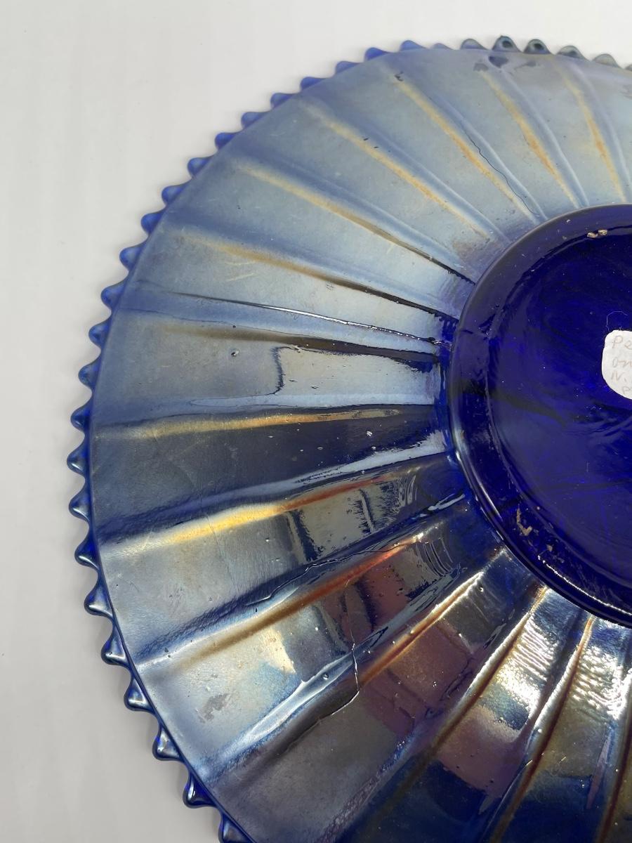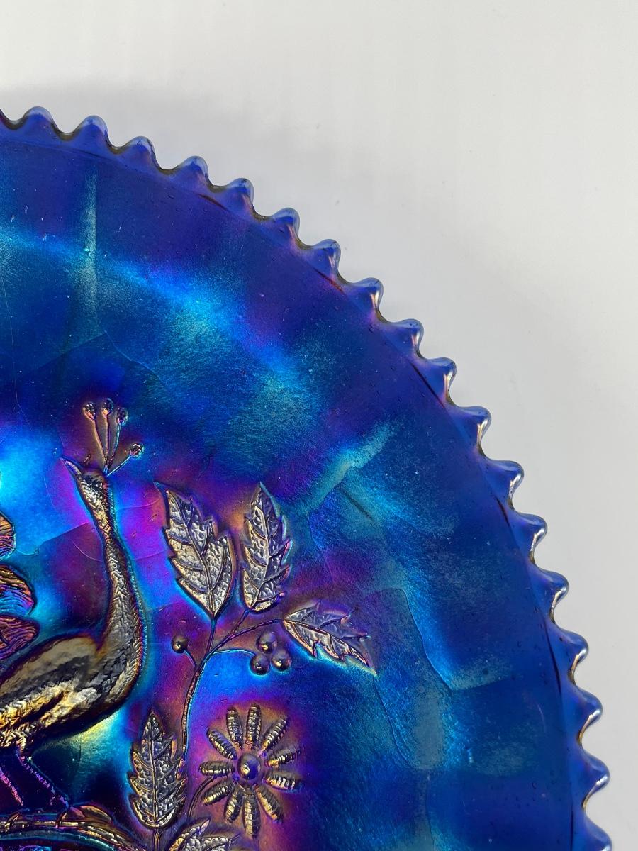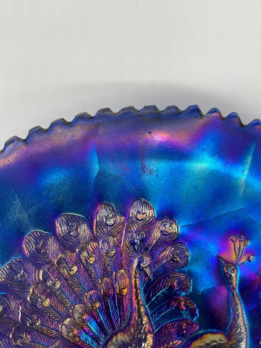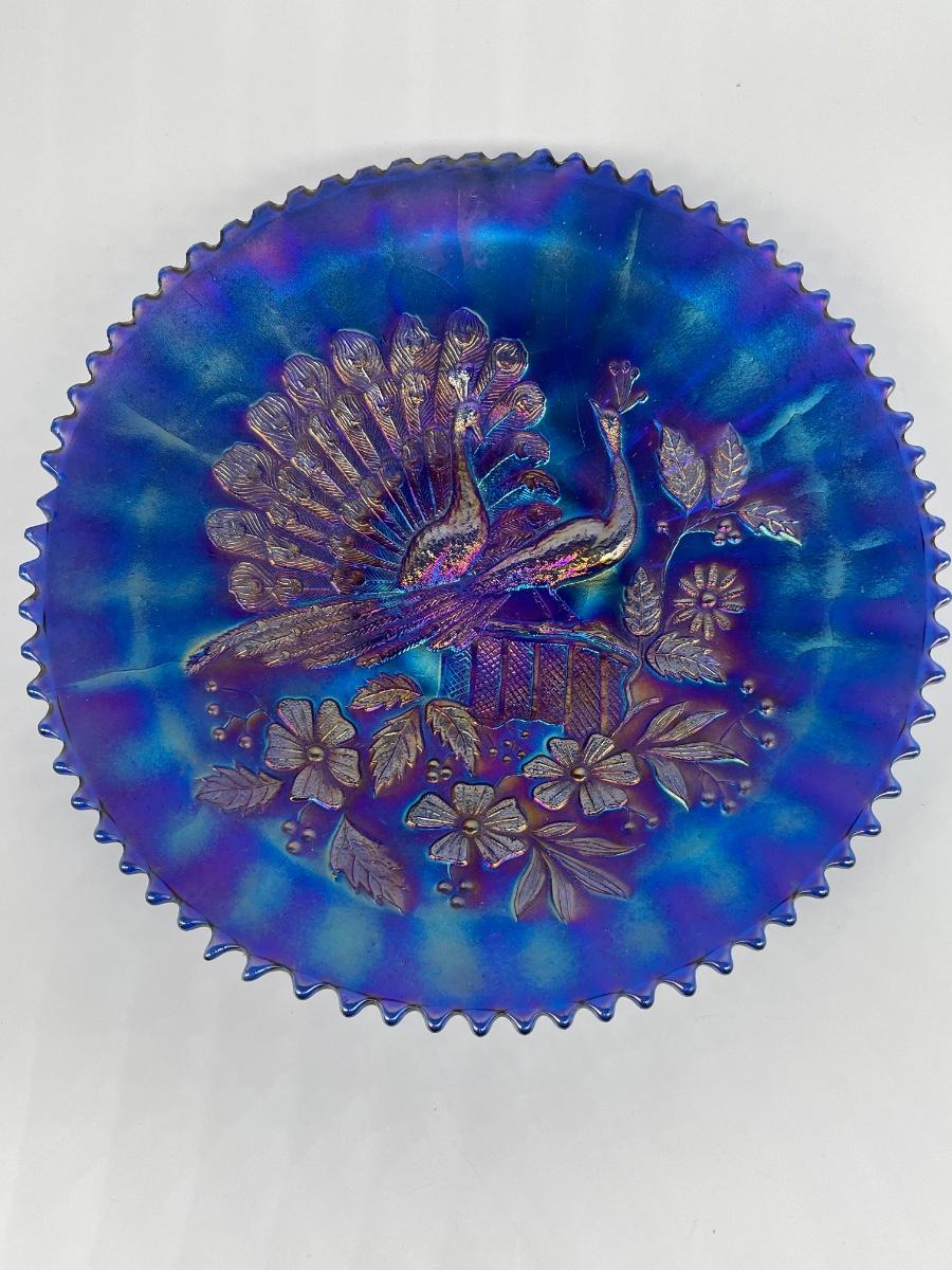 9.25" round pcarnival glass. Some wear around the edges. No cracks.