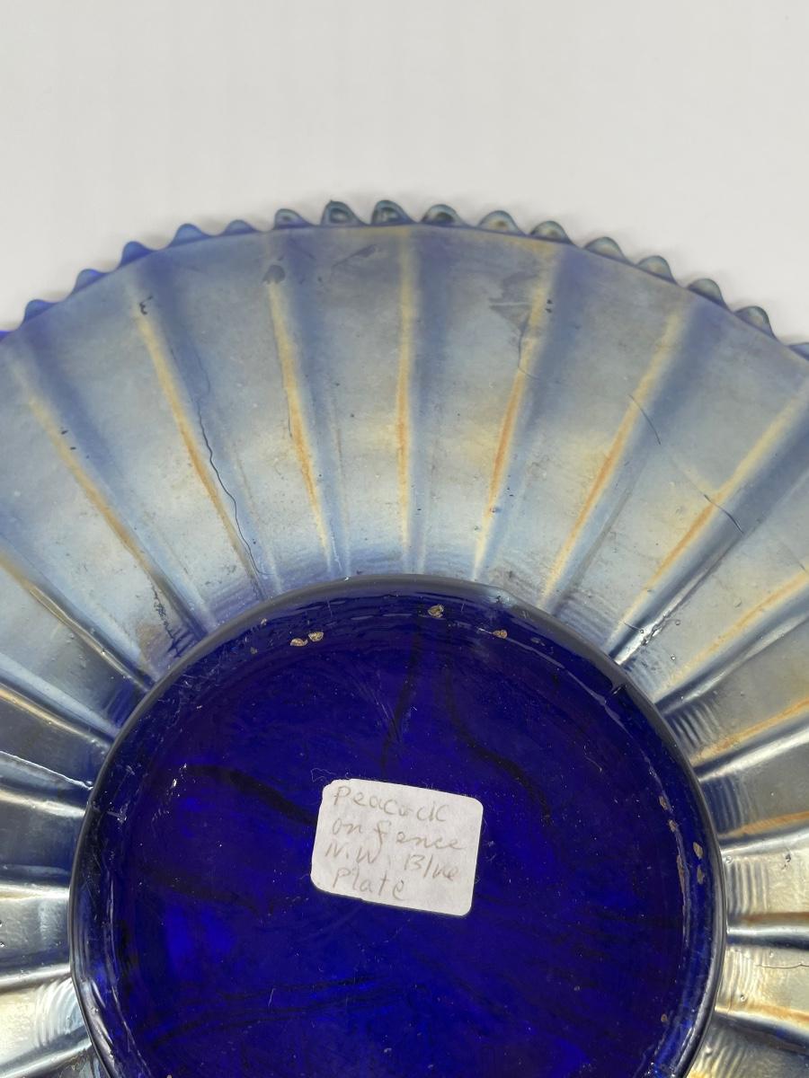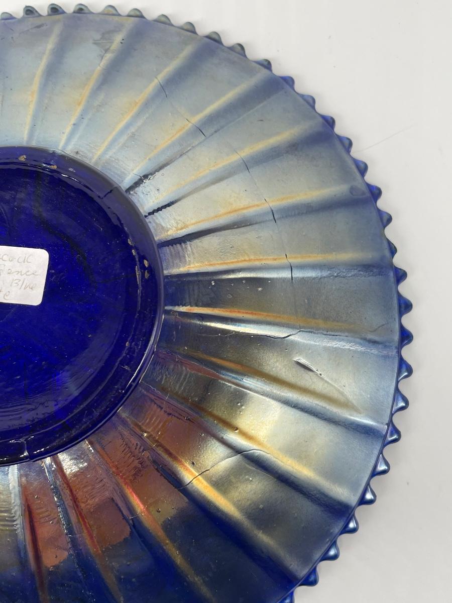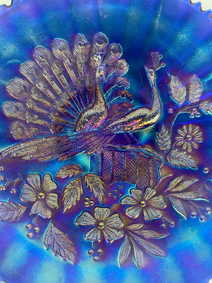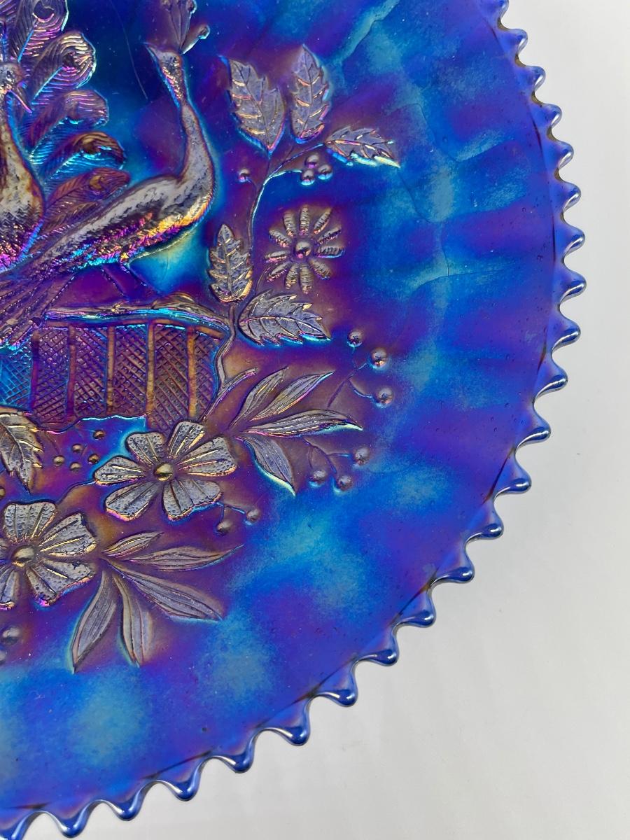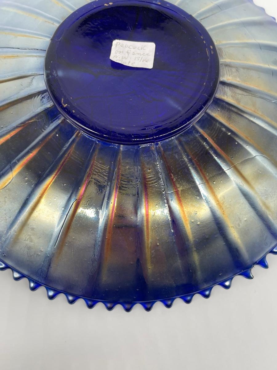 9.25" round pcarnival glass. Some wear around the edges. No cracks.