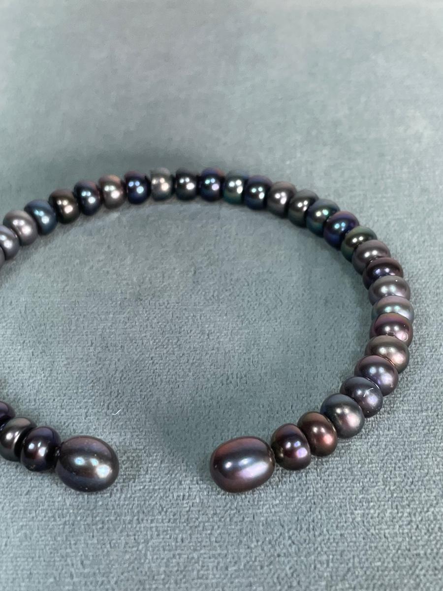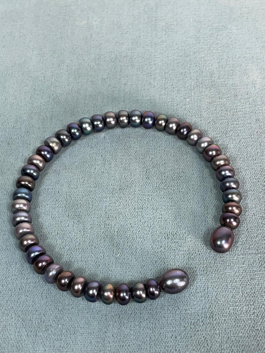 Genuine pearls on memory wire. Fits average to large wrist sizes. New