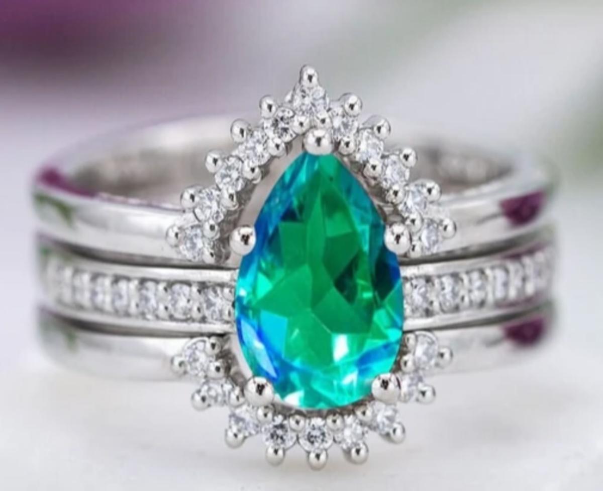 Peacock Tourmaline Pear Cut 3 Pc Bridal Set