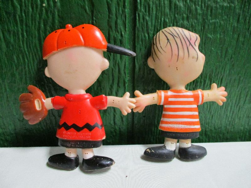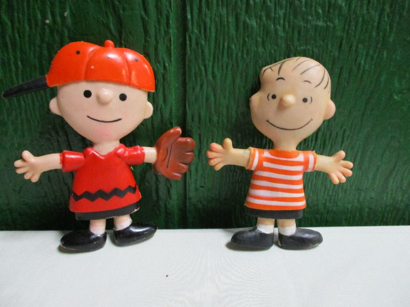 Peanuts Charlie Brown & Linus 6" Bendy Figure Dolls Hong Kong 1969