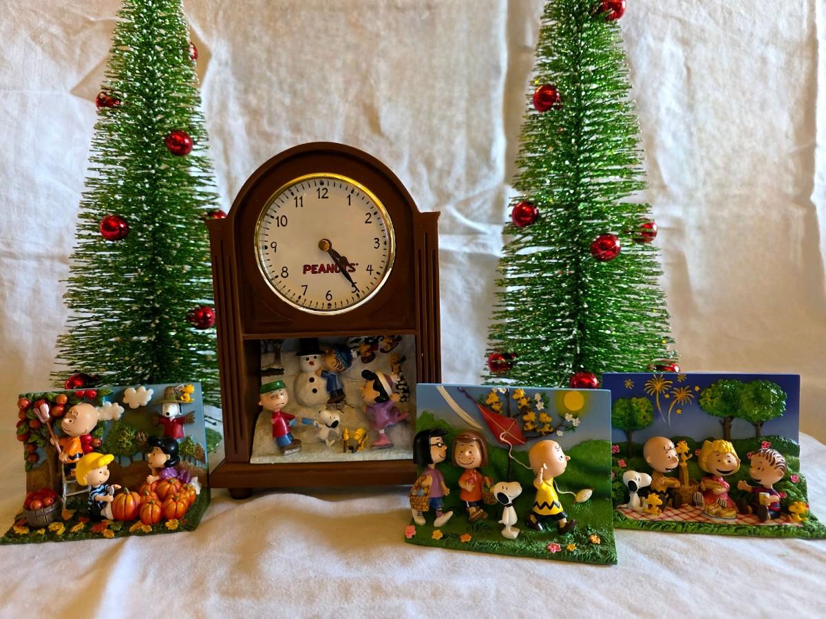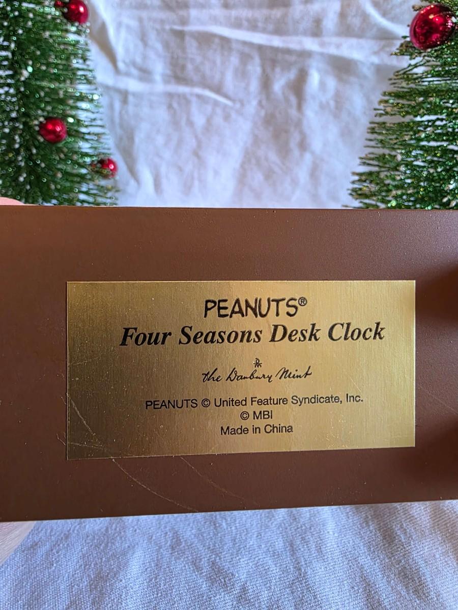 Danbury Mint, "Peanuts Four Seasons DESK Clock." Includes all 4 interchangeable plaques. Tested and works.