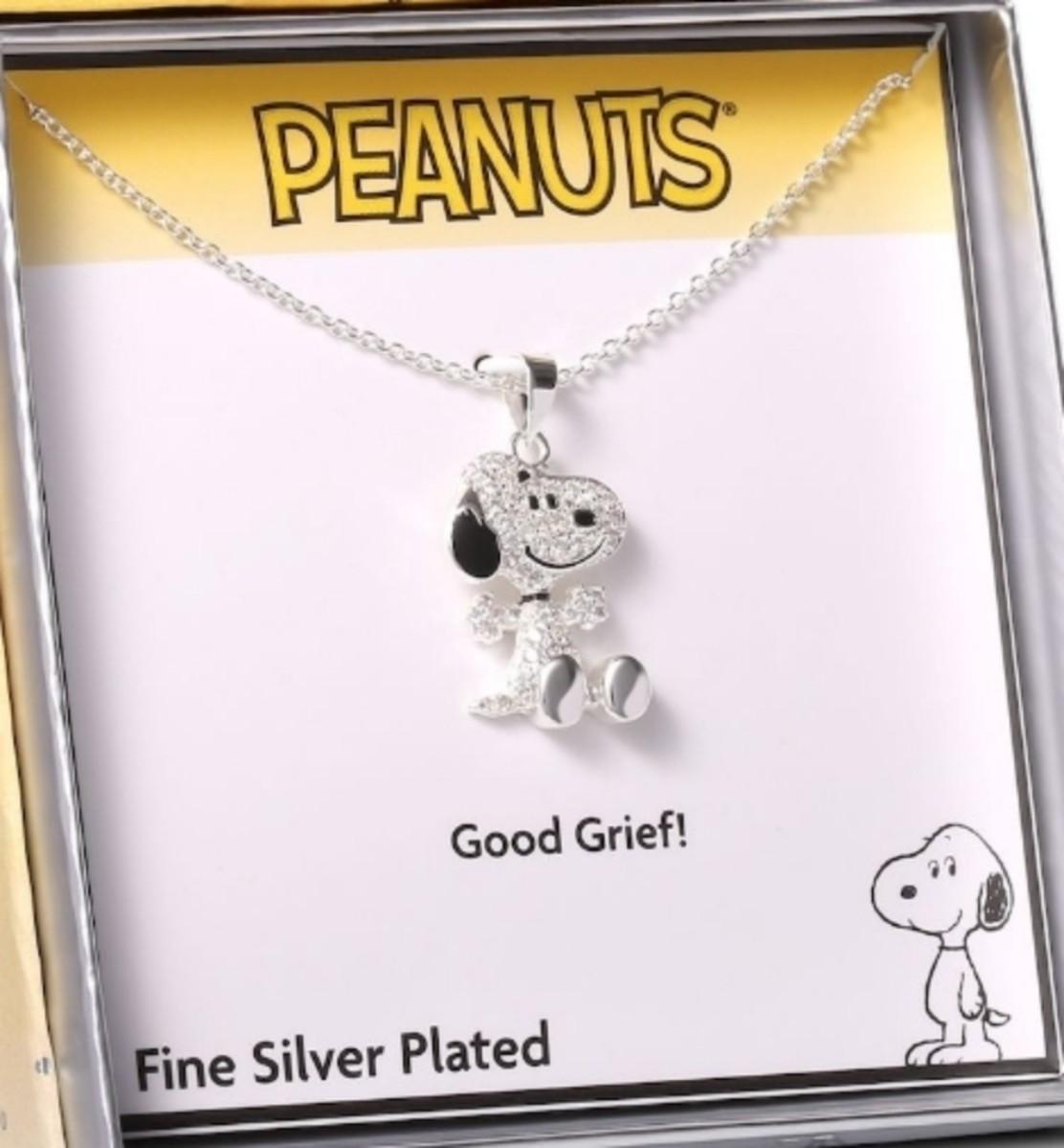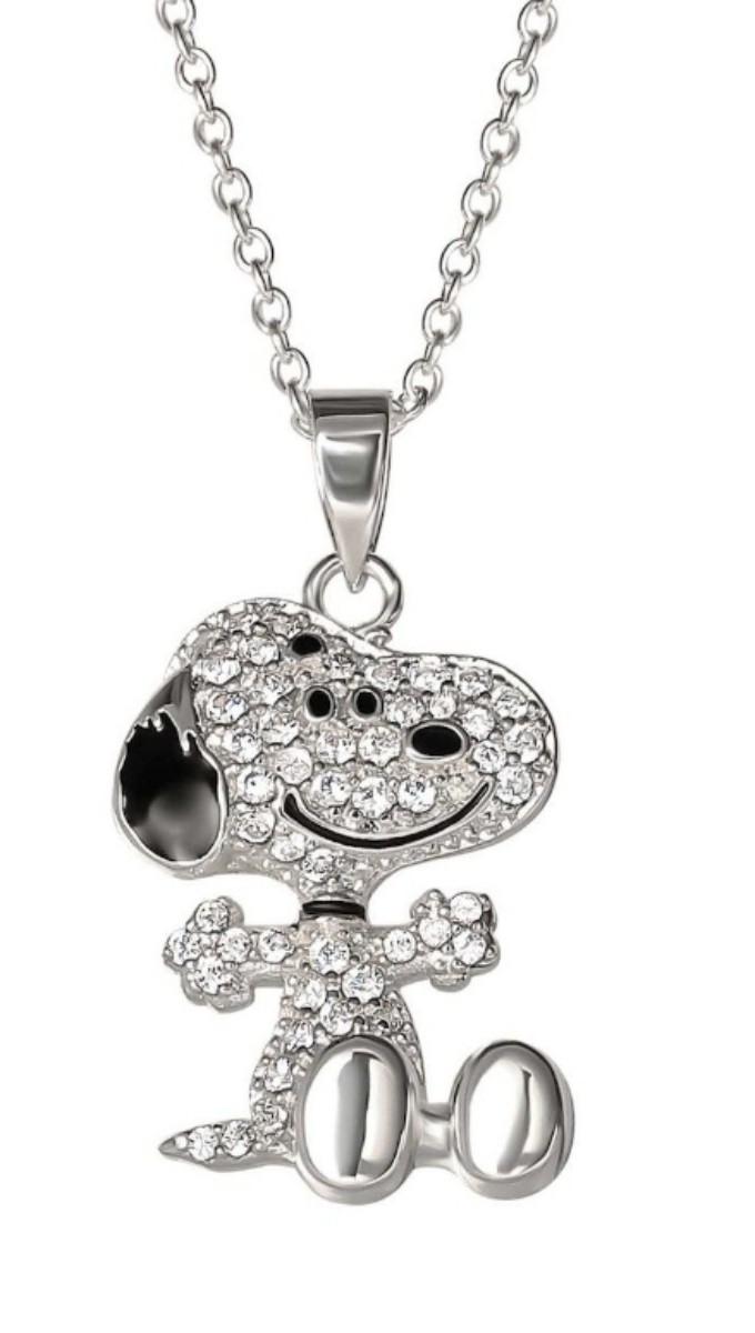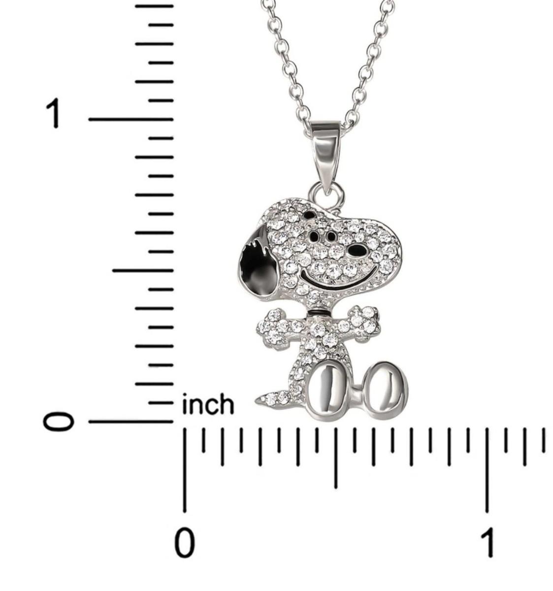 Peanuts Snoopy Sterling Silver Cubic Zirconia 3D Pave Pendant Necklace