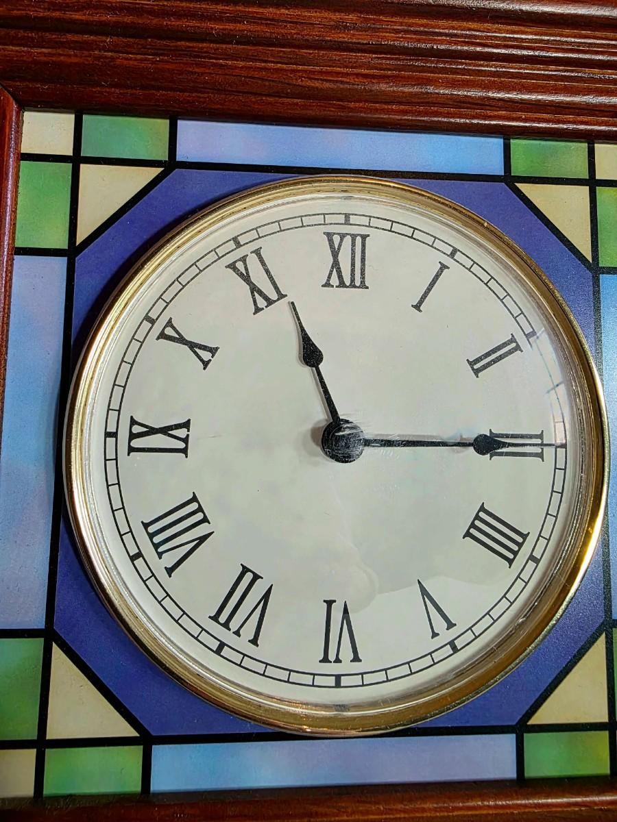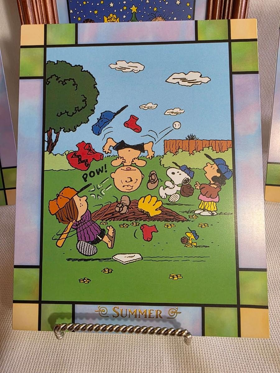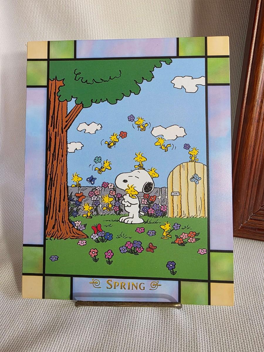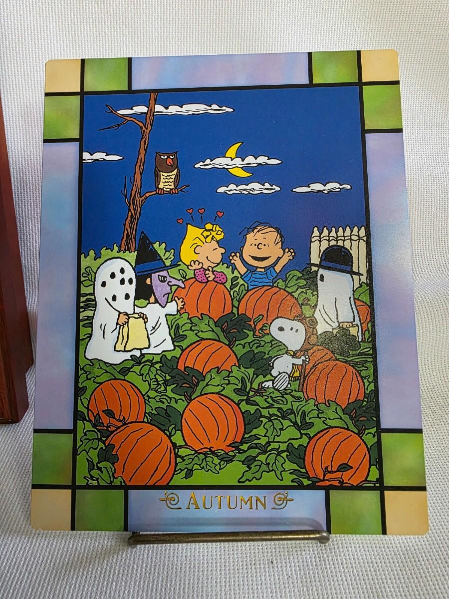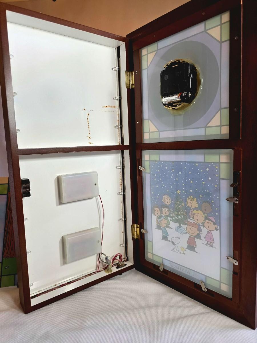 Danbury Mint, "Peanuts Stained Glass Clock" includes all 4 seasons-stained glass pieces. Tested and clock and lights are working.