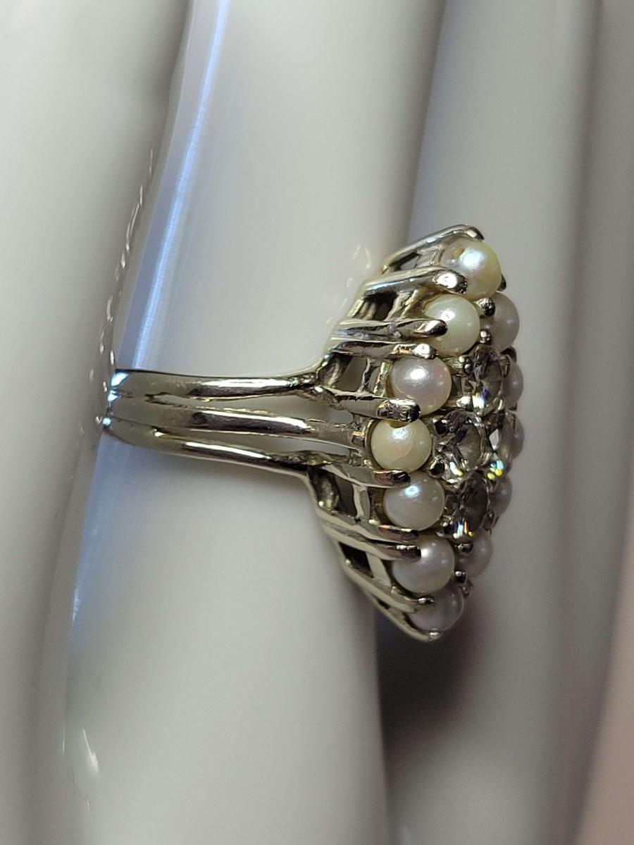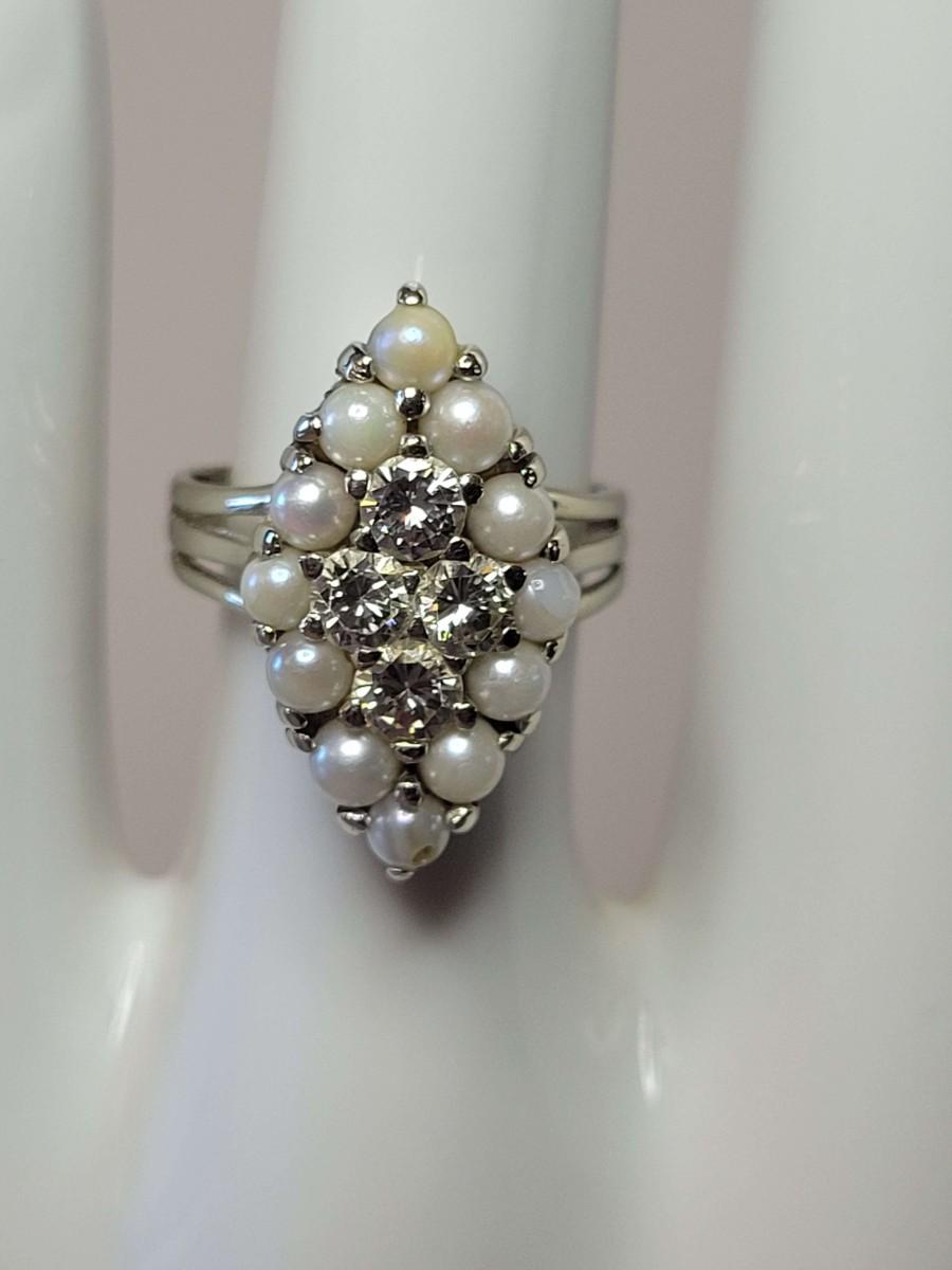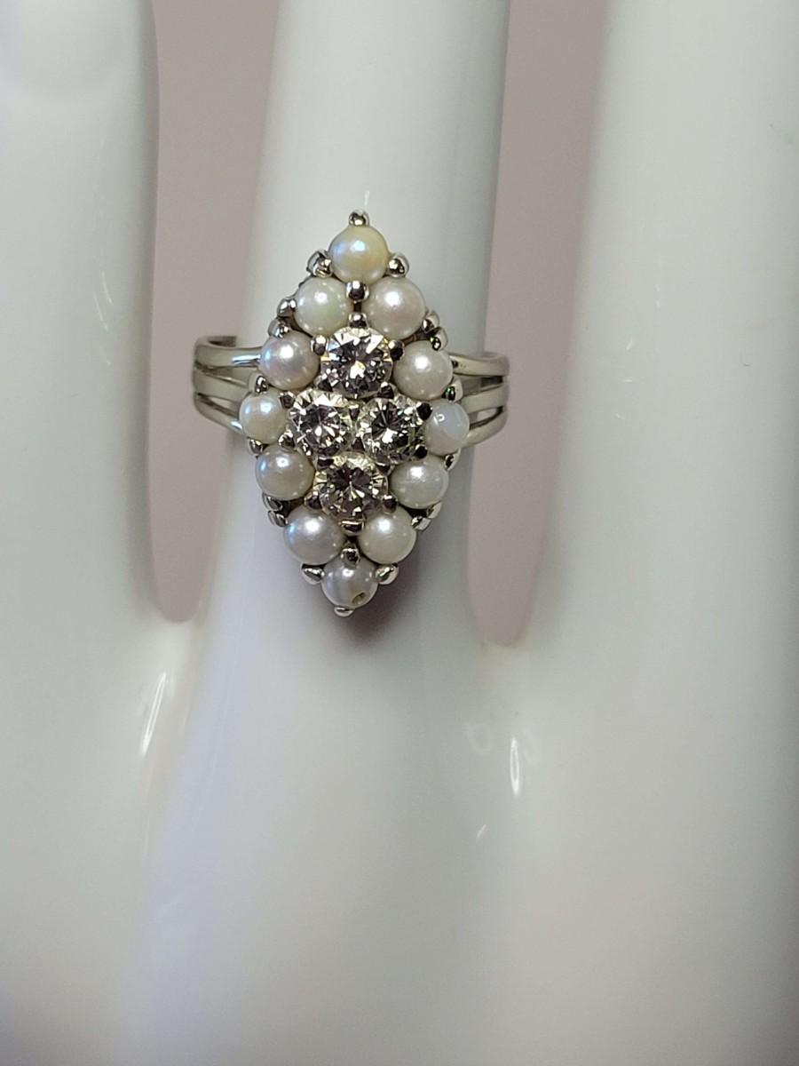 Vintage style 14k pearl and diamond ring.