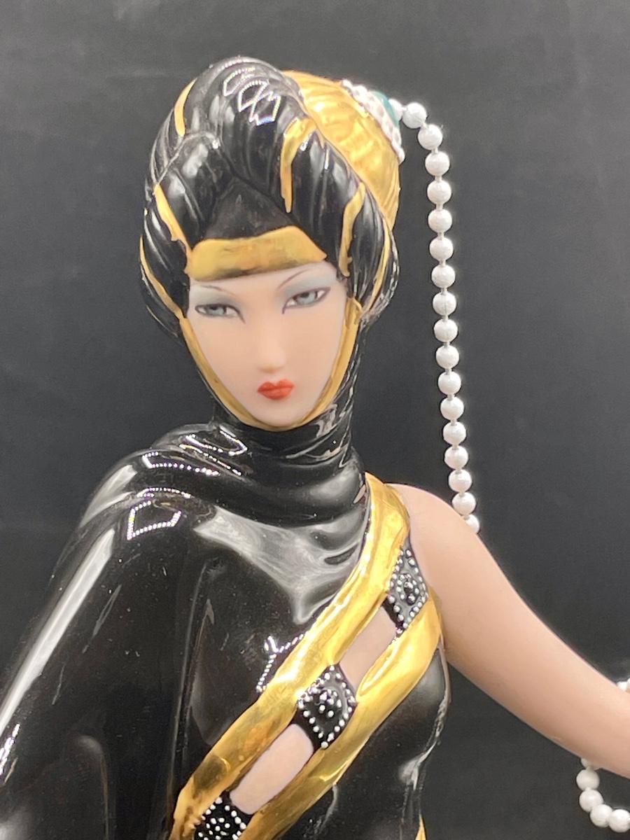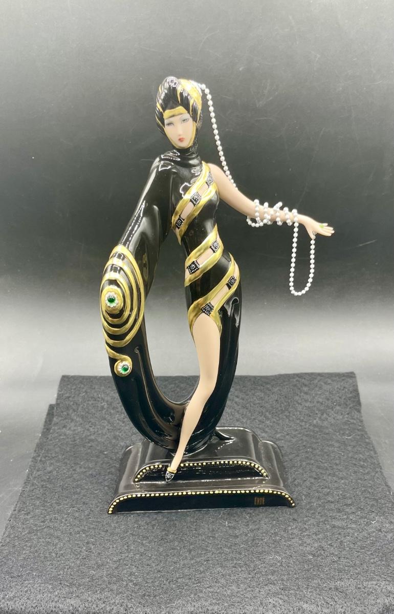 Franklin Mint House Of Erte "Pearls & Emeralds" Hand-Painted Porcelain Figurine - NIB