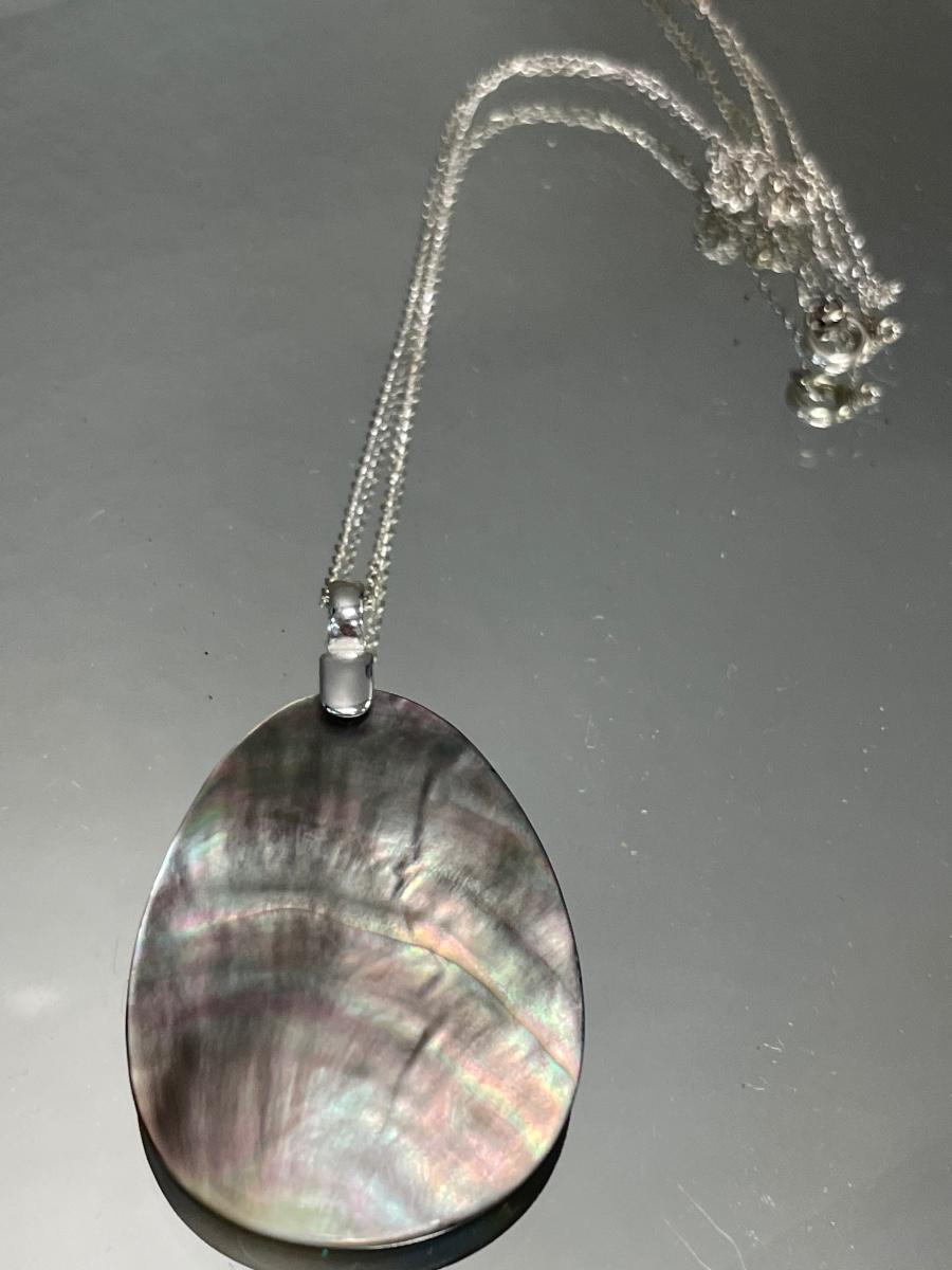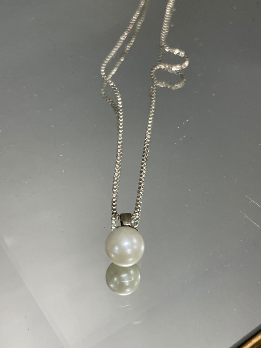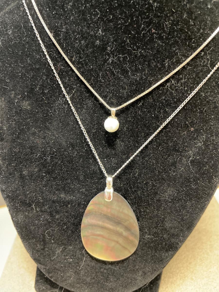 Pearl and shell pendants on sterling chains