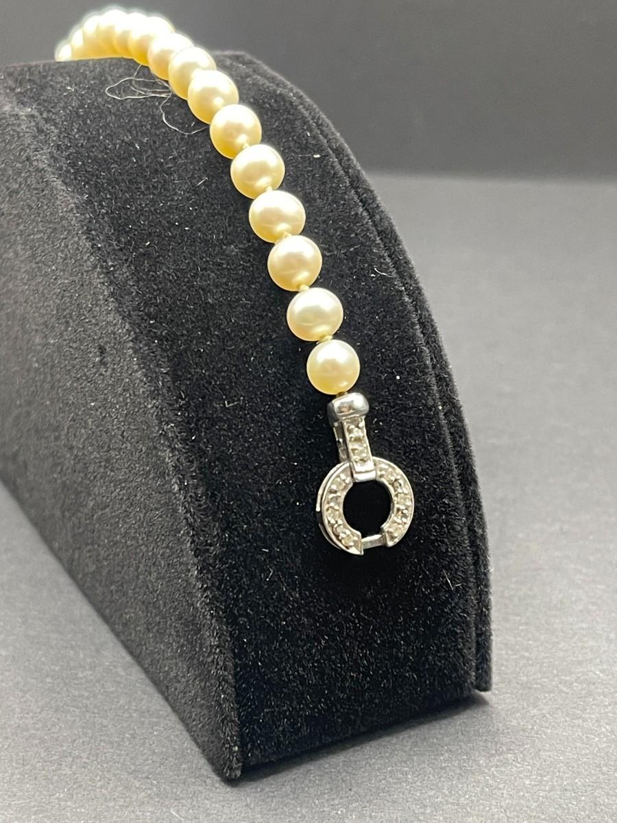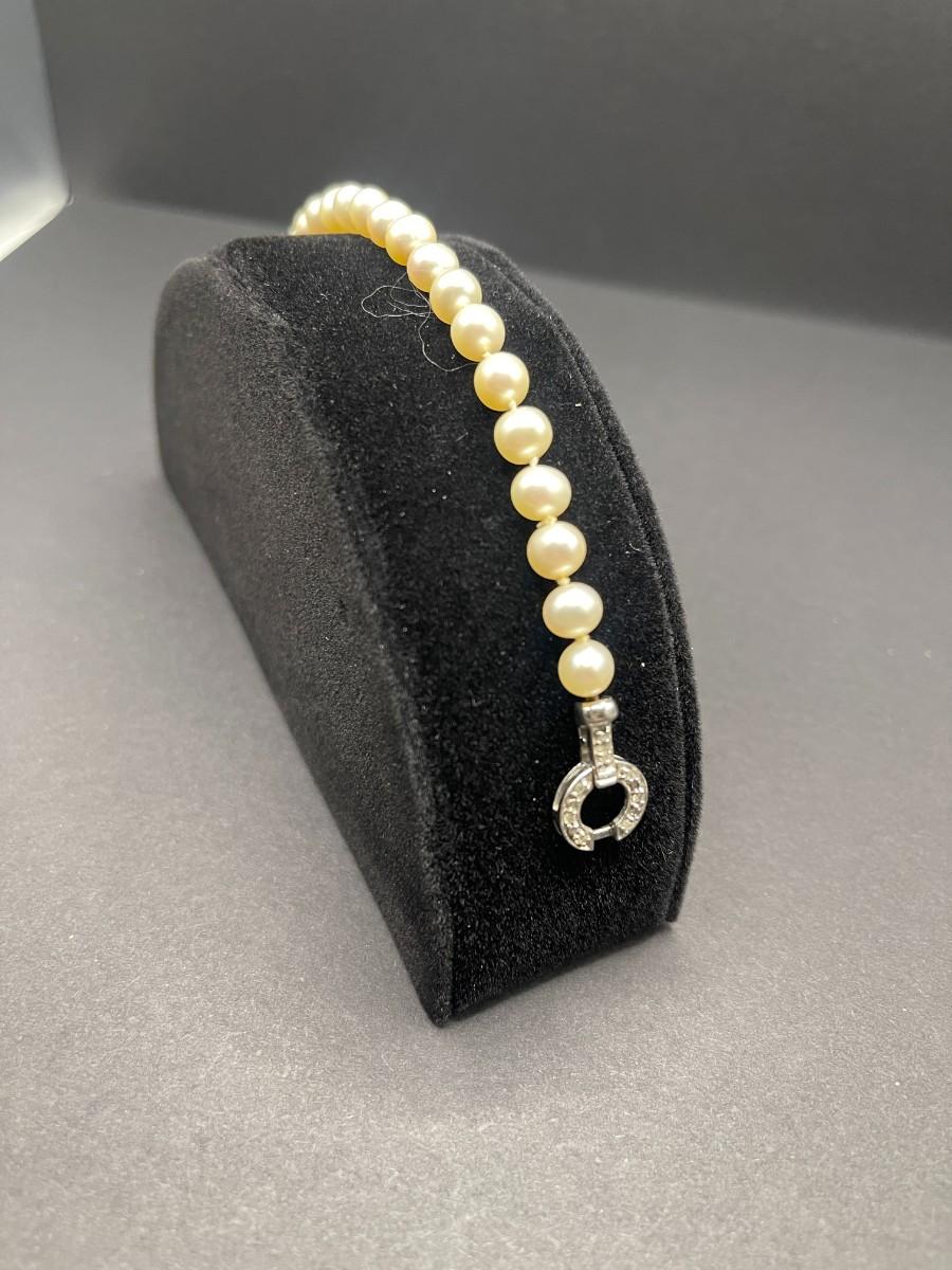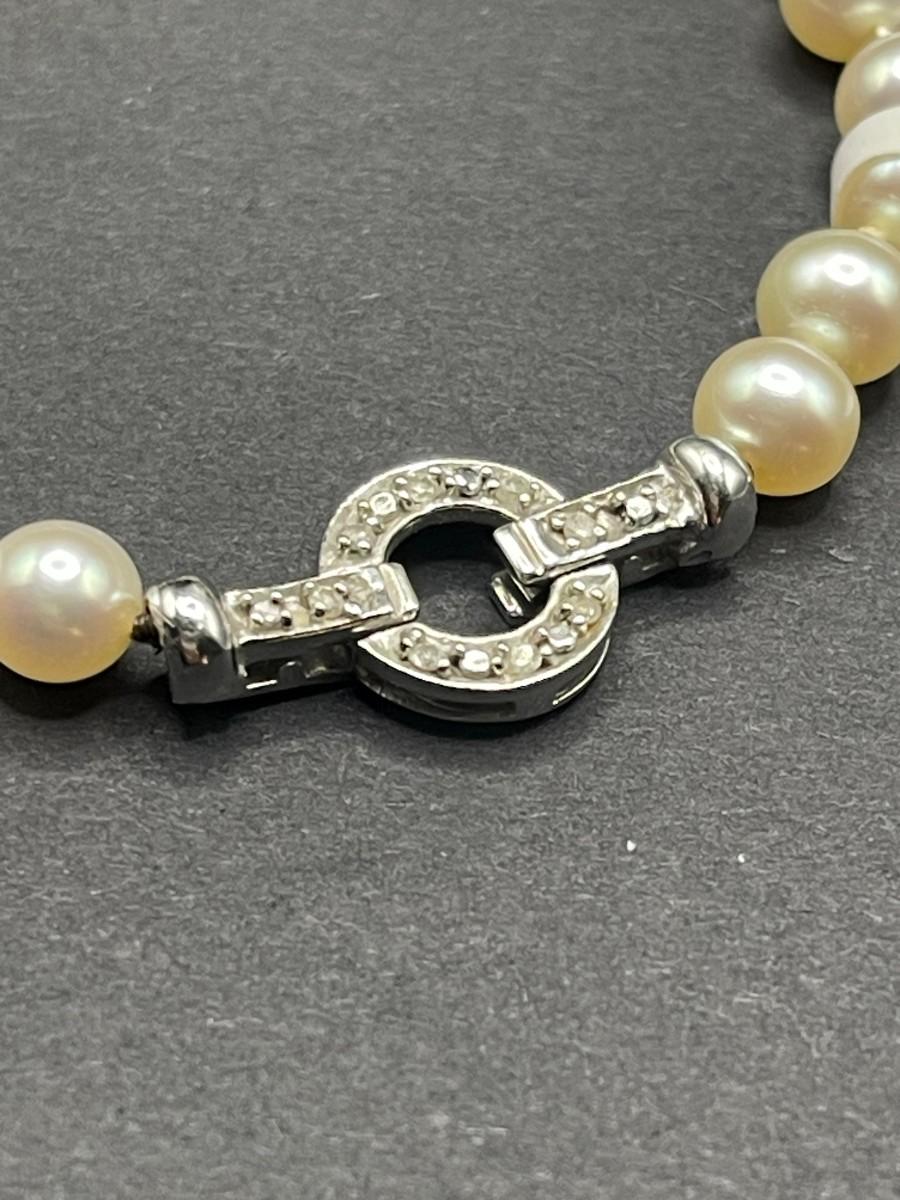 Pearl and White Gold Clasp Bracelet with Diamonds