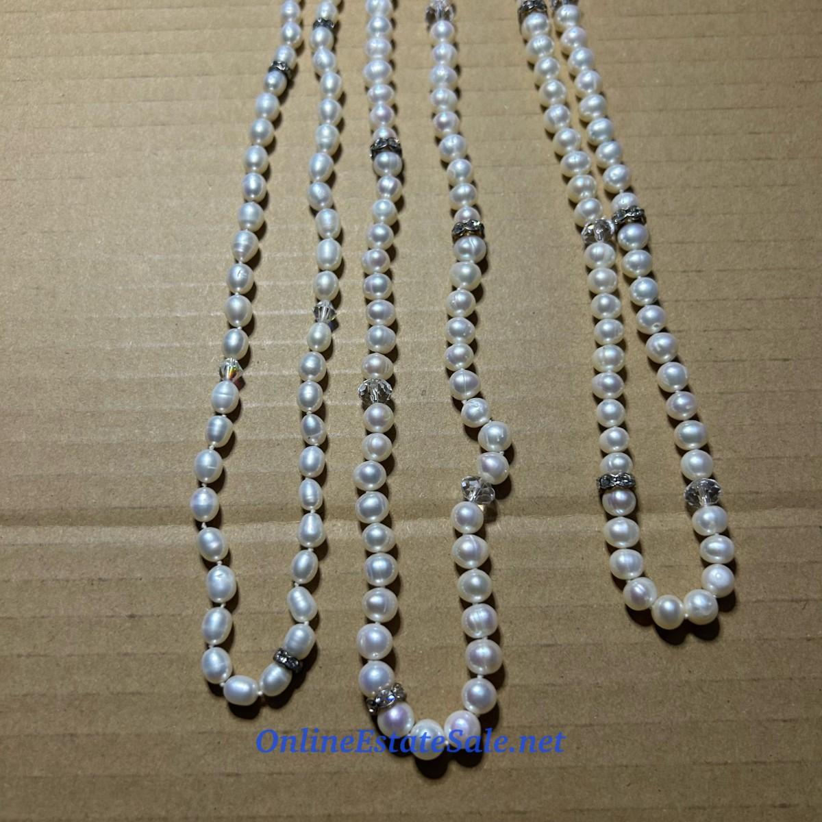 3 16in Pearl Bead Strands with Keychain Hooks and Rhinestone Accent Beads