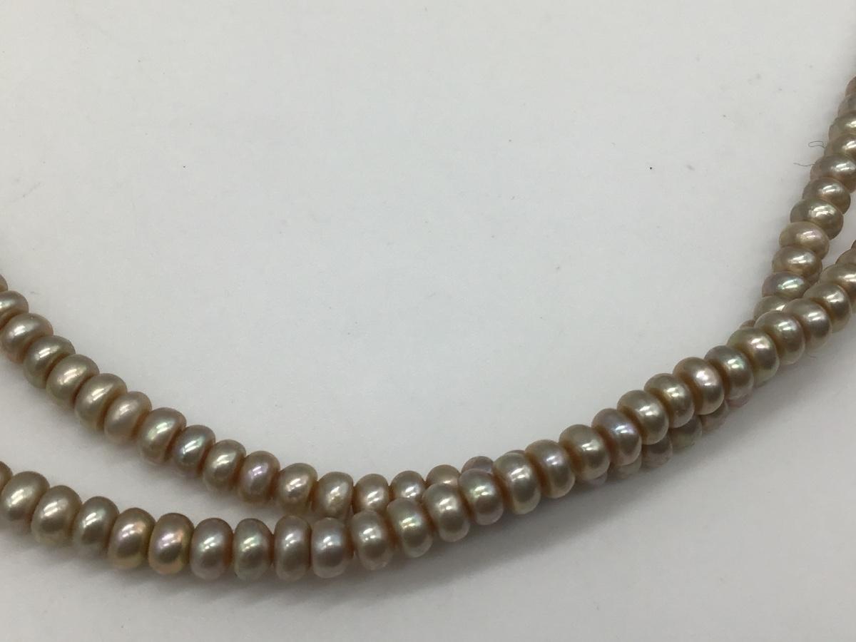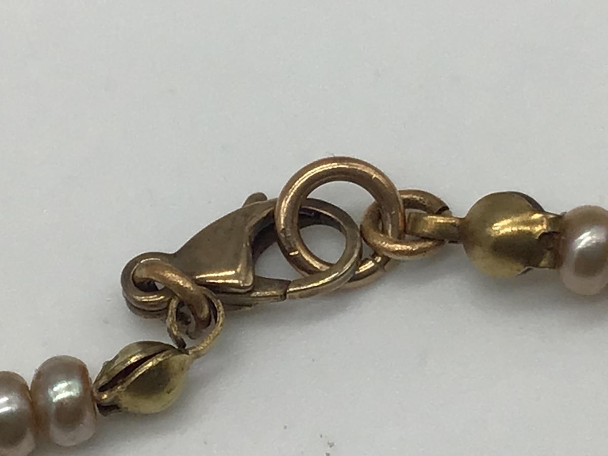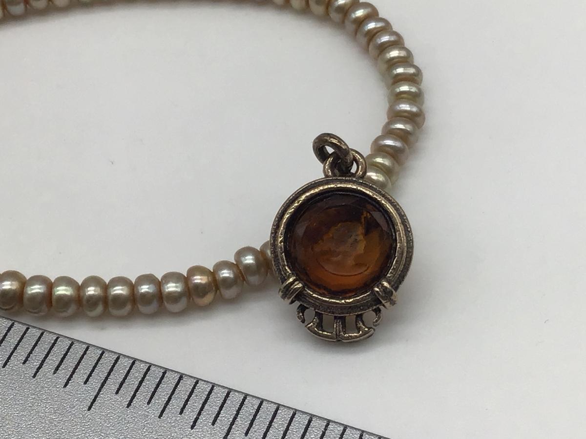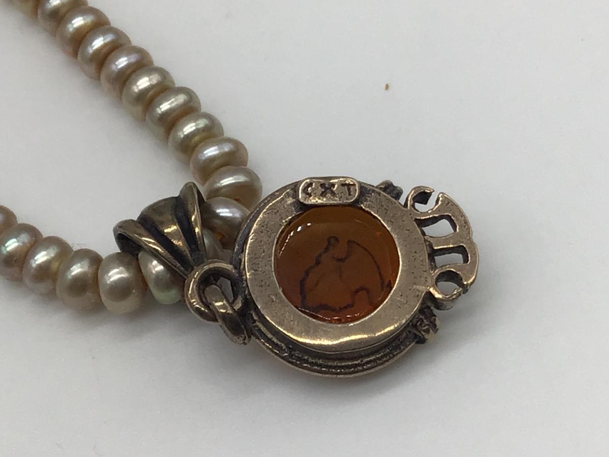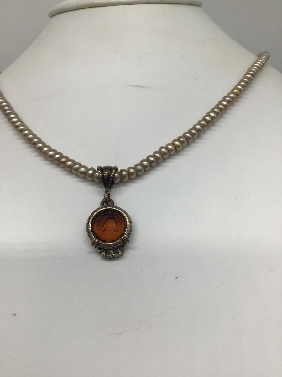 Pearl Beaded necklace with Amber Cameo Pendant Marked