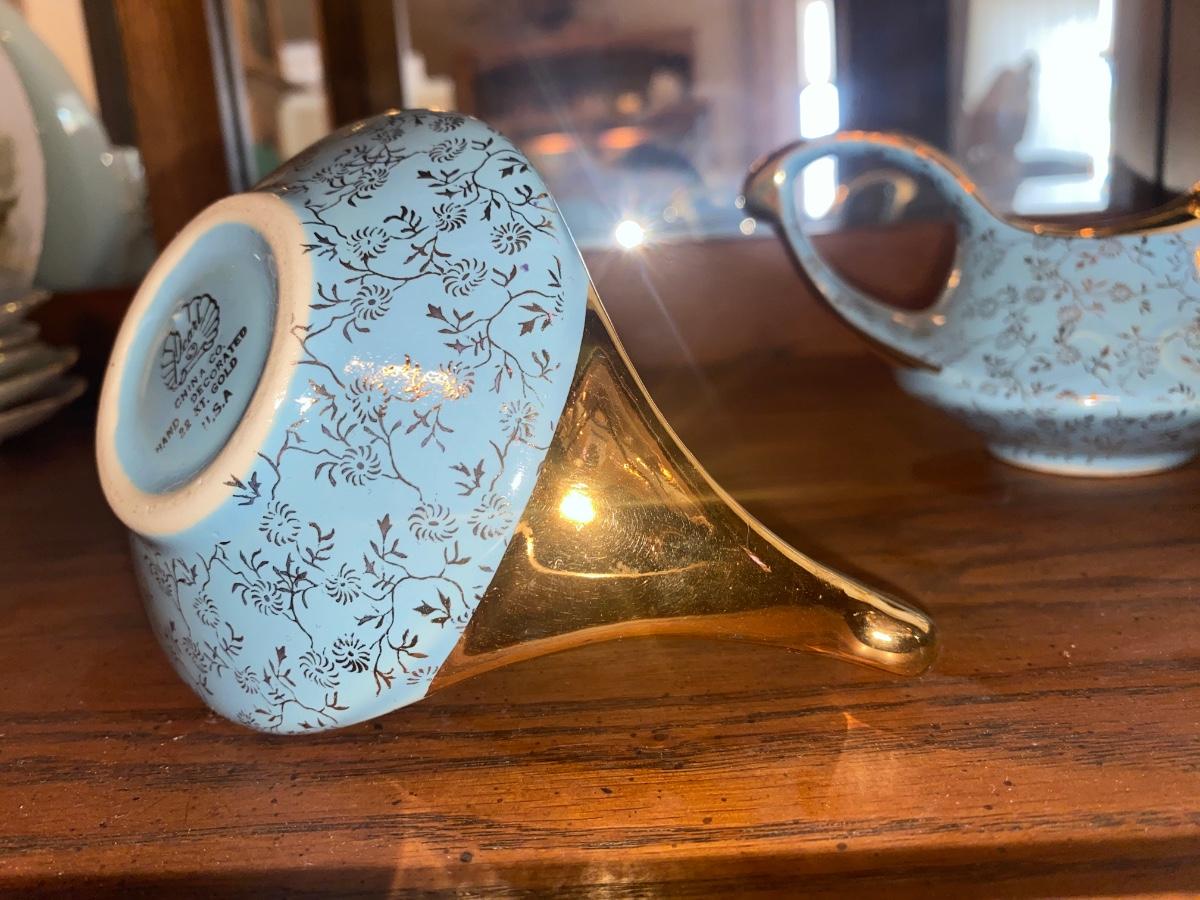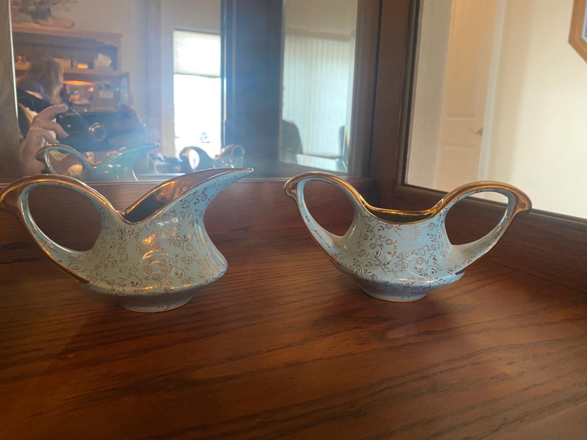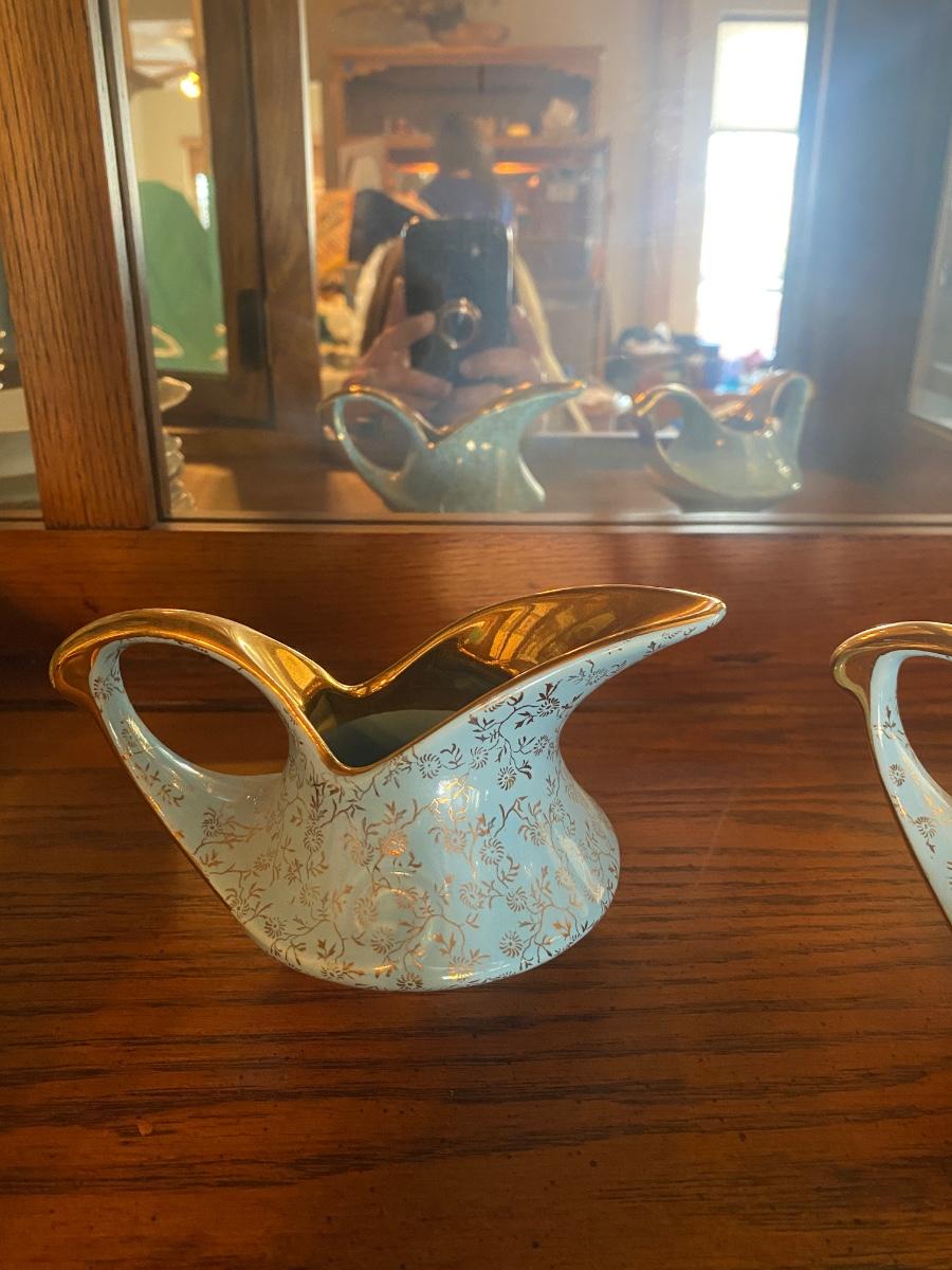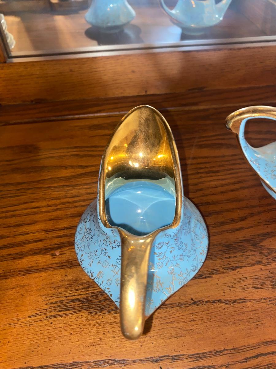 PEARL CHINA SUGAR AND CREAM SET HAND DECORATED WITH 22 KARAT GOLD
