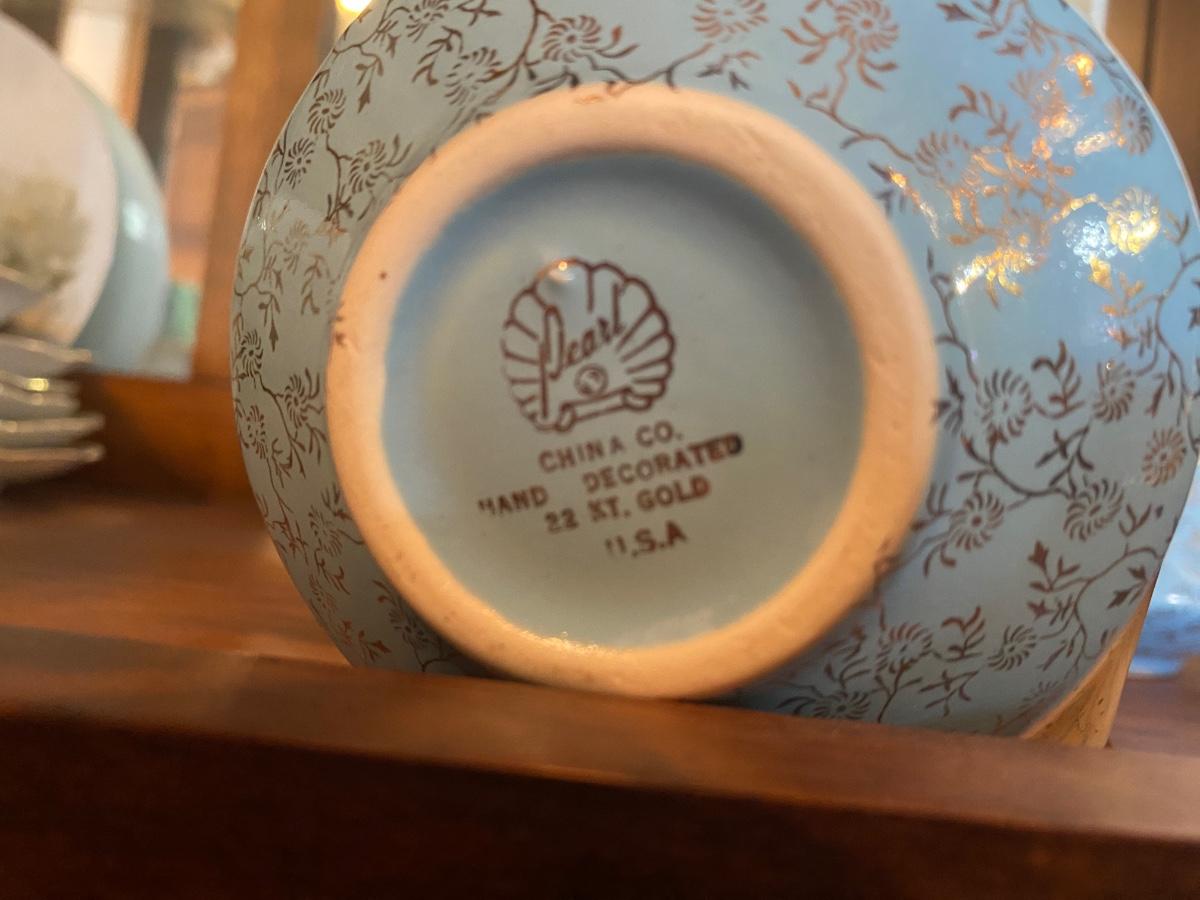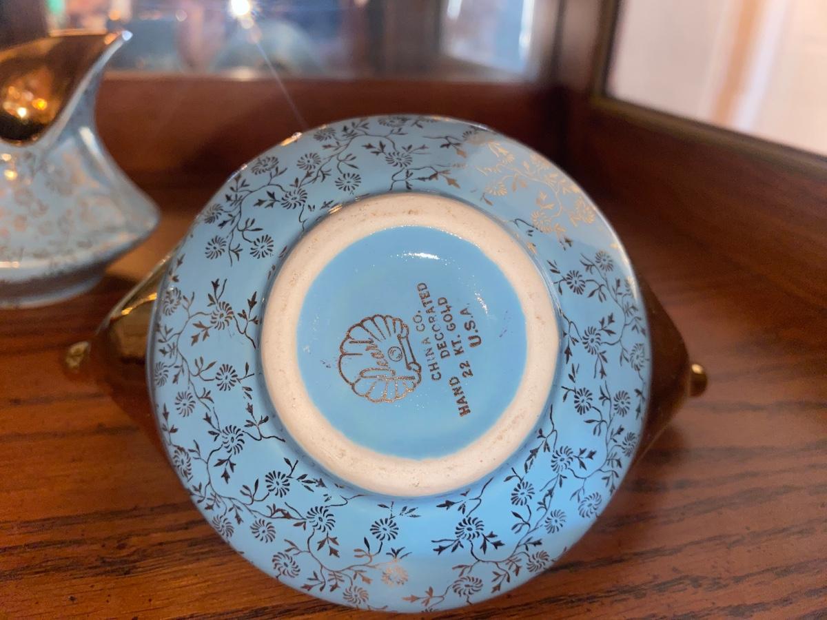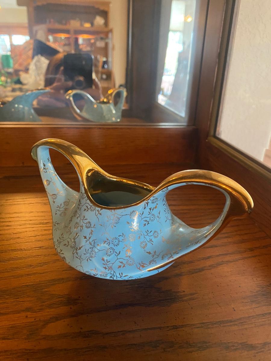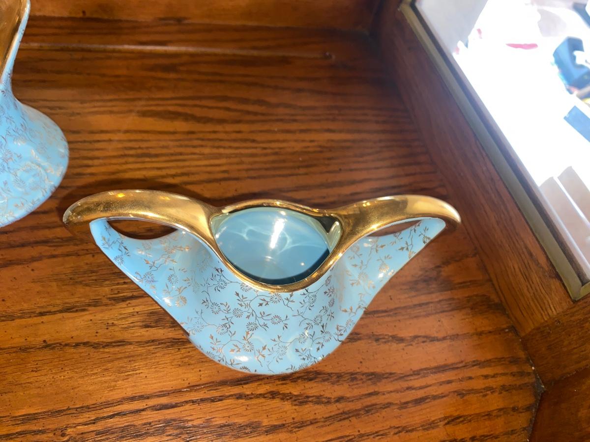 PEARL CHINA SUGAR AND CREAM SET HAND DECORATED WITH 22 KARAT GOLD