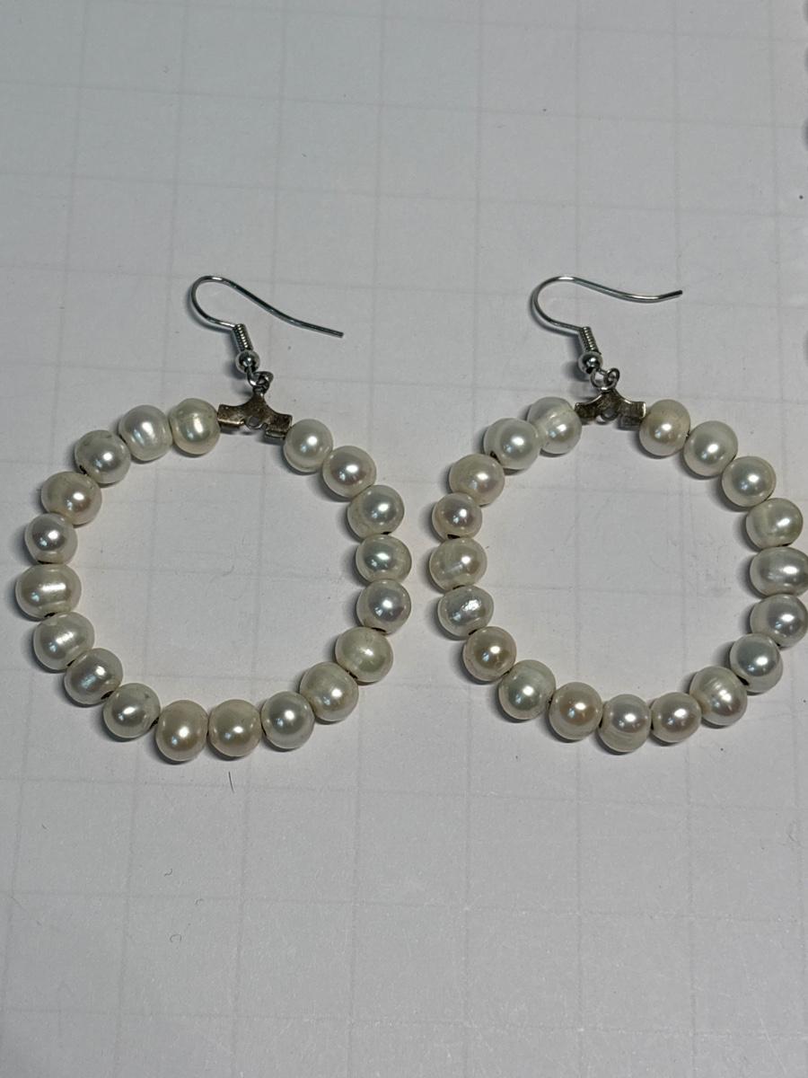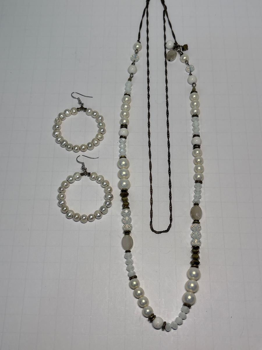 Pearl hoop earrings & necklace