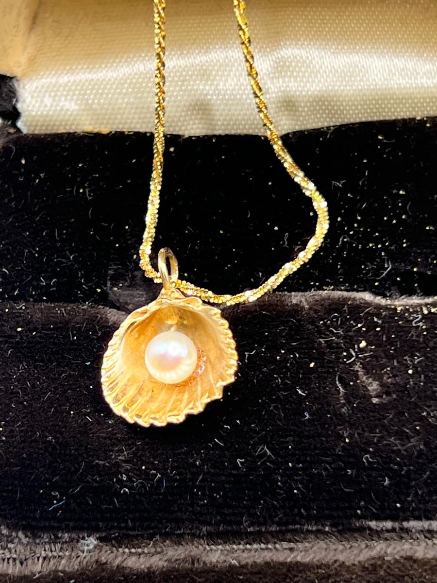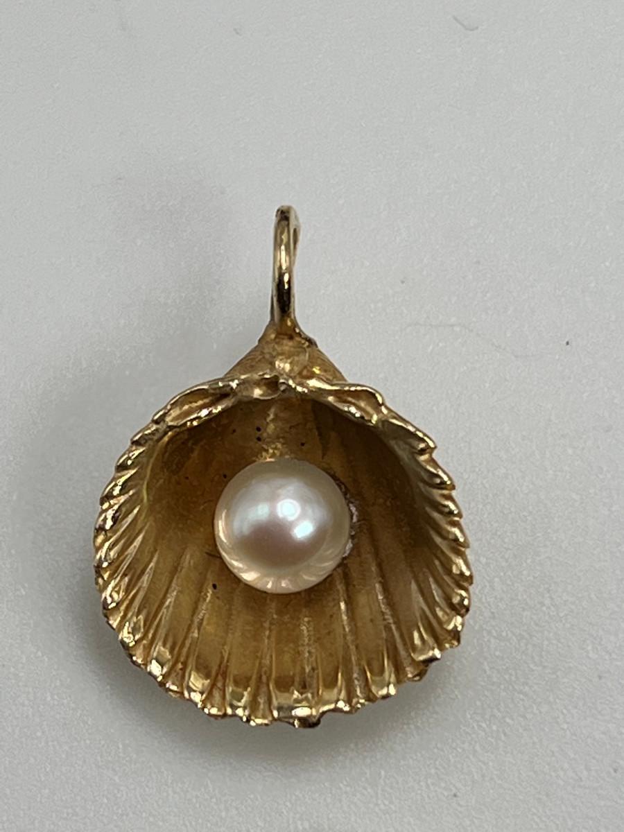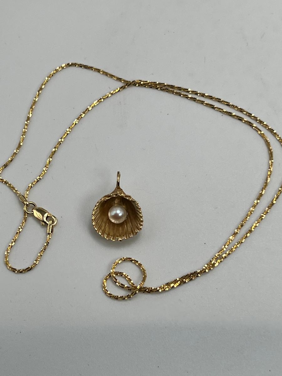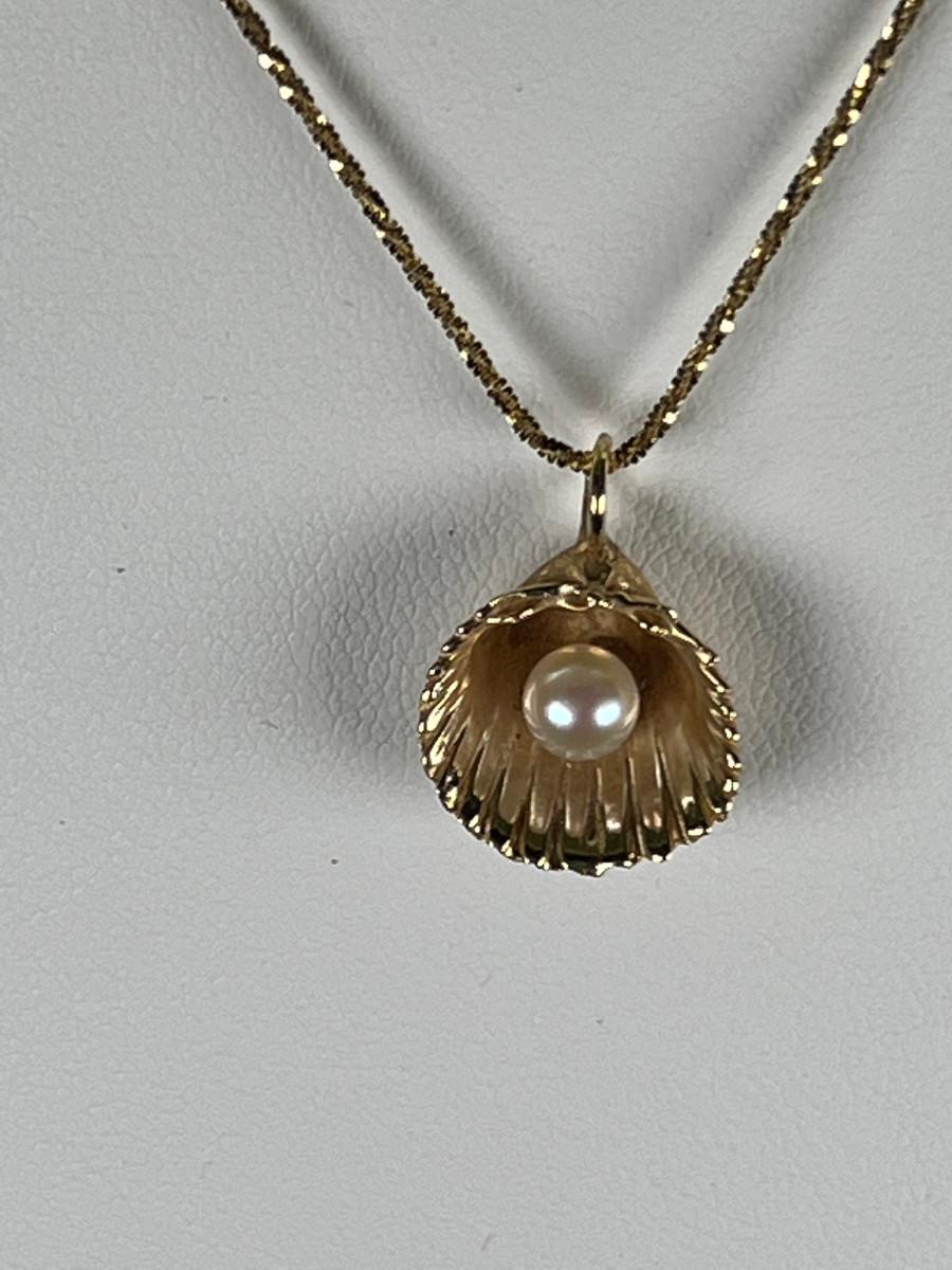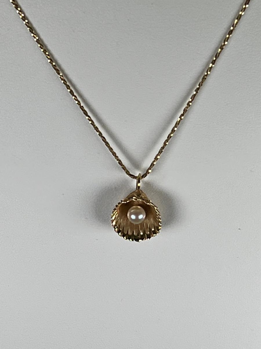 Pearl in Shell Pendant 14K gold with 14K Chain