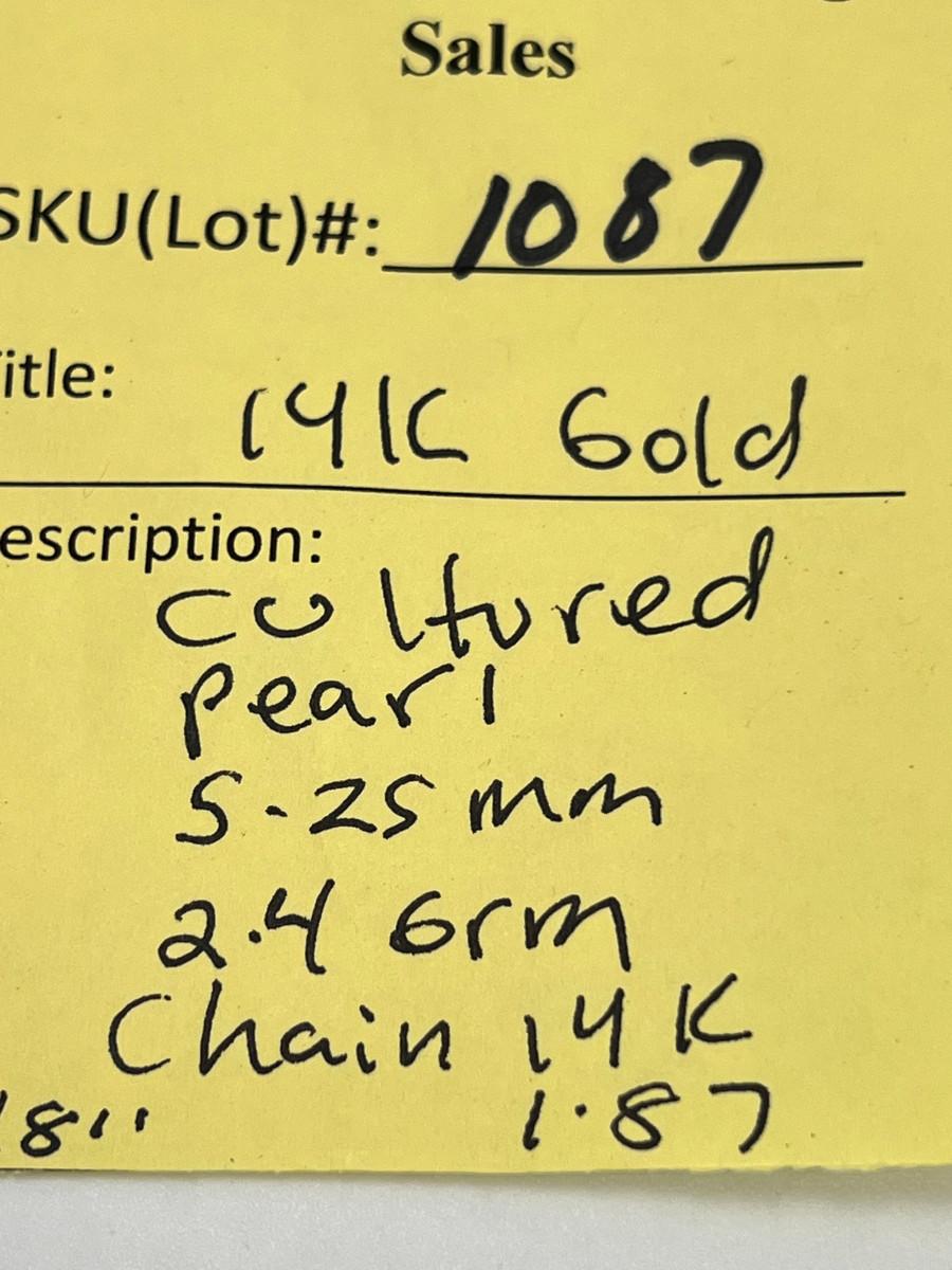 Pearl is 5.25 MM 2.4 Grm Gross wt.