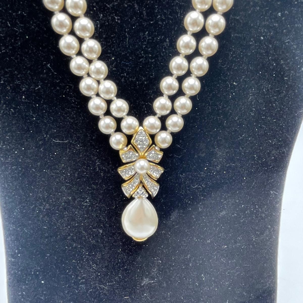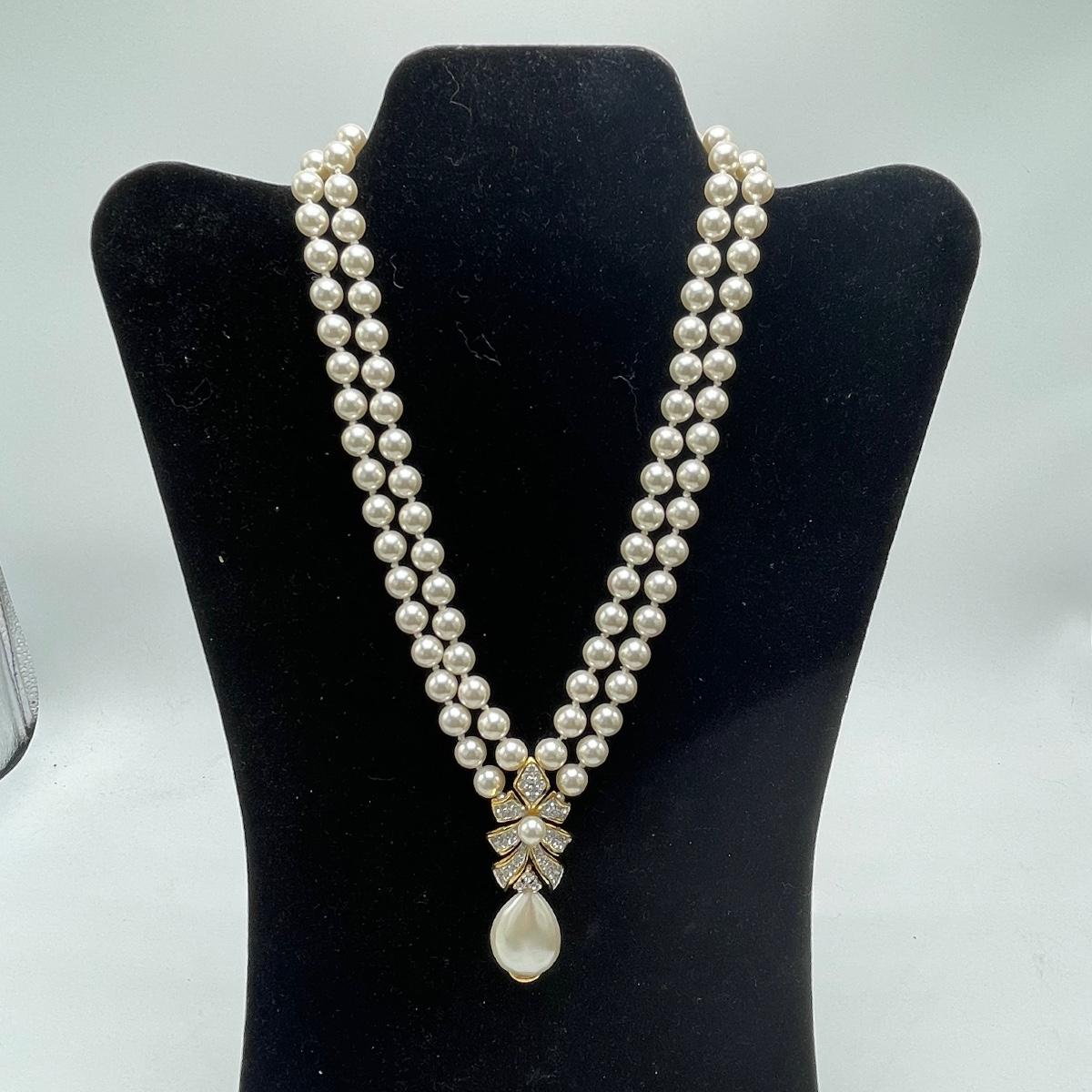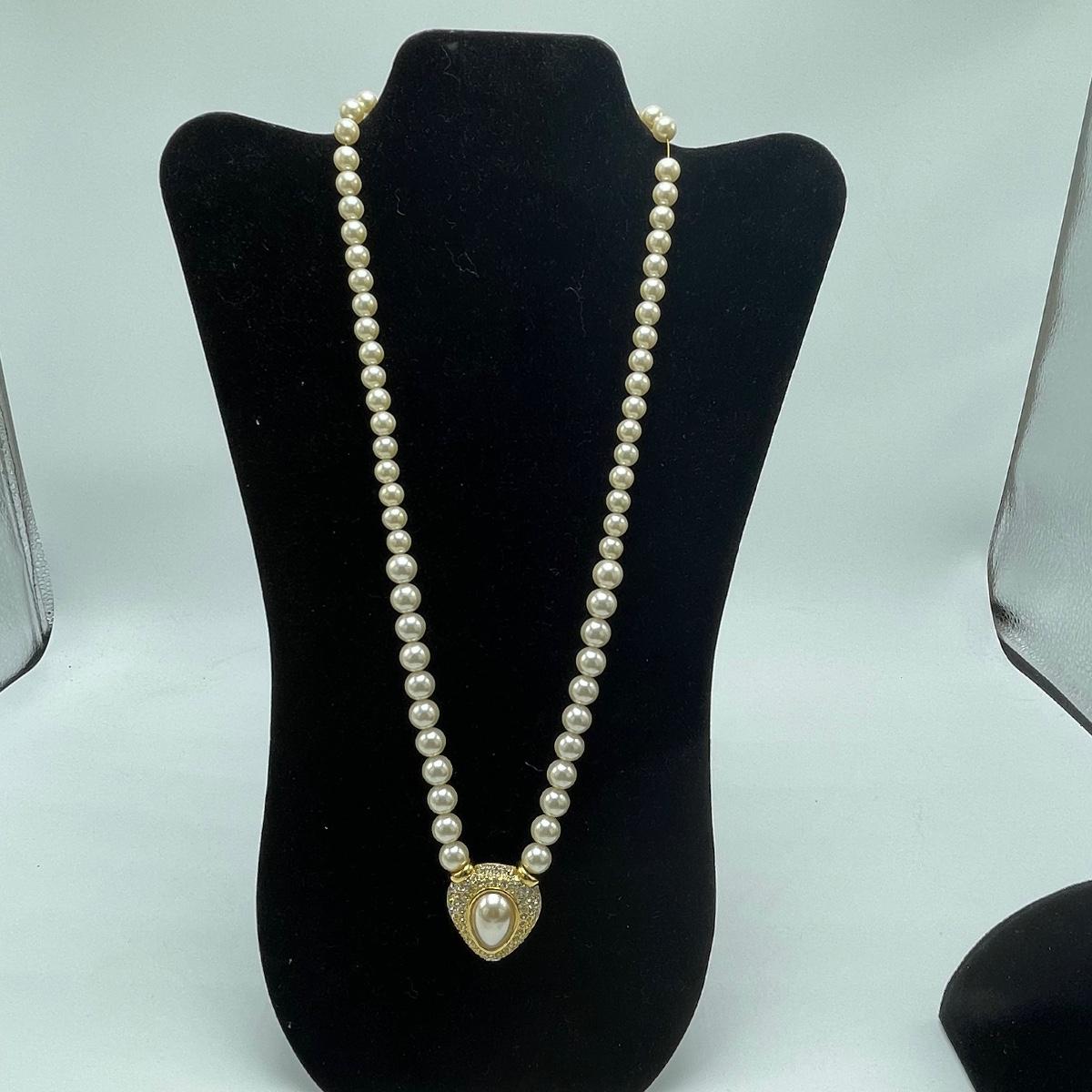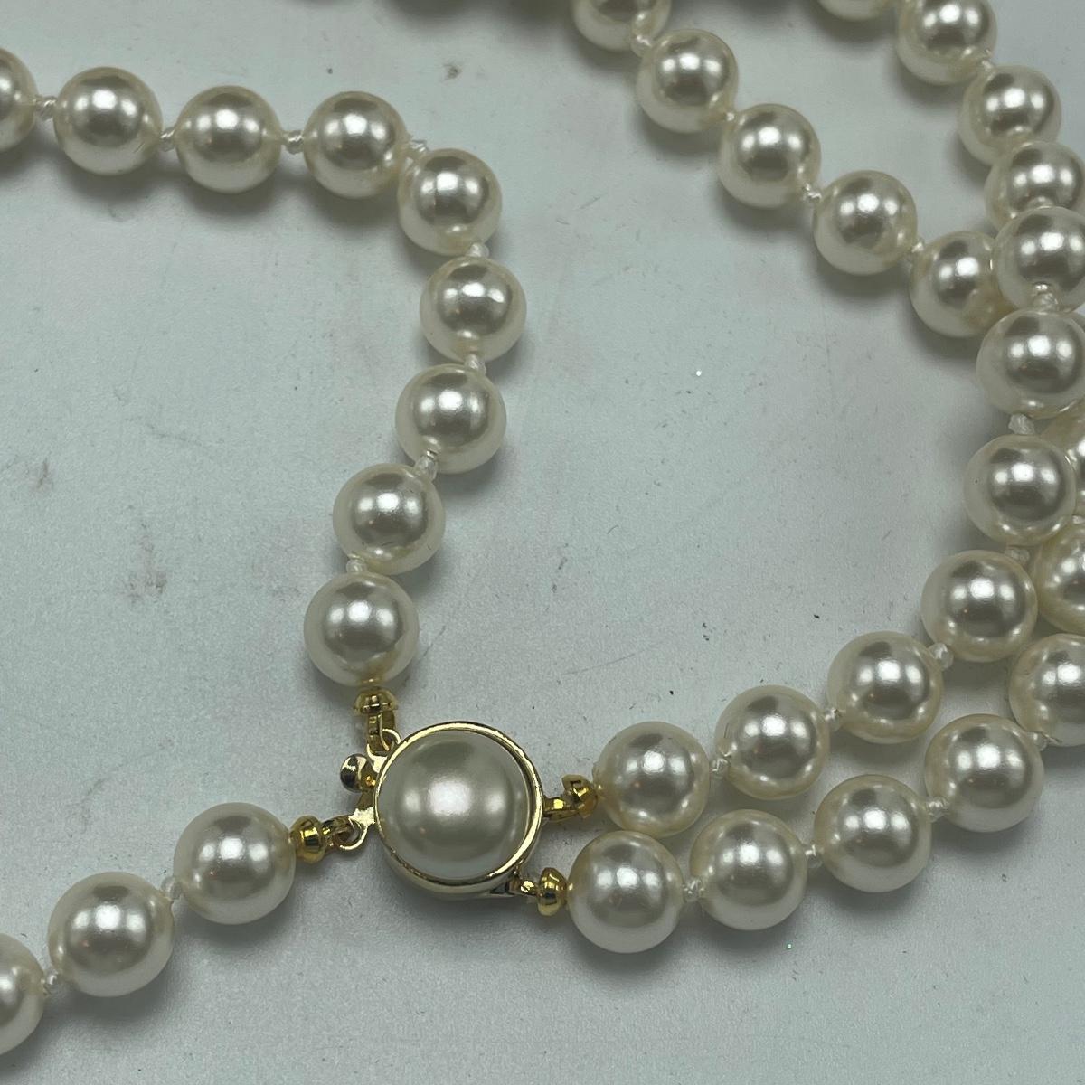 Five Pearl necklaces that includes double and single stranded. We cannot guarantee any authenticity on the pearls. One necklace is marked Napier and has a matching pair of earrings. All earrings are for pierced ears and lot also includes a brooch.