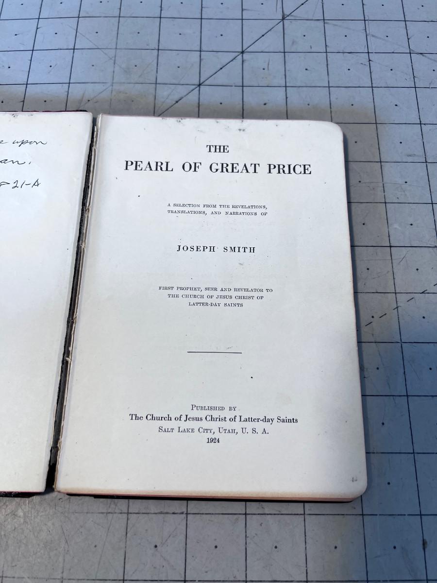 Pearl of Great Price Book 1924 Edition Publisher Church of Jesus Christ of Latter Day Saints, SLC UT