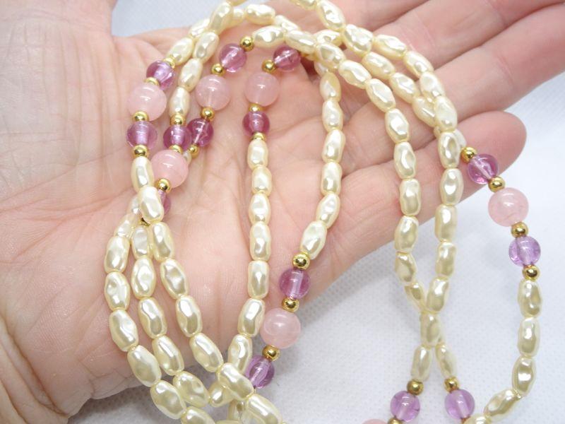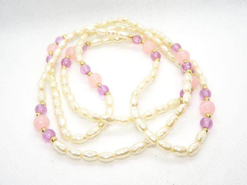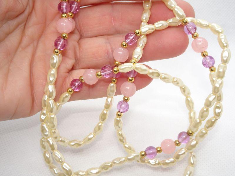 Faux Pearl & Pink Beaded Necklace, Light Weight