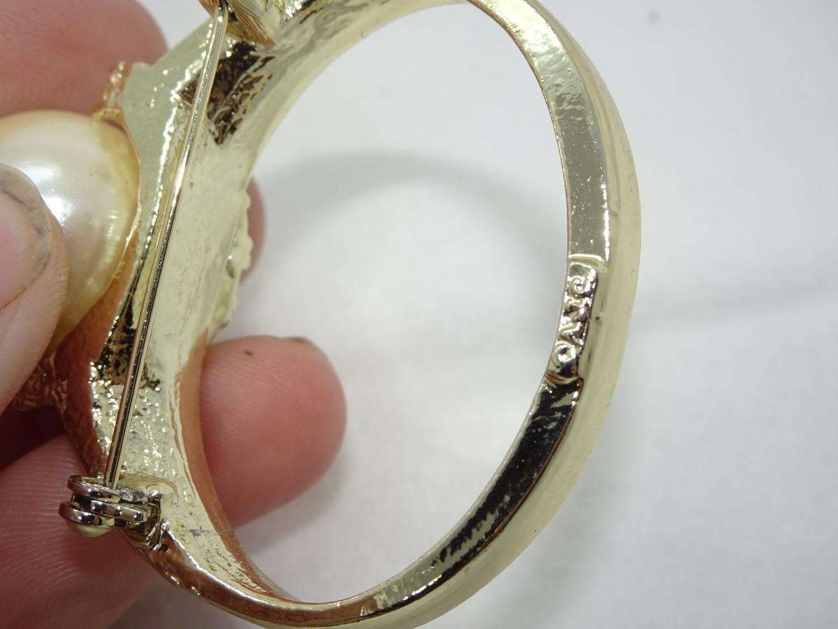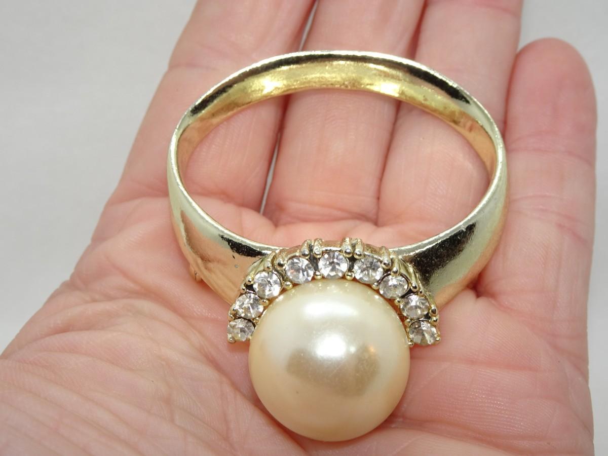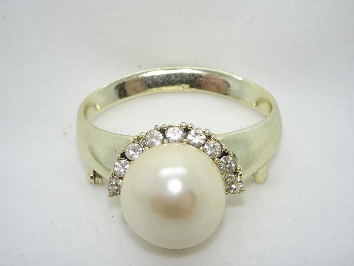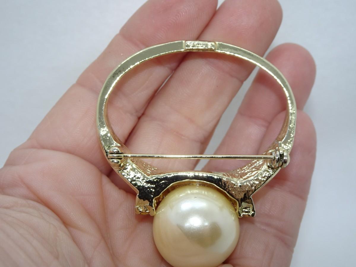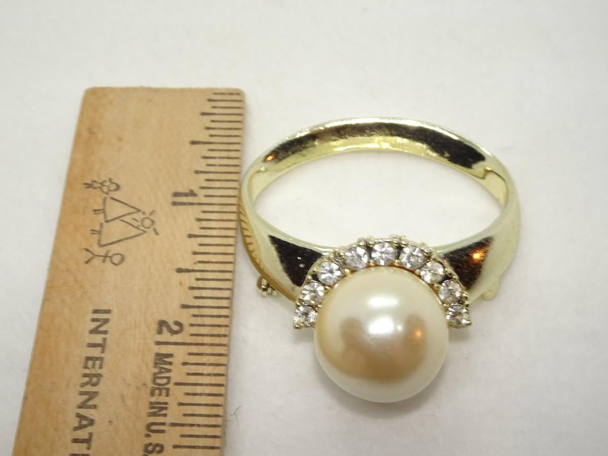 Pearl & Rhinestones Oversized Ring Brooch, Signed AJC