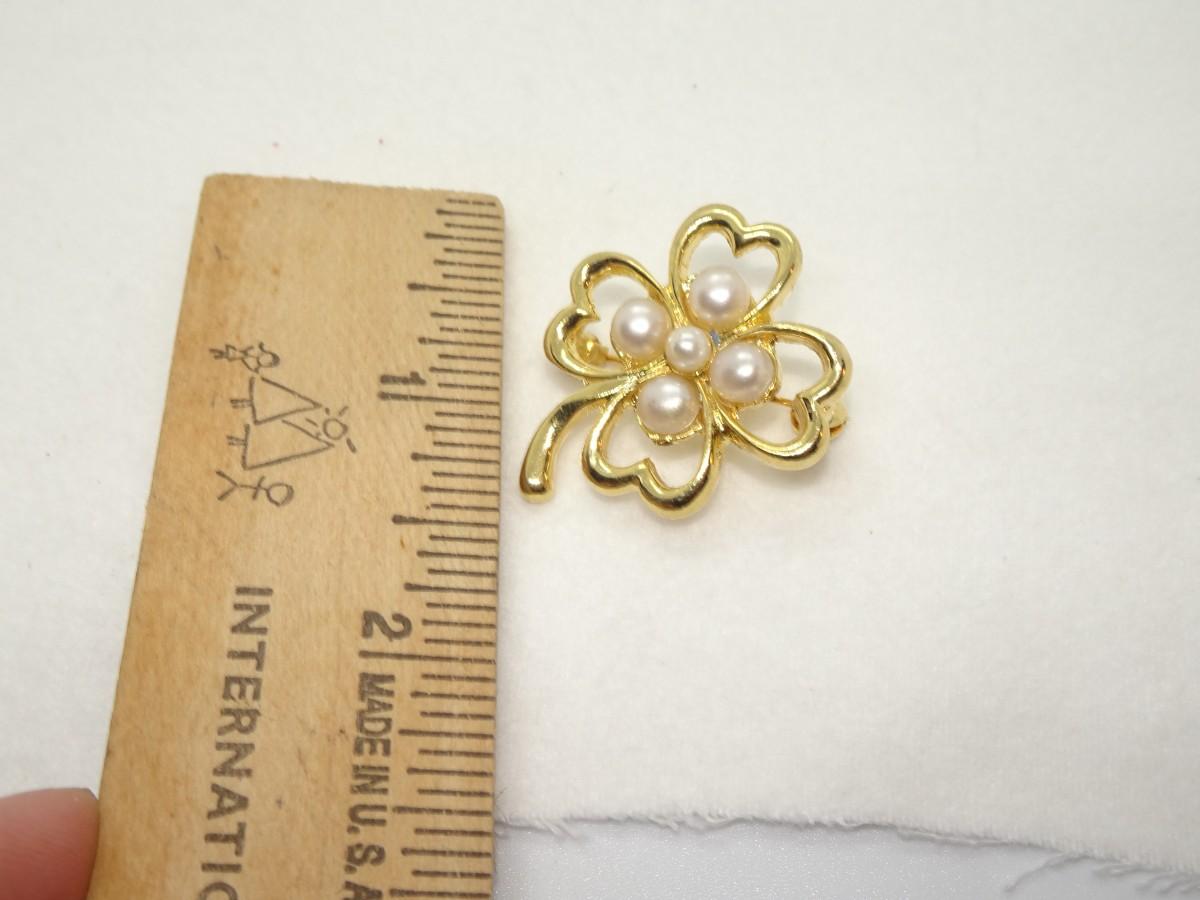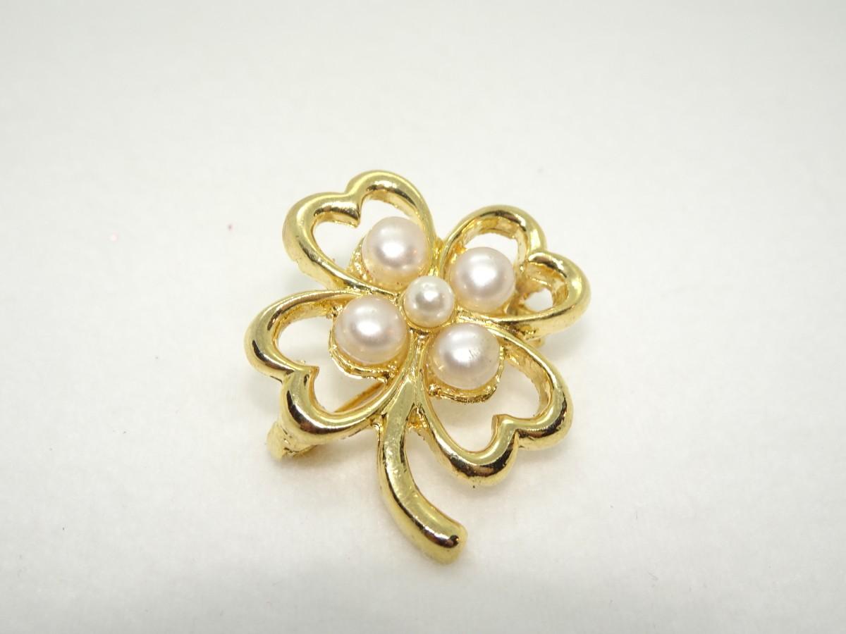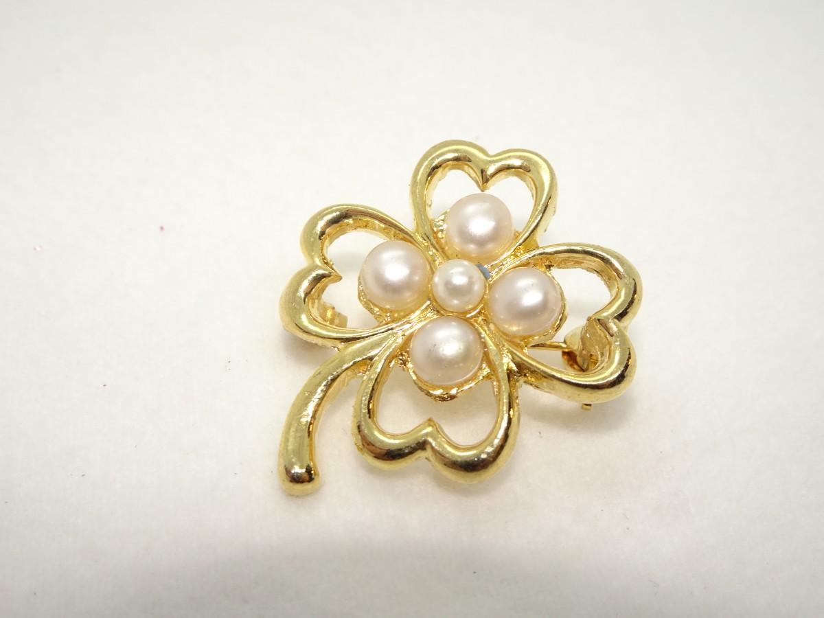 Pearls and a Clover Gold Tone Pin - SWEET!