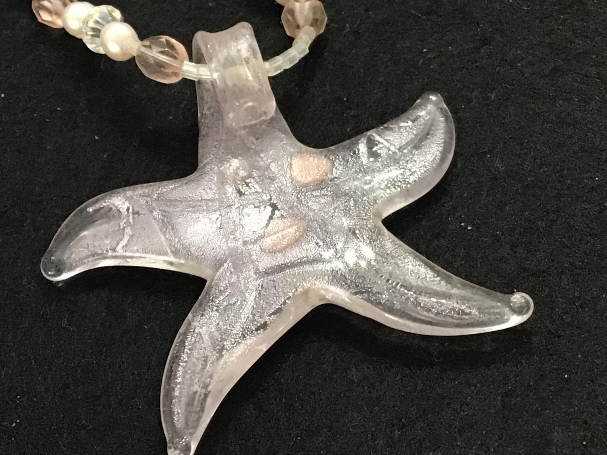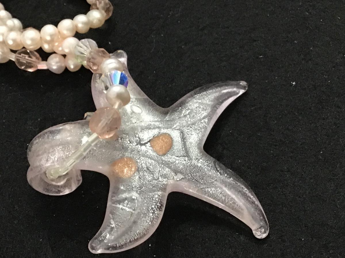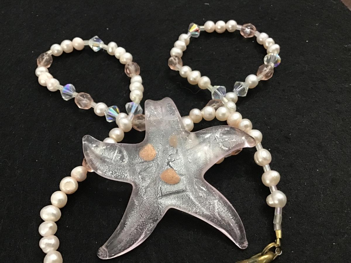 Pearls Crystal And Pink Glass pink Starfish Necklace