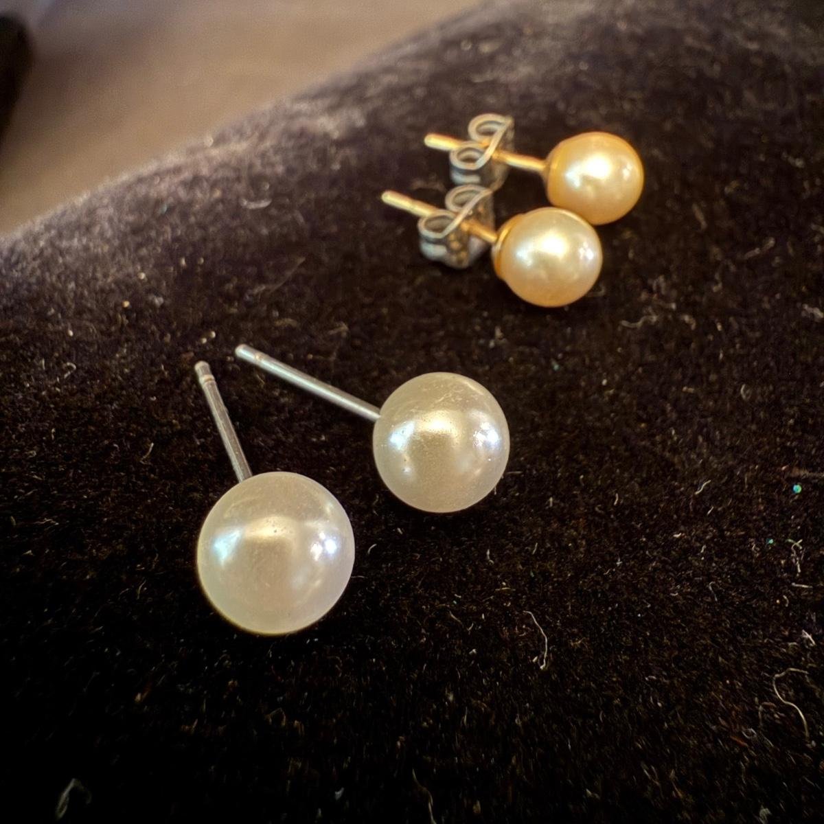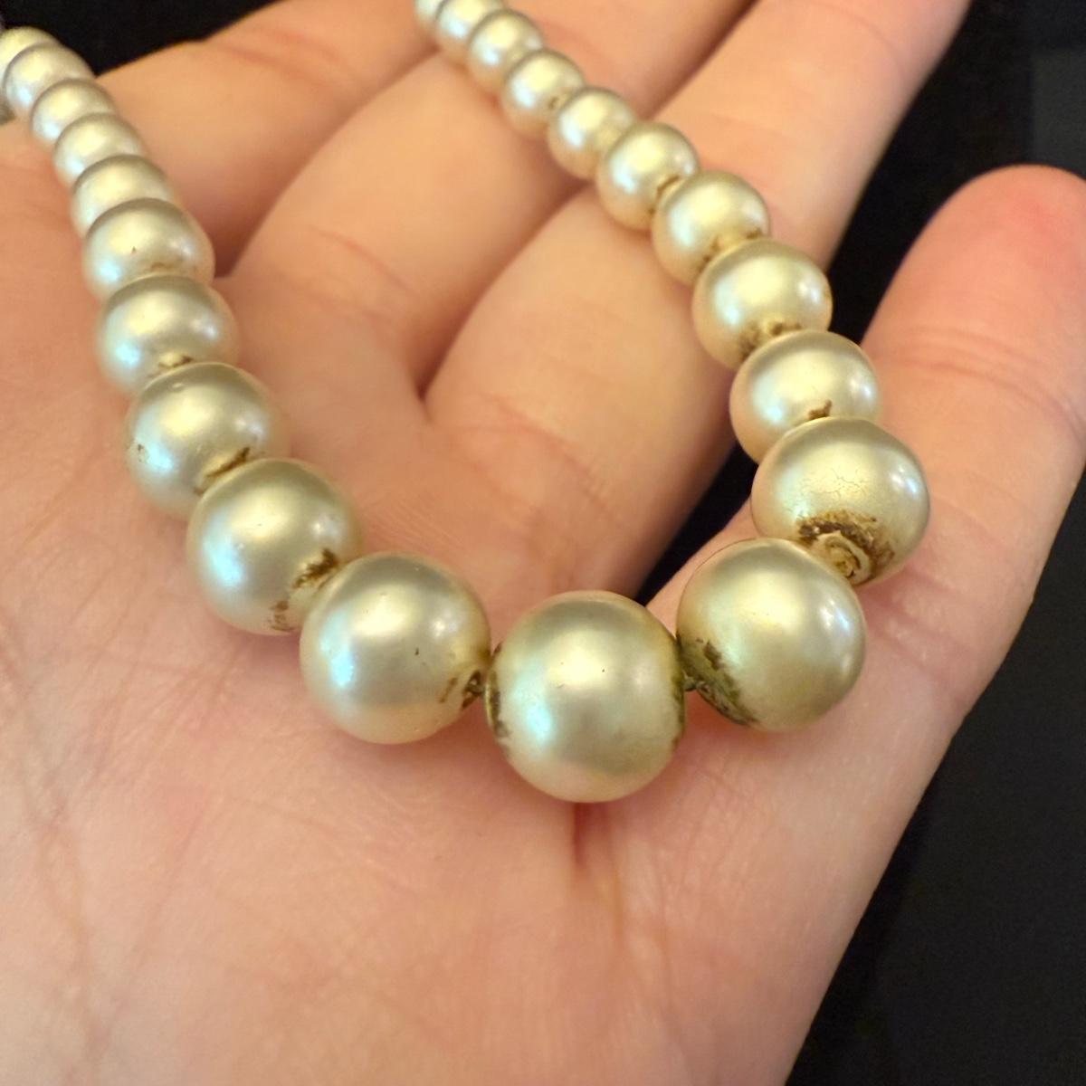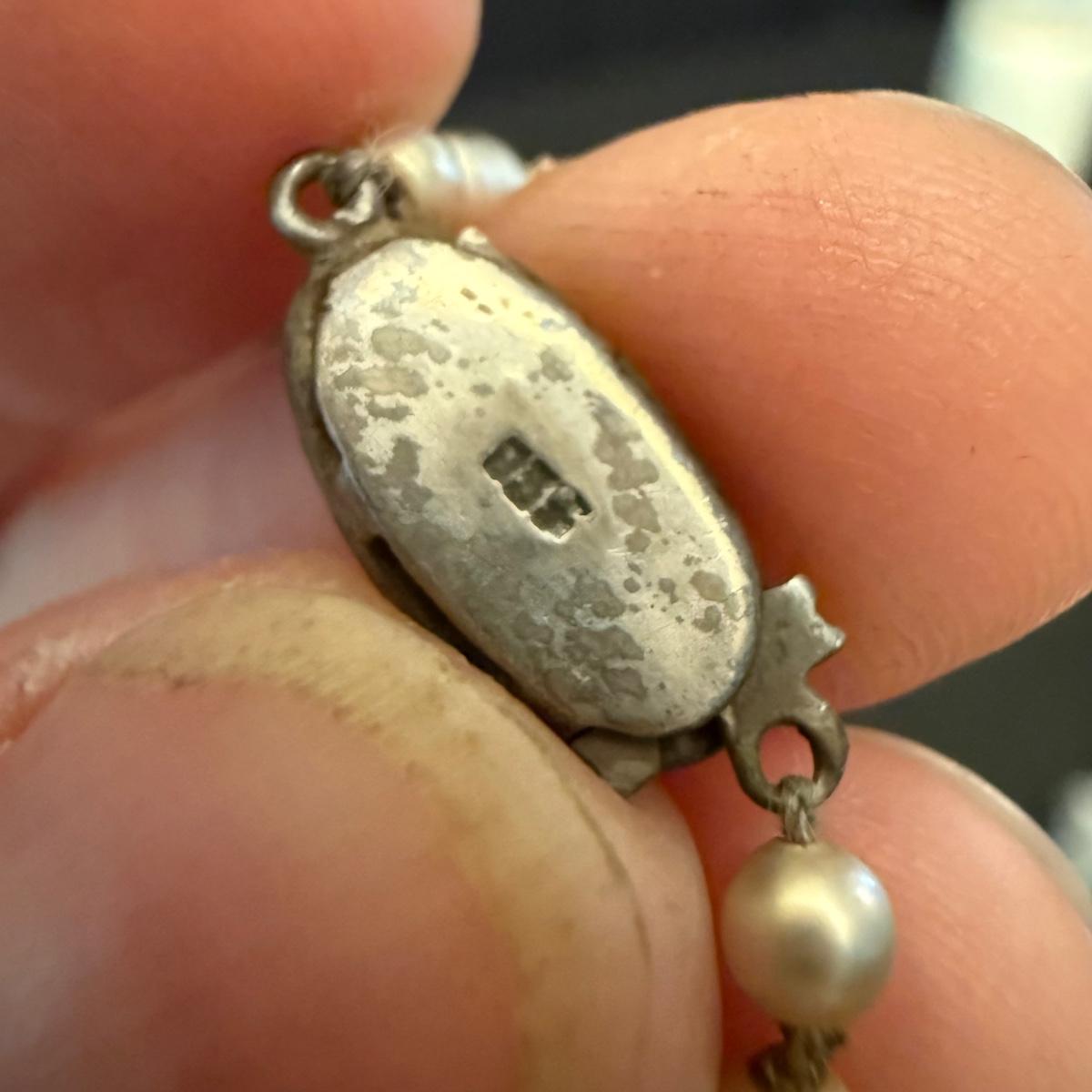 We cannot verify the authenticity of any of the pearl-like beads in this lot.