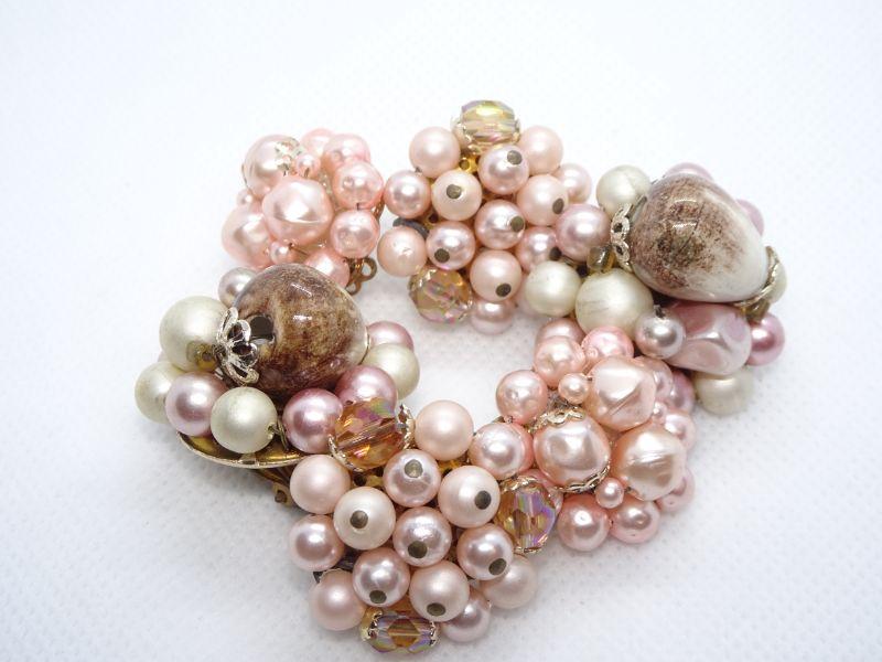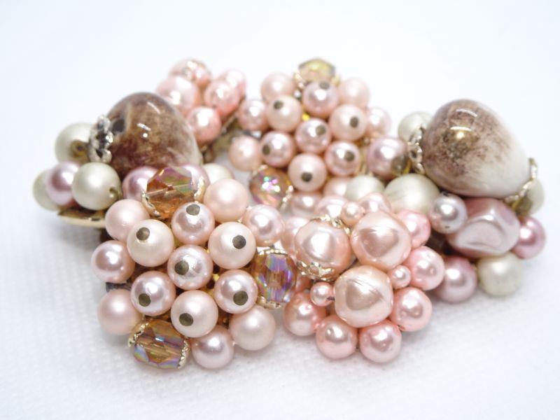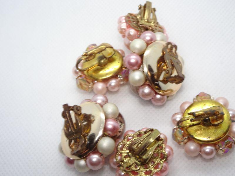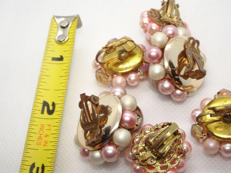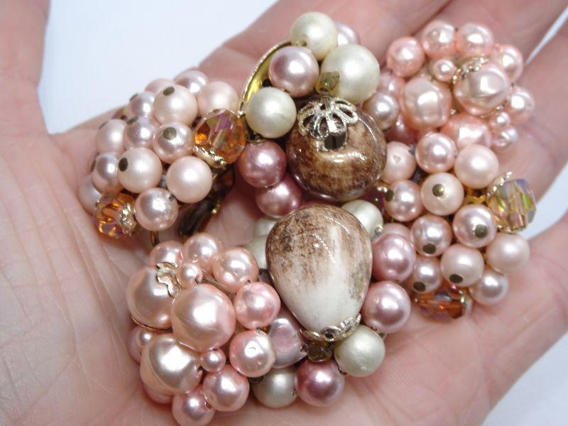 Pearls & Shell Pink Cluster Earrings, 3 Pairs of MCM Clip Ons