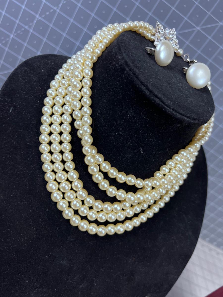 Pearly Necklace with Butterfly Clasp Plus Clip on Earrings