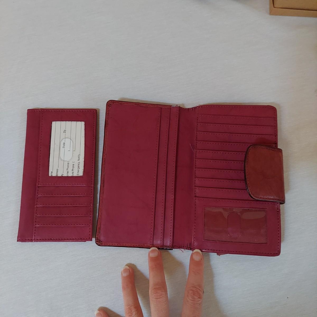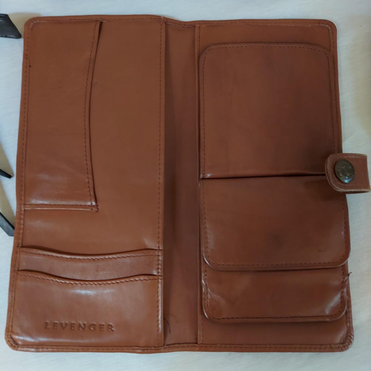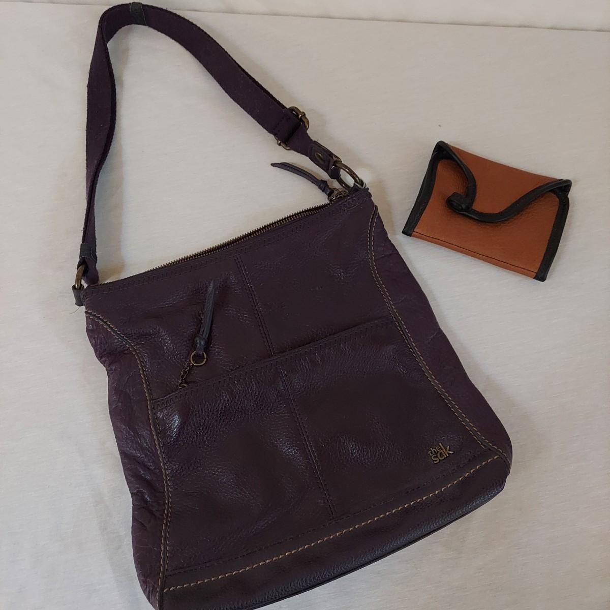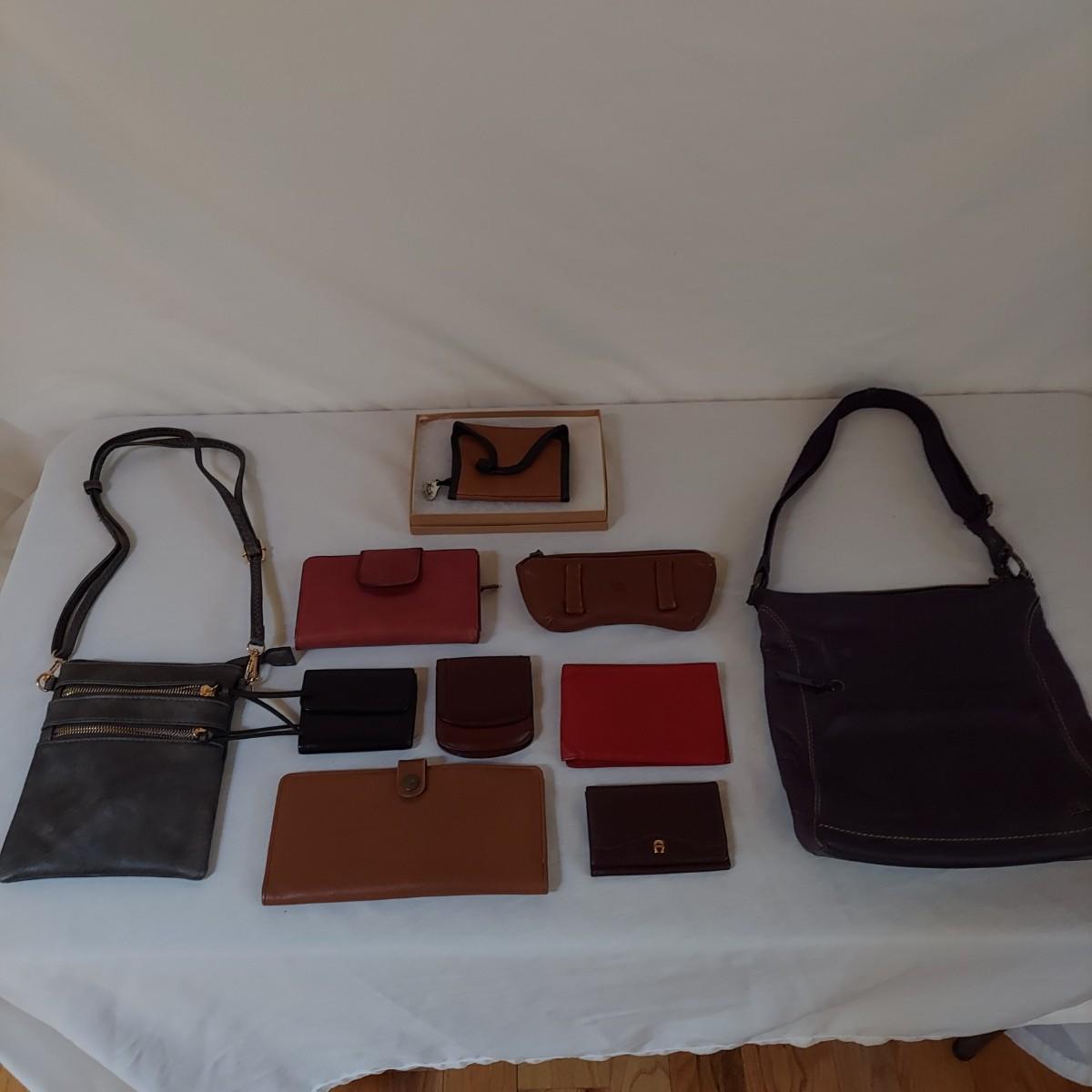 Lot of two purses and several wallets and zip pouches. Includes pebbled leather purse by The Sak. Plus, leather wallets by Coach, Erda, Etienne Aigner, Levenger and more. Please see photos for details. Shipping available