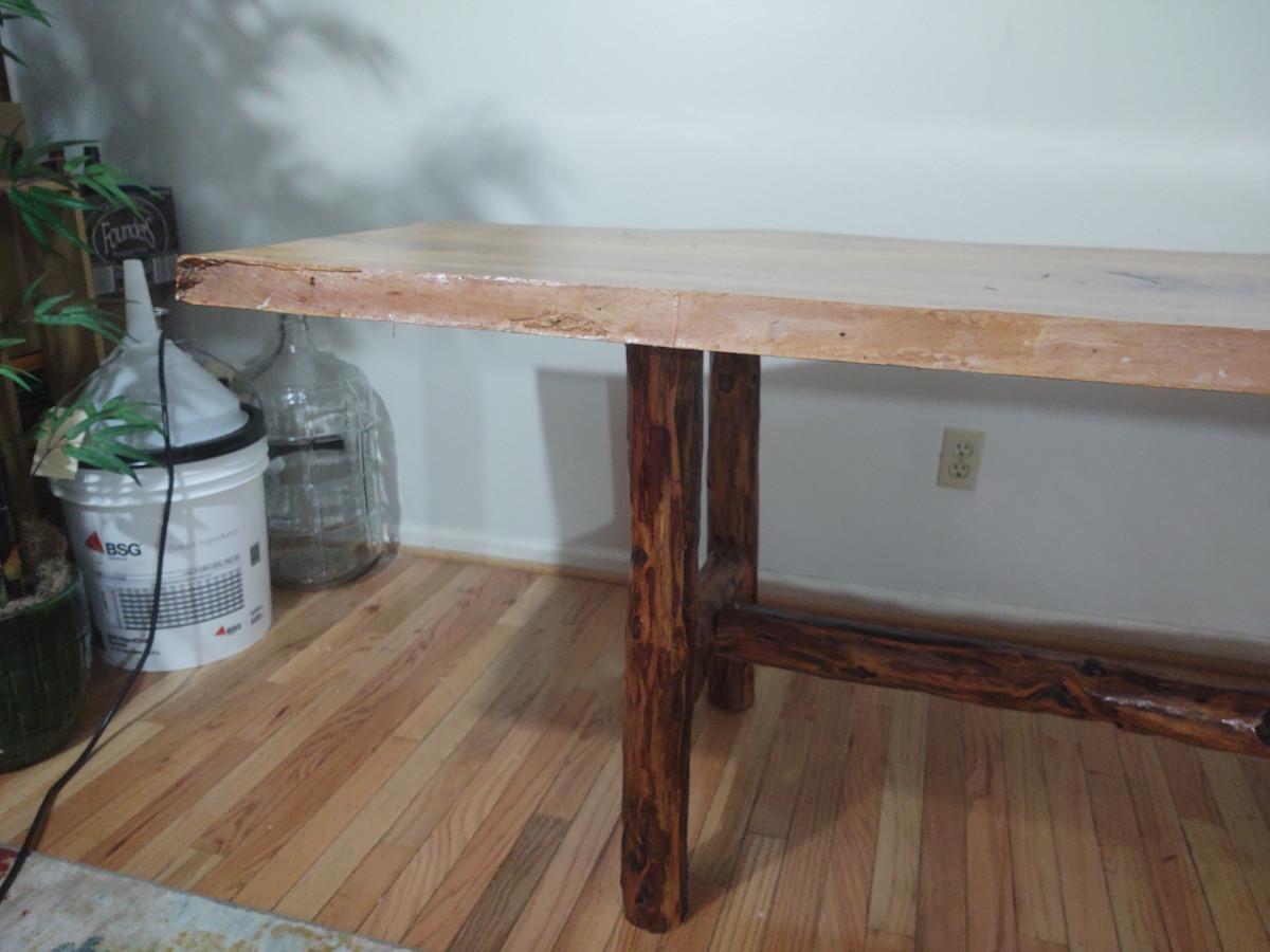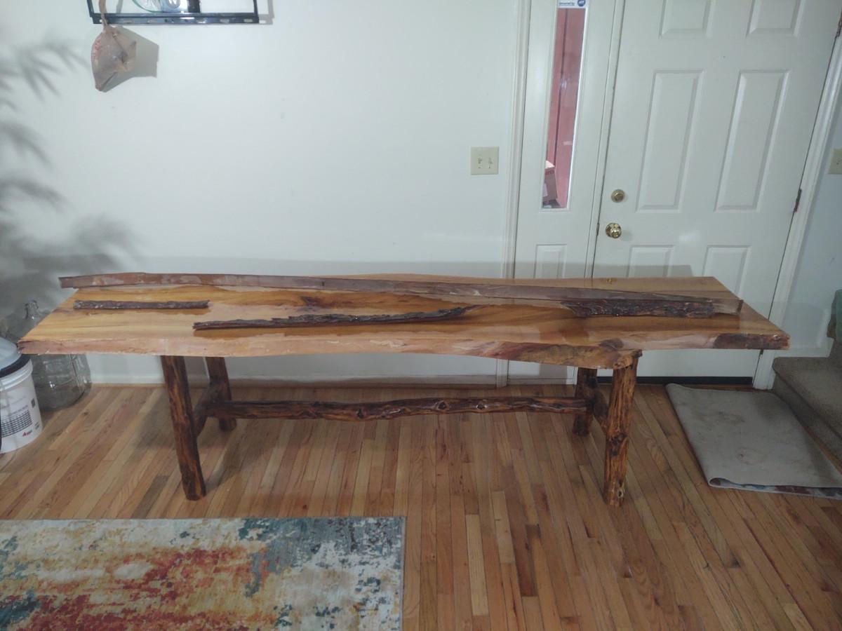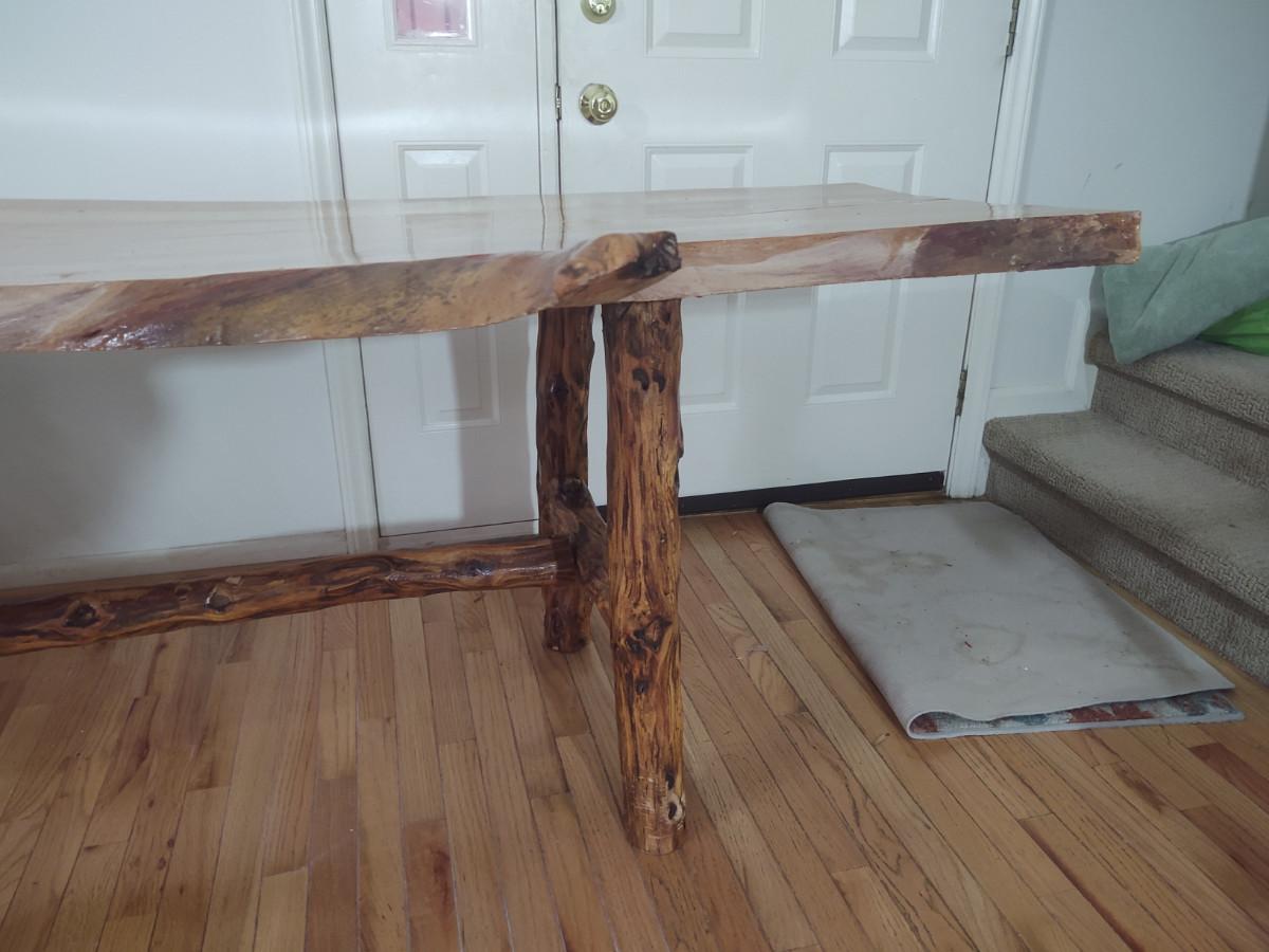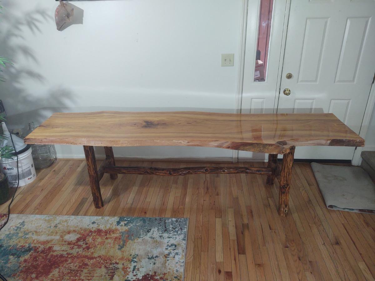 ***RESERVE PRICE INFO*** We have sold many tables like this for $1000+ and this item has a VERY modest reserve in comparison. The table is handmade from a slab taken from a pecan tree. Measurements are 9'x3' at the widest and 30" tall. Table has some bark strips that have come off and need to be reattached. See pictures for more details.