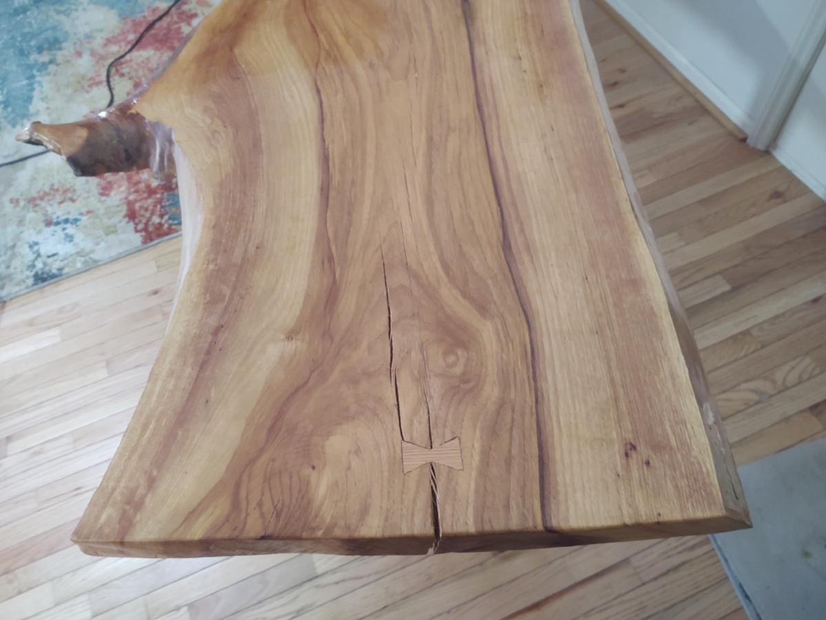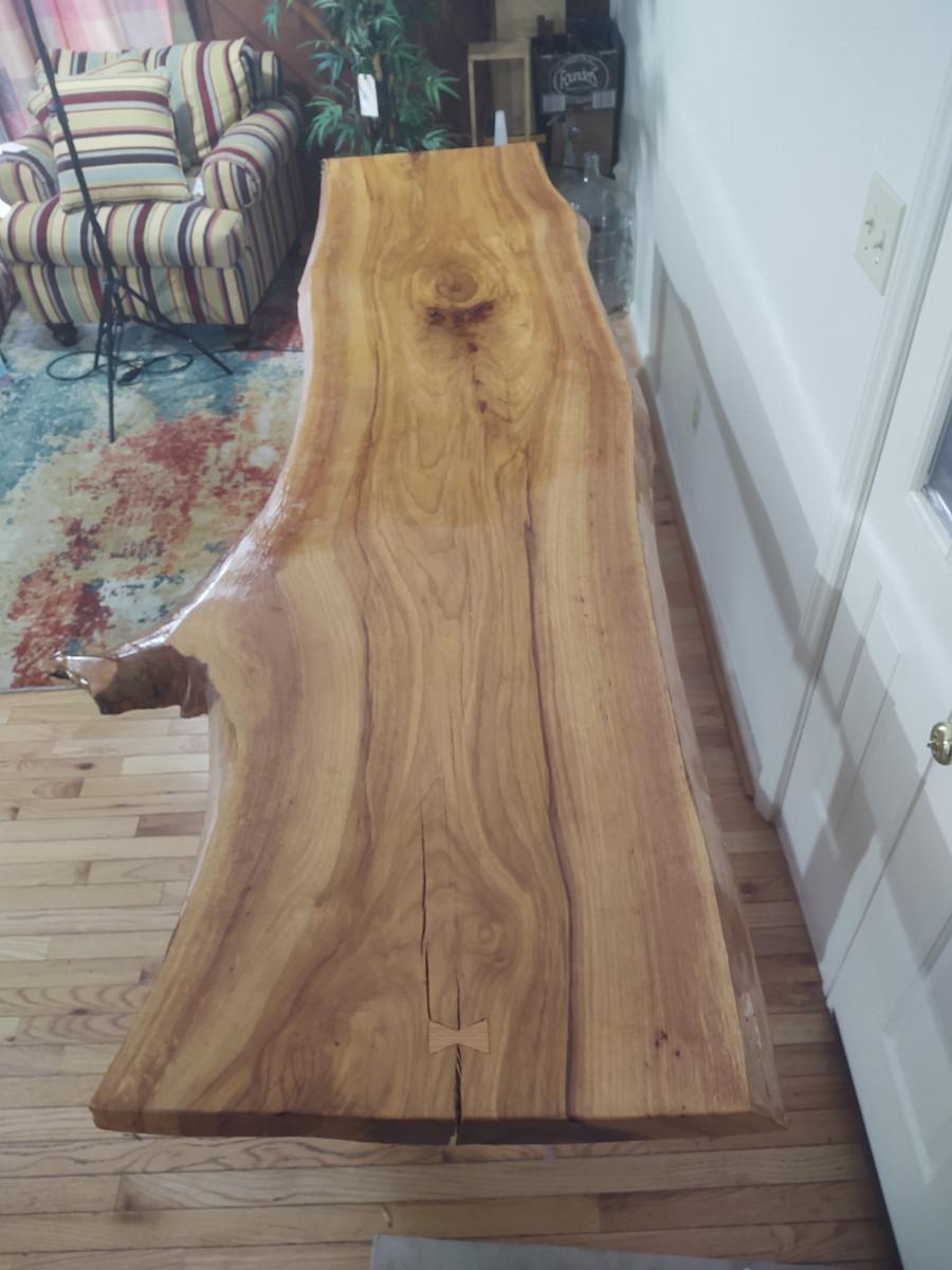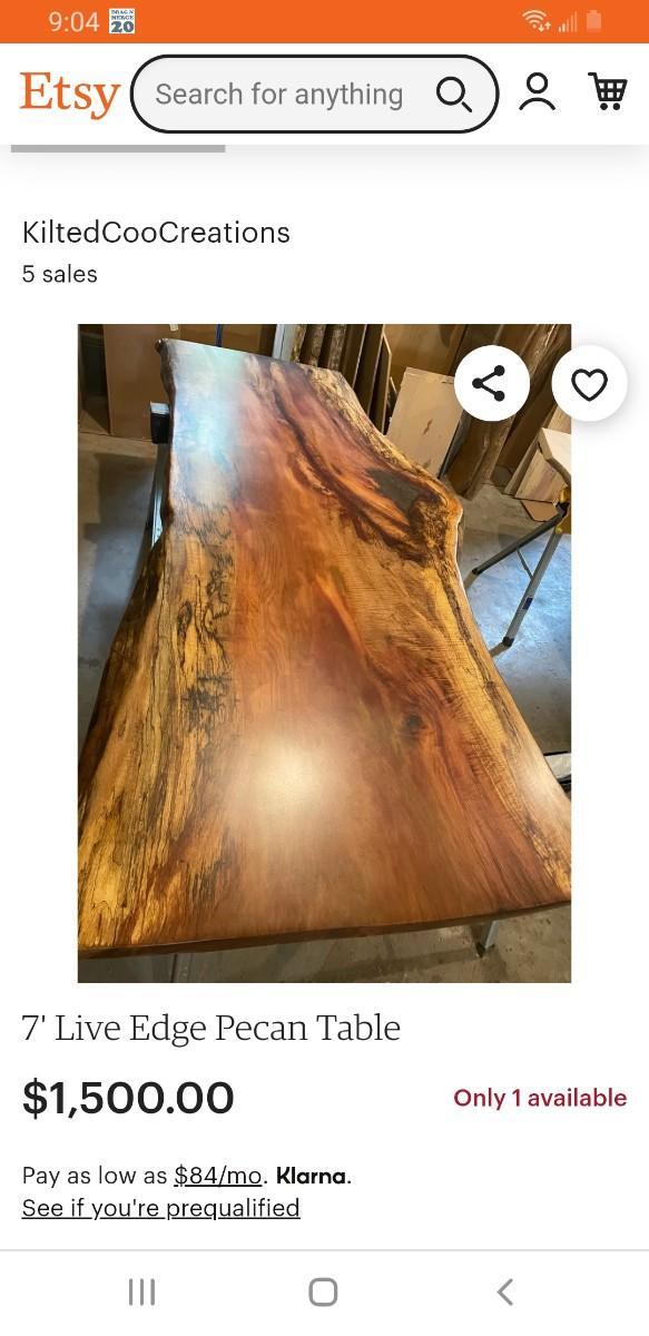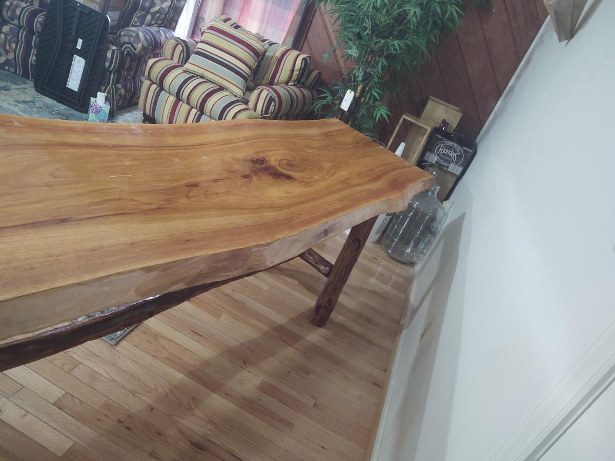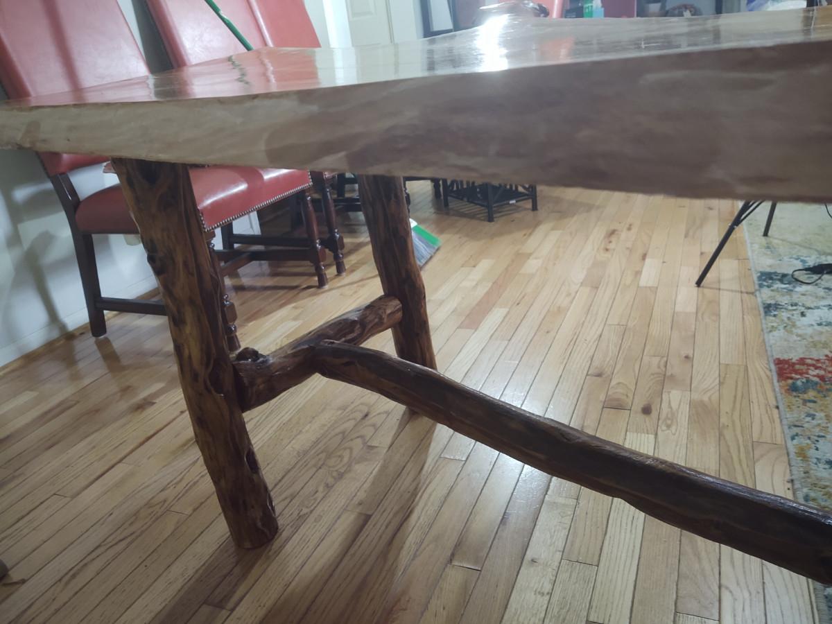 ***RESERVE PRICE INFO*** We have sold many tables like this for $1000+ and this item has a VERY modest reserve in comparison. The table is handmade from a slab taken from a pecan tree. Measurements are 9'x3' at the widest and 30" tall. Table has some bark strips that have come off and need to be reattached. See pictures for more details.