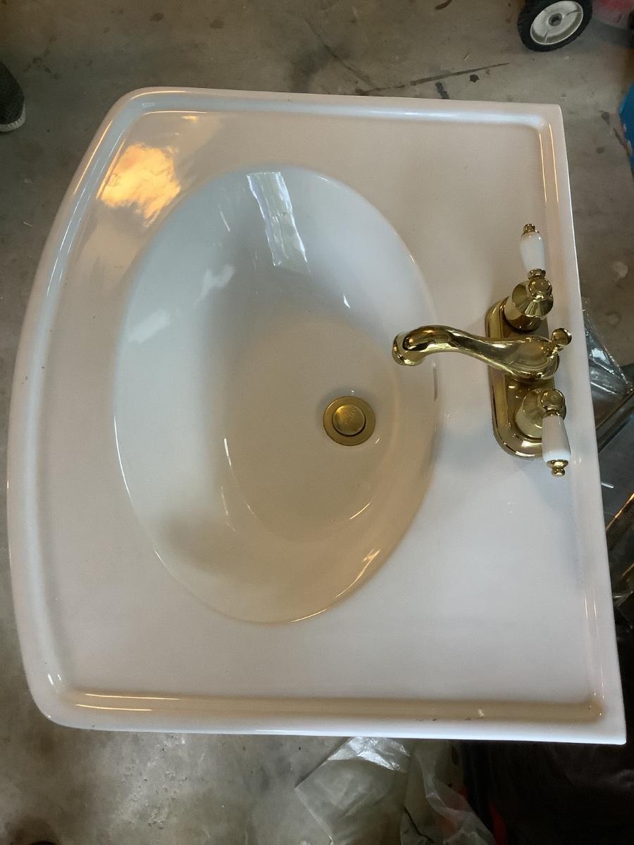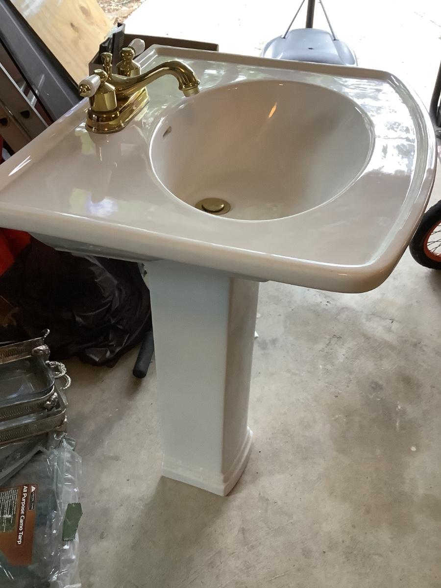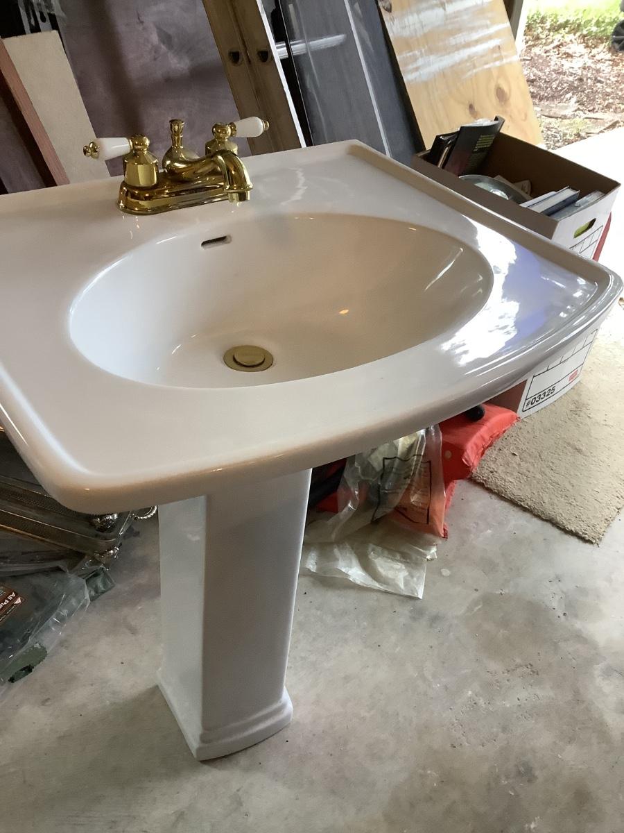 Pedestal sink- Peerless gold faucet