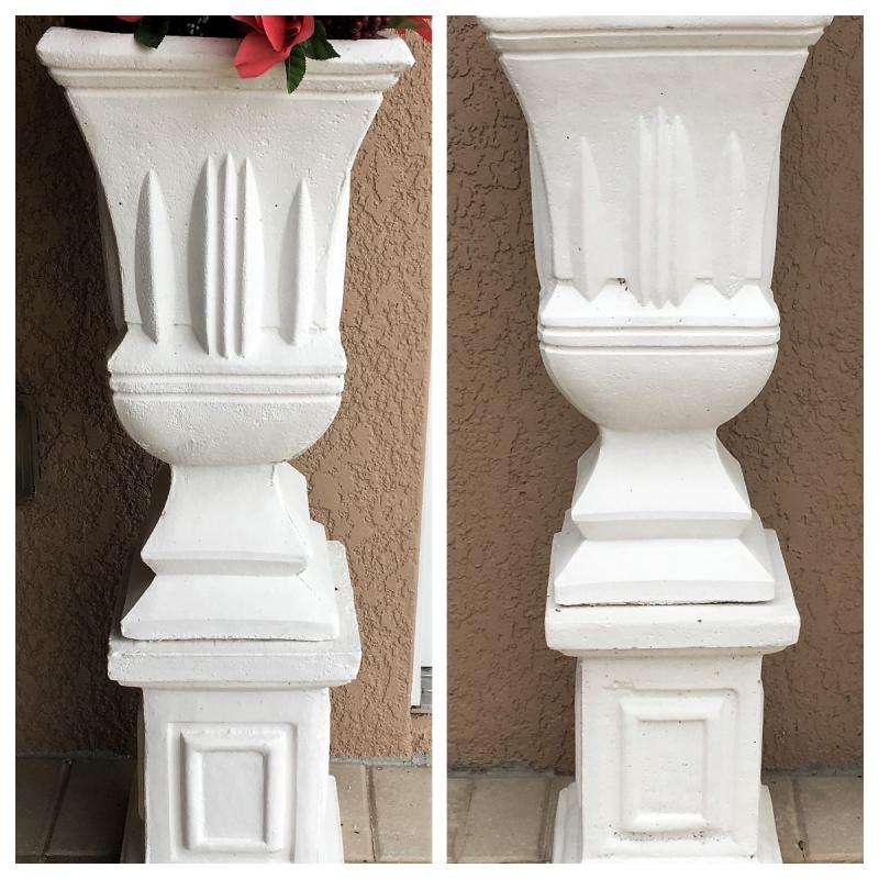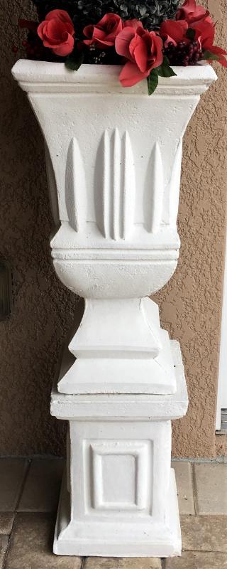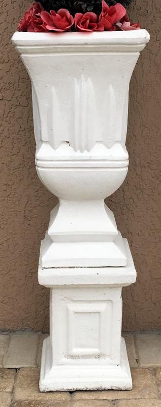 Cement pedestal with vase