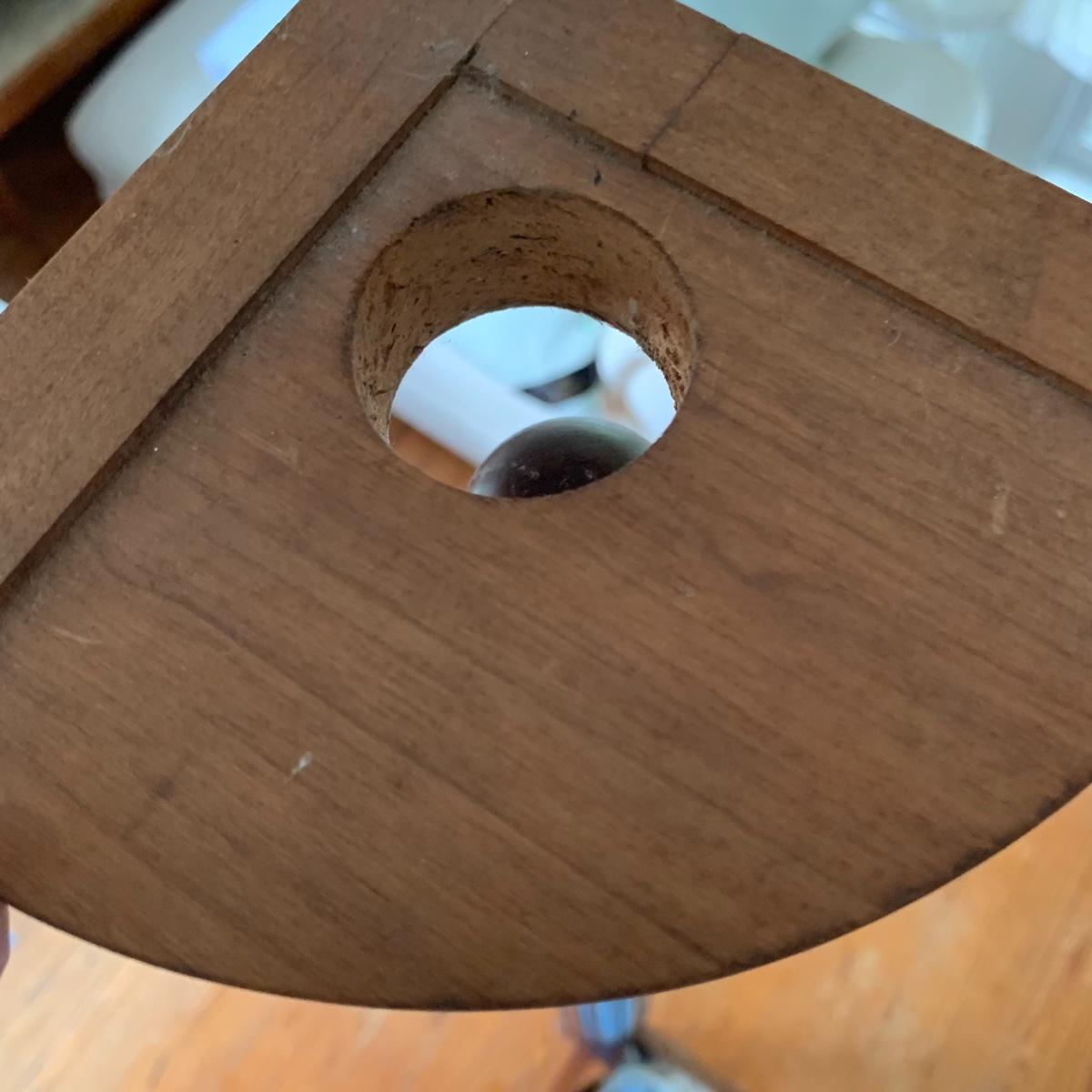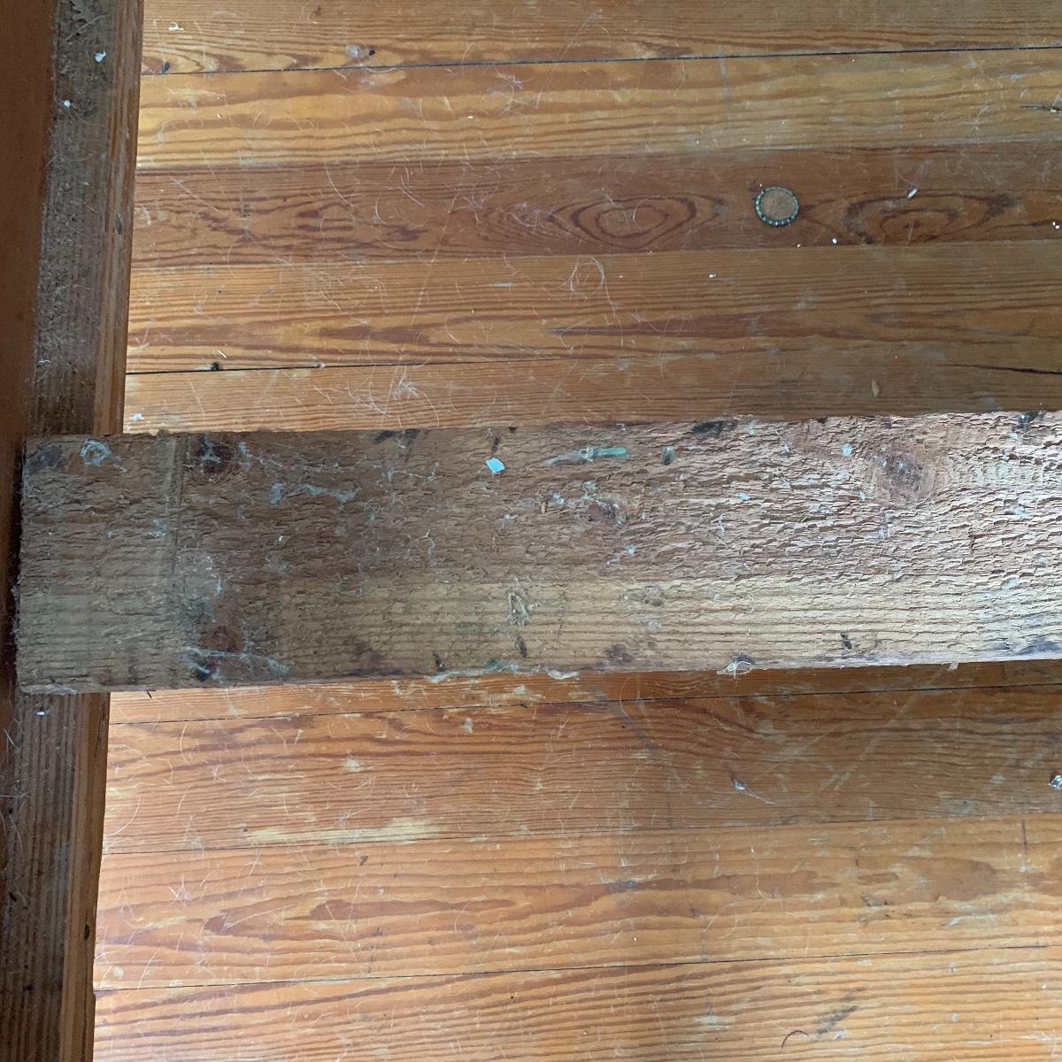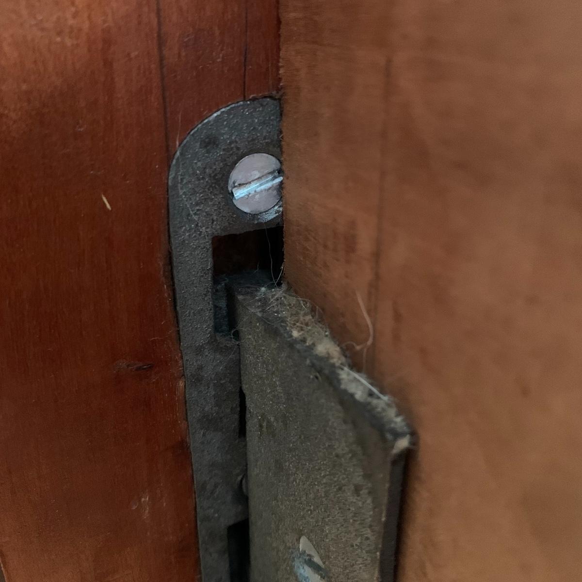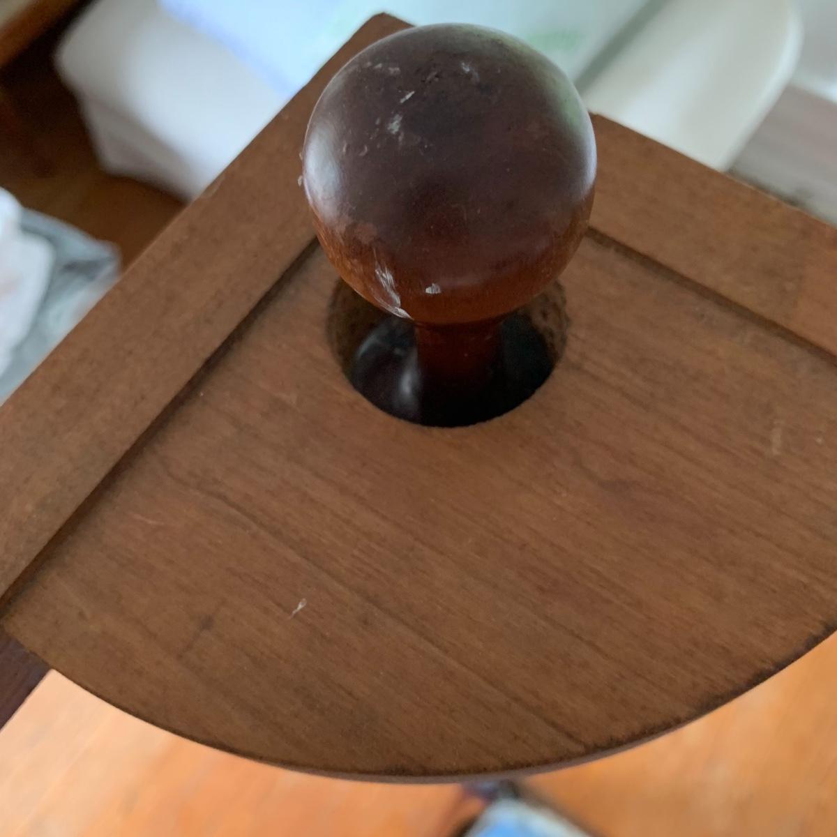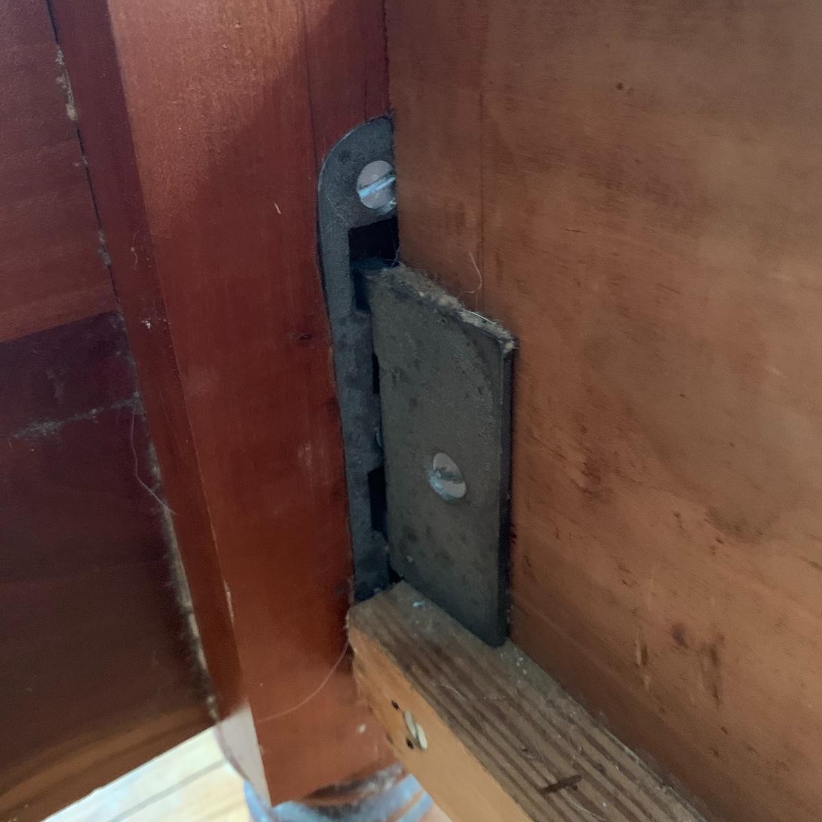 This is an ornate four poster wooden bed frame with an easily removable canopy top. It is a full/double sized frame. It has a pediment style headboard with a finial decoration. The canopy top can be removed simply by lifting it off of the top of the posts. The frame is a bit heavy. The winning bidder will need to move it from the second floor of the house and will require help. The frame measures 57” x 81” x 74”. A flathead screwdriver will be required to disassemble the frame (please see pictures of hardware). The two boards supporting the box spring are not attached. Bedding pictured is not included. The winning bidder may have the mattress and box spring if desired (please let Sterling Transitions know if you’d like these before you come for auction pickup). The height of the top of the current mattress is the frame is about 30” tall. The bed frame is in used, but sturdy condition. It shows it’s age with some wear, but is otherwise in very good condition. Local Pickup Only