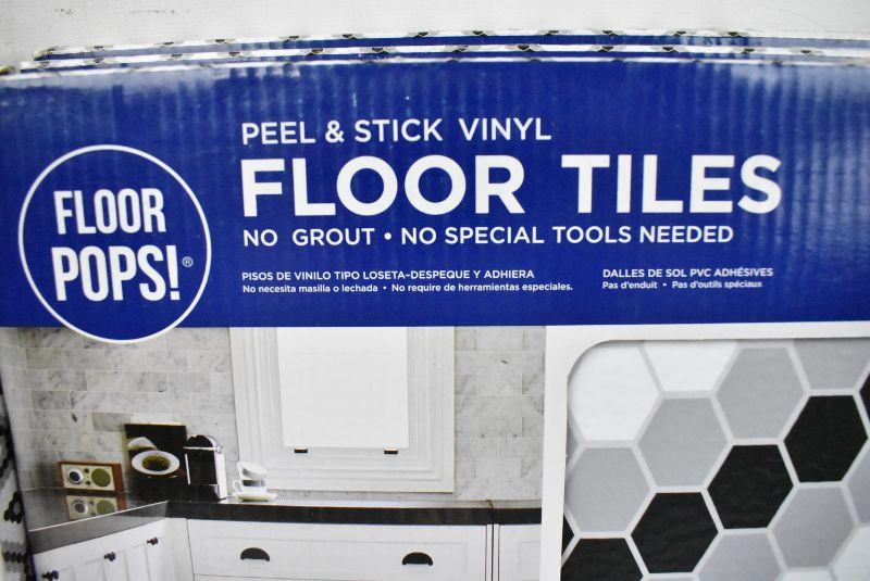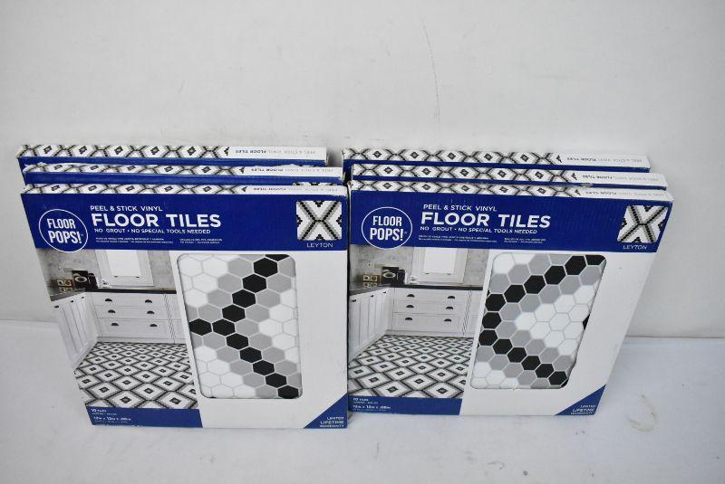 Peel & Stick Floor Tiles by Floor Pops! "Leyton" Design, 6 Packages, 10 Square Feet Each - New