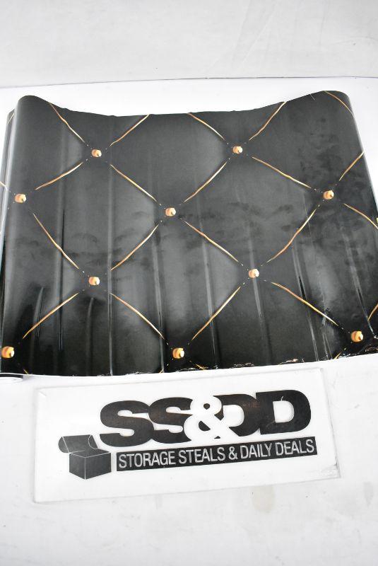 Peel & Stick Roll 15.75" x 9.84 feet). Black with Gold Tufted Design. Creased.