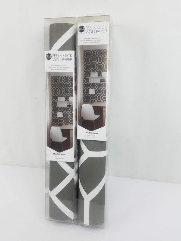 Peel & Stick Wallpaper, 2 Rolls. Each 20.5" x 16.5' Gray & White Design - New