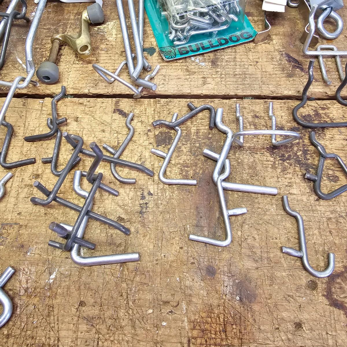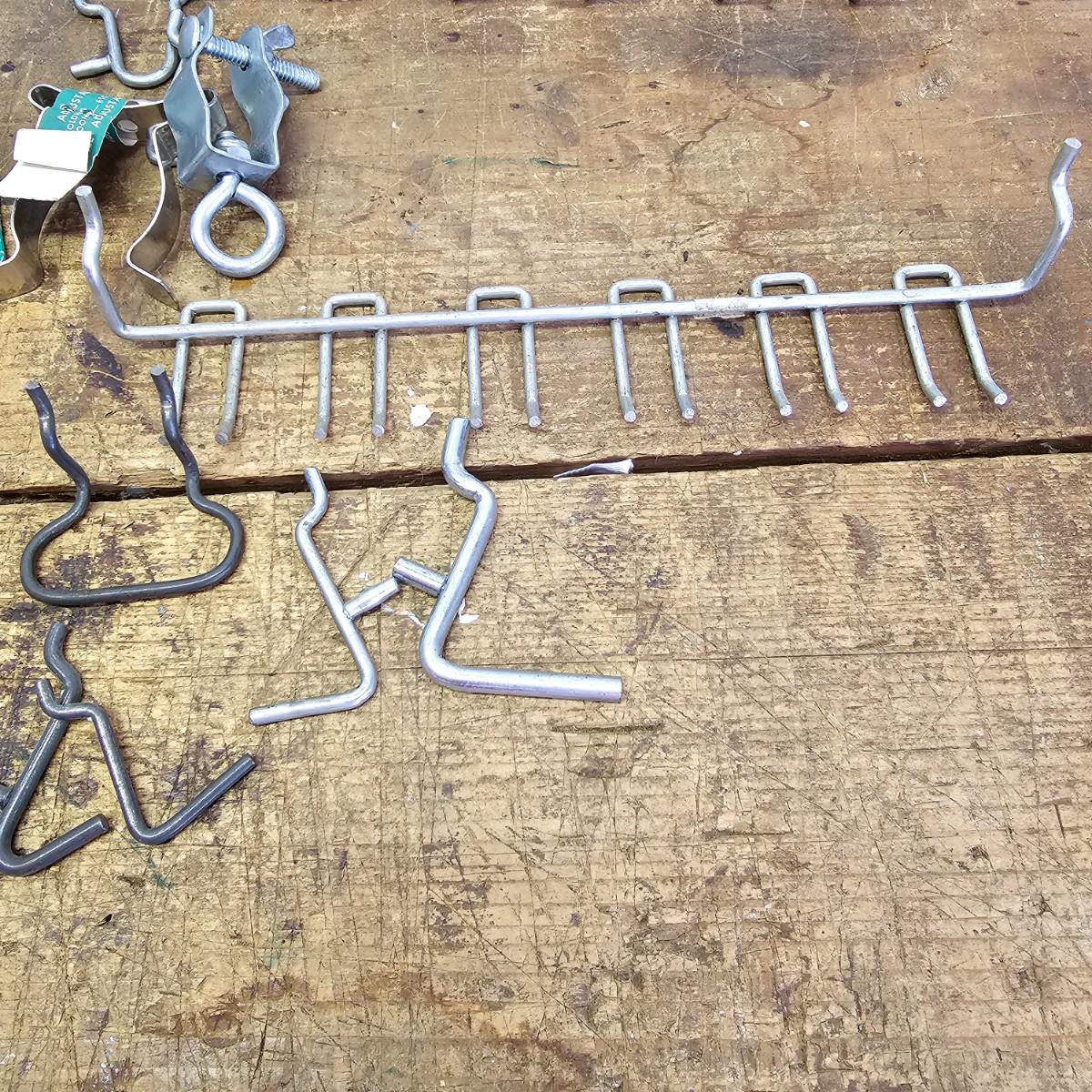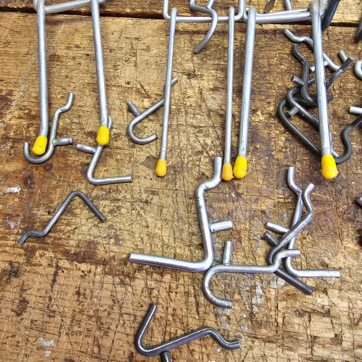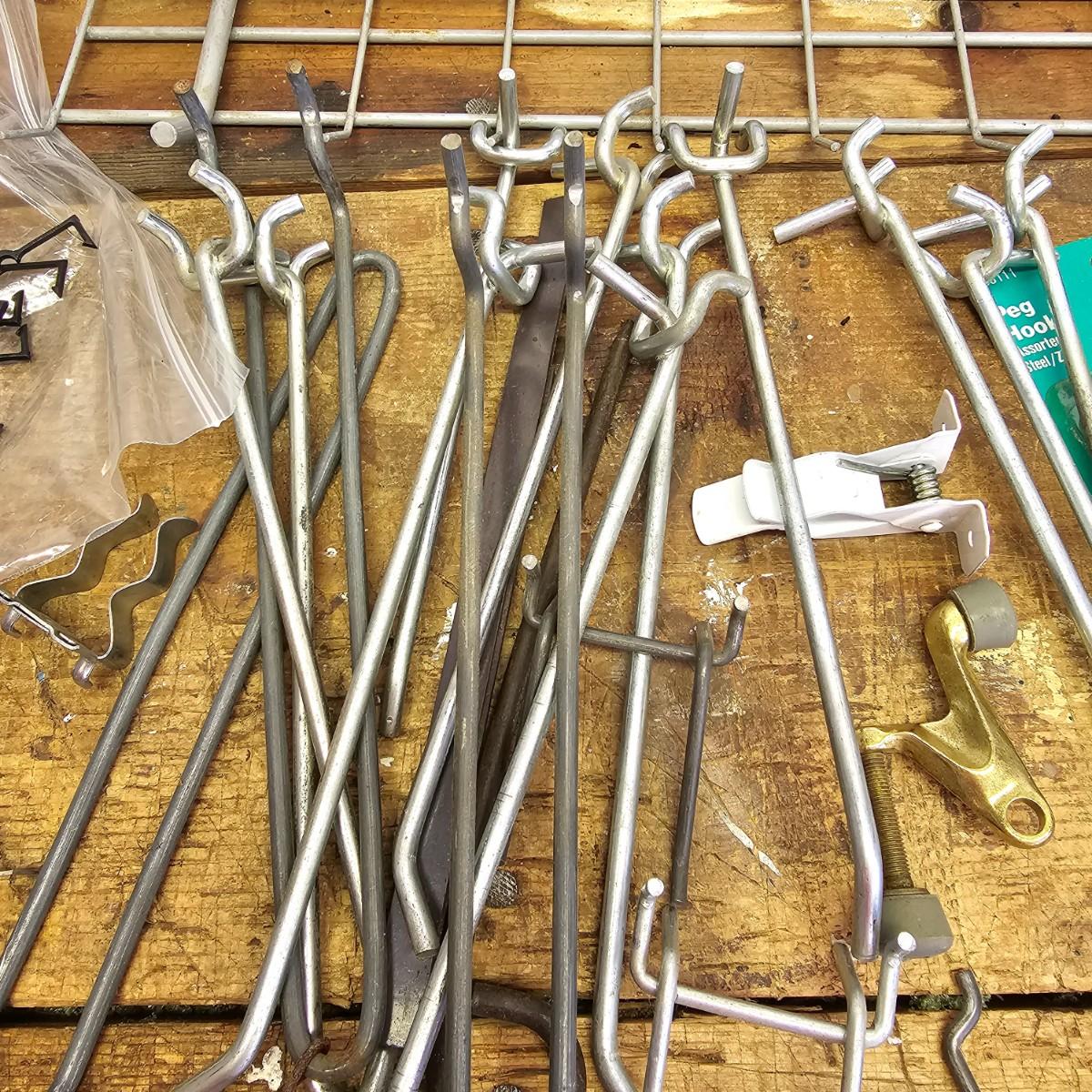 Over seventy-five pieces peg board hooks, racks and holders. Short, long, curves, tool racks, etc. Some hook keepers also. Pegboard is not included. See photos for details. Shipping available.
