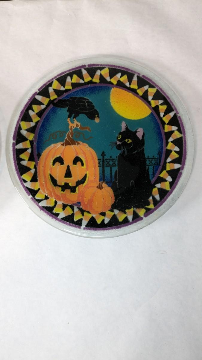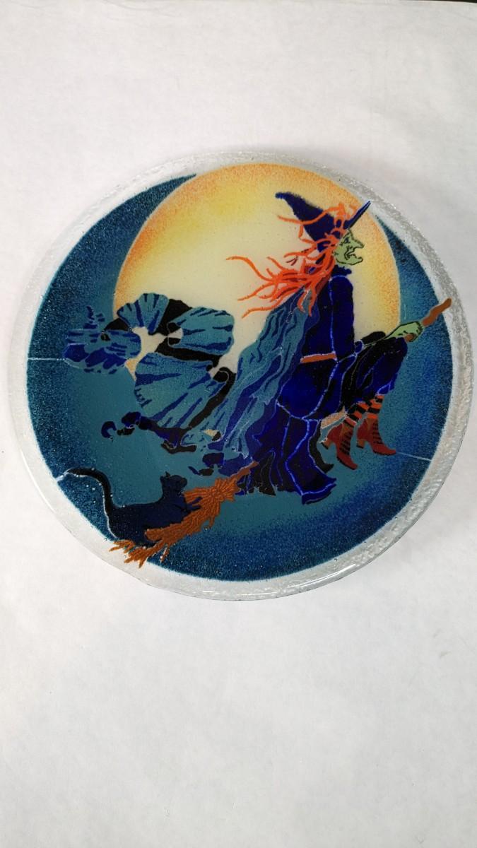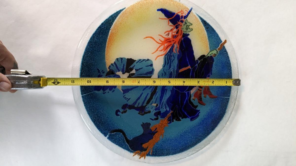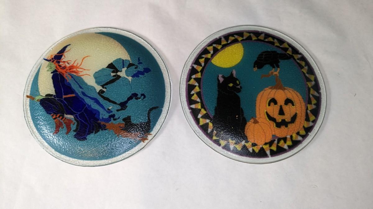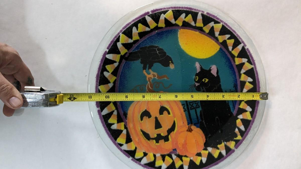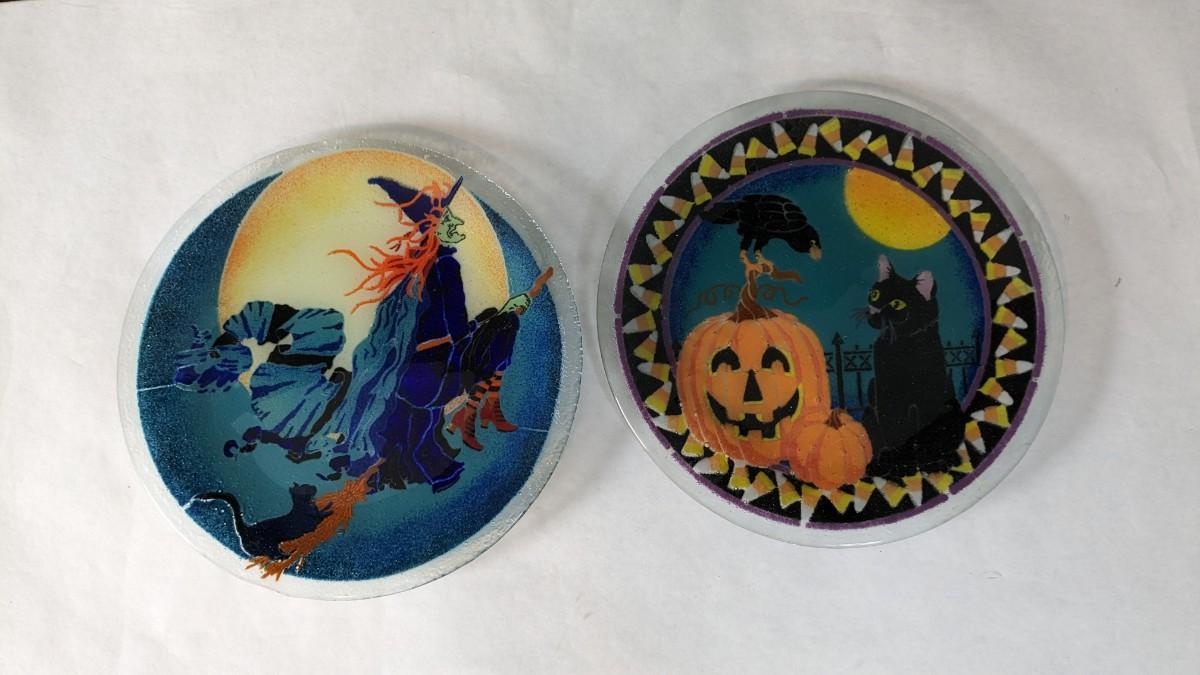(2) 11" decorative glass plates by Peggy Karr. Both are in excellent condition and SO pretty with a light behind them.