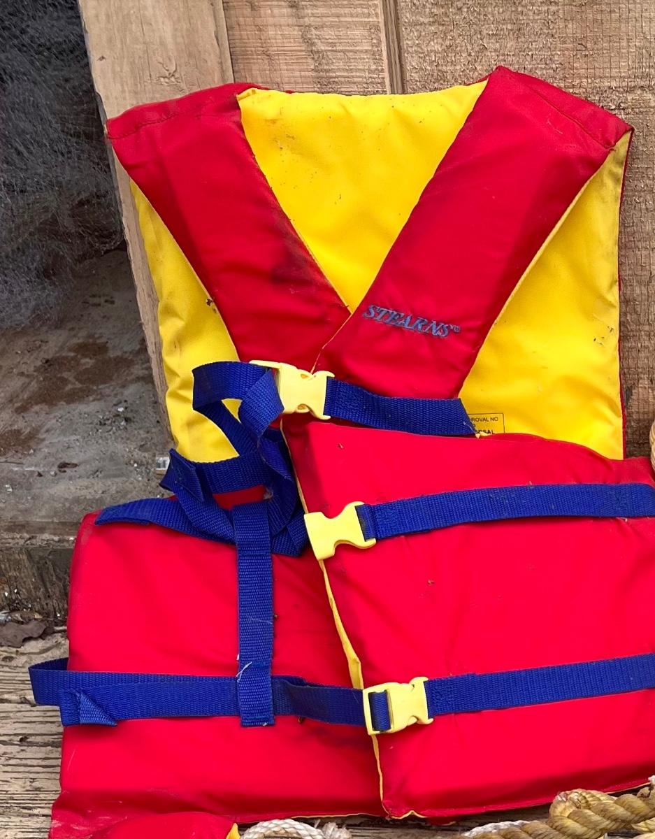 This Pelican canoe measures 42” x 200” x 16”H. See images for more information. A pair of wooden oars are include and a pair of life jackets also included.
