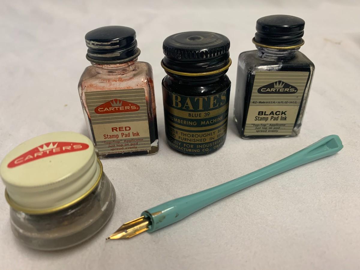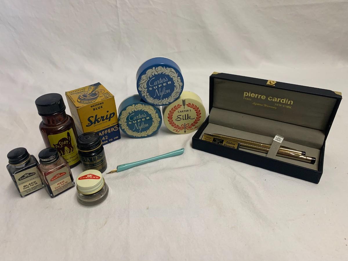 Pierre Cardin pen set...NIB, 3 vintage typewriter ribbons, 4 bottles of vintage ink.