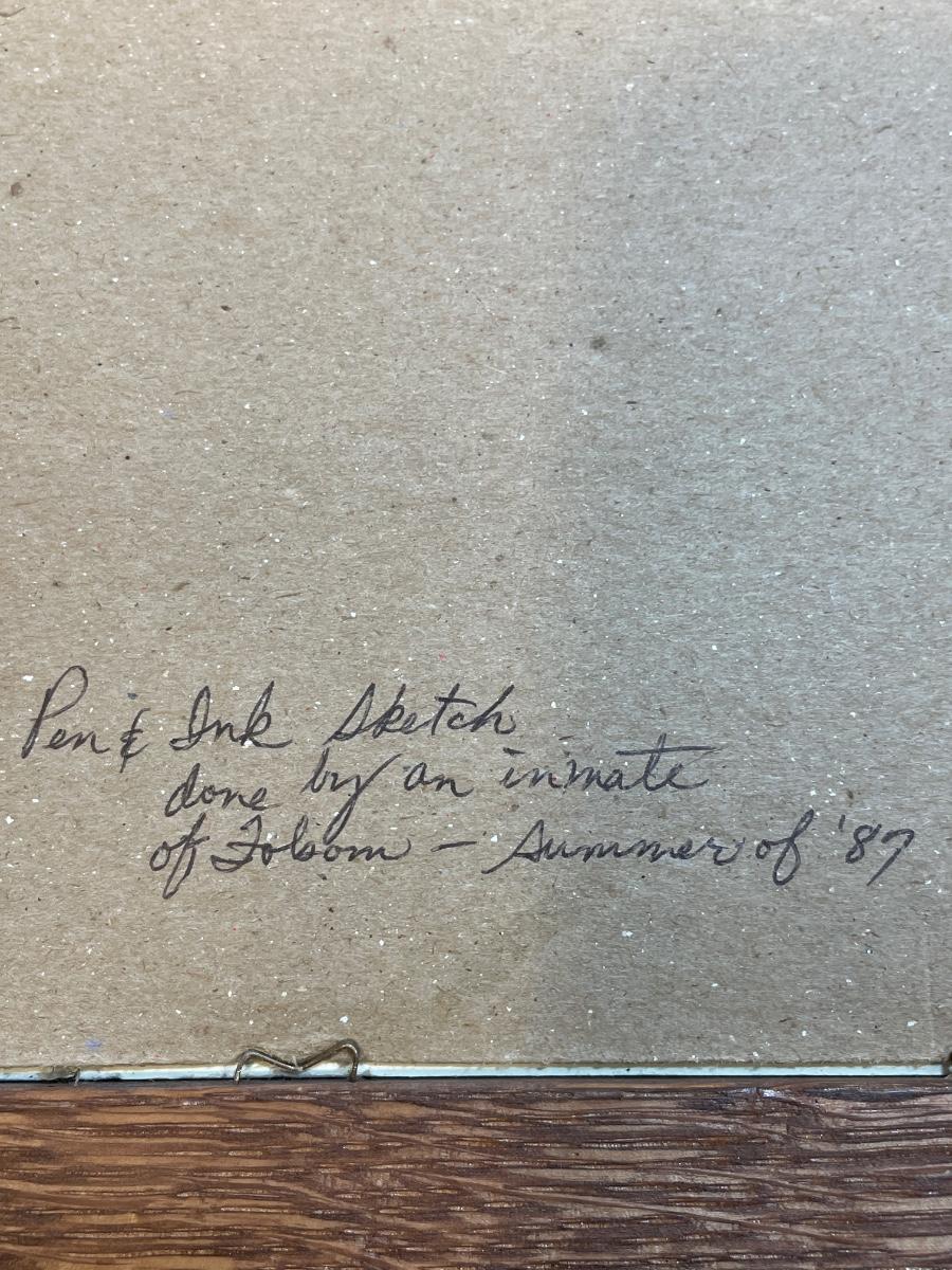 This pen and ink drawing was done by an inmate at Folsom prison in 1987.. 16.5 x 13.5