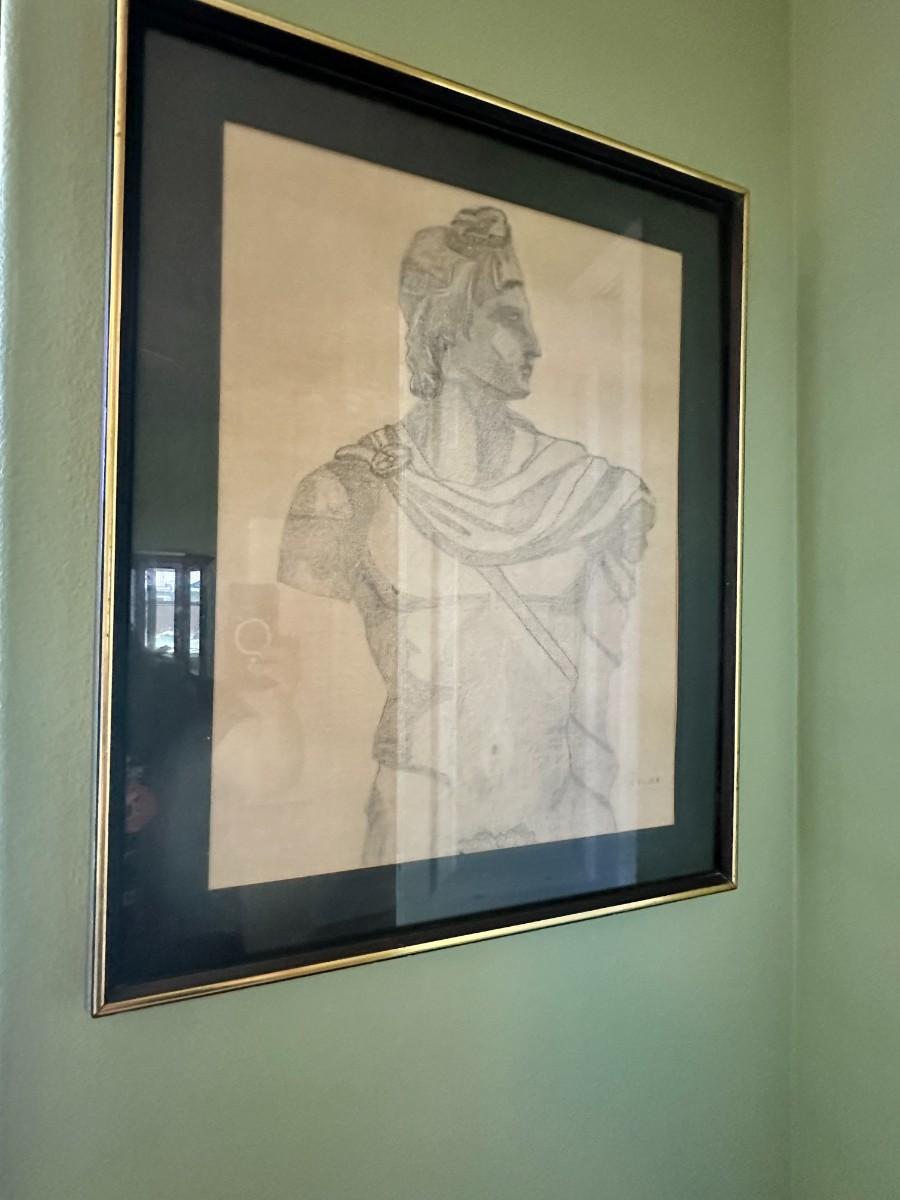 Pencil charcoal Drawing set of 2 signed